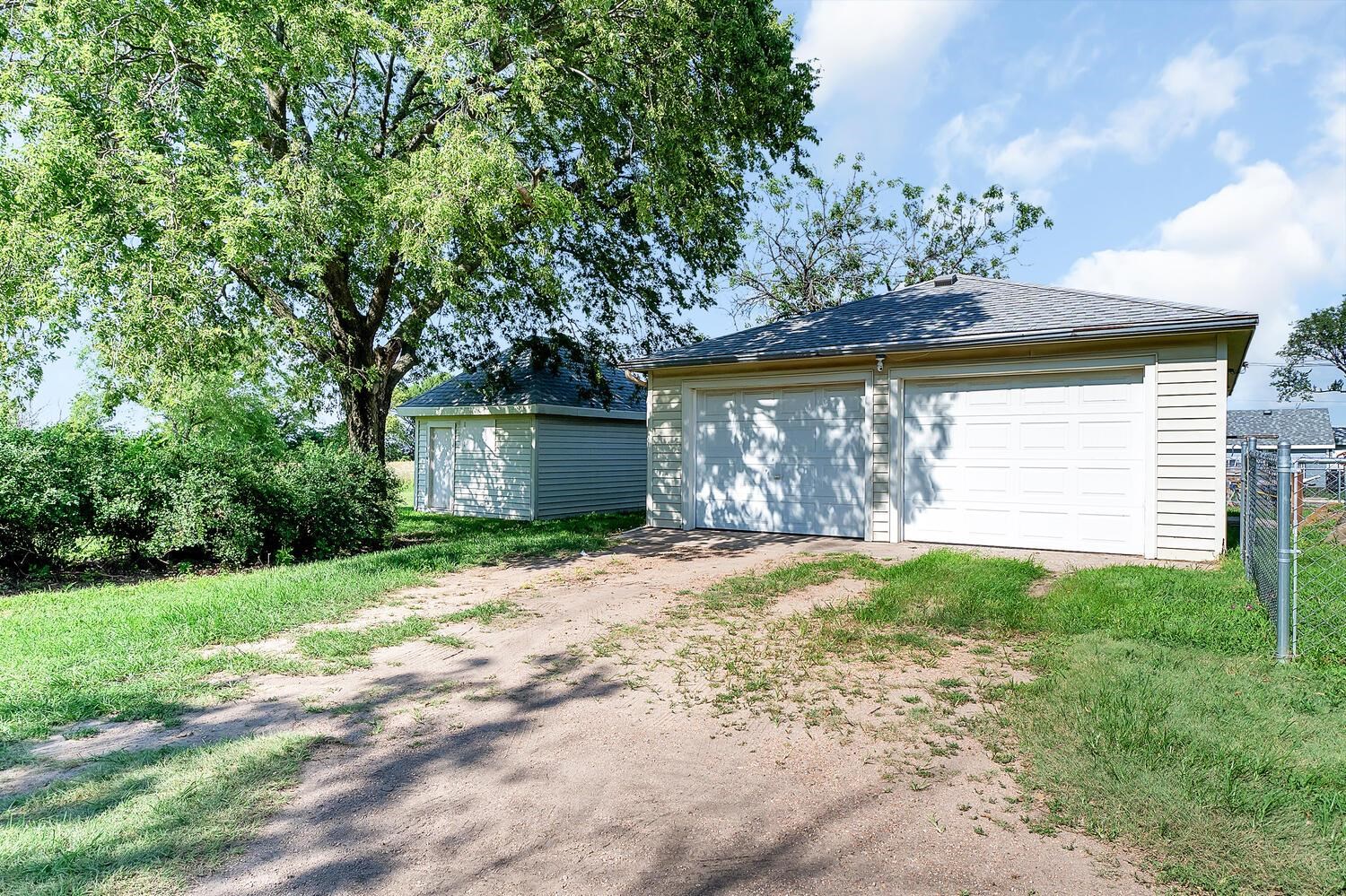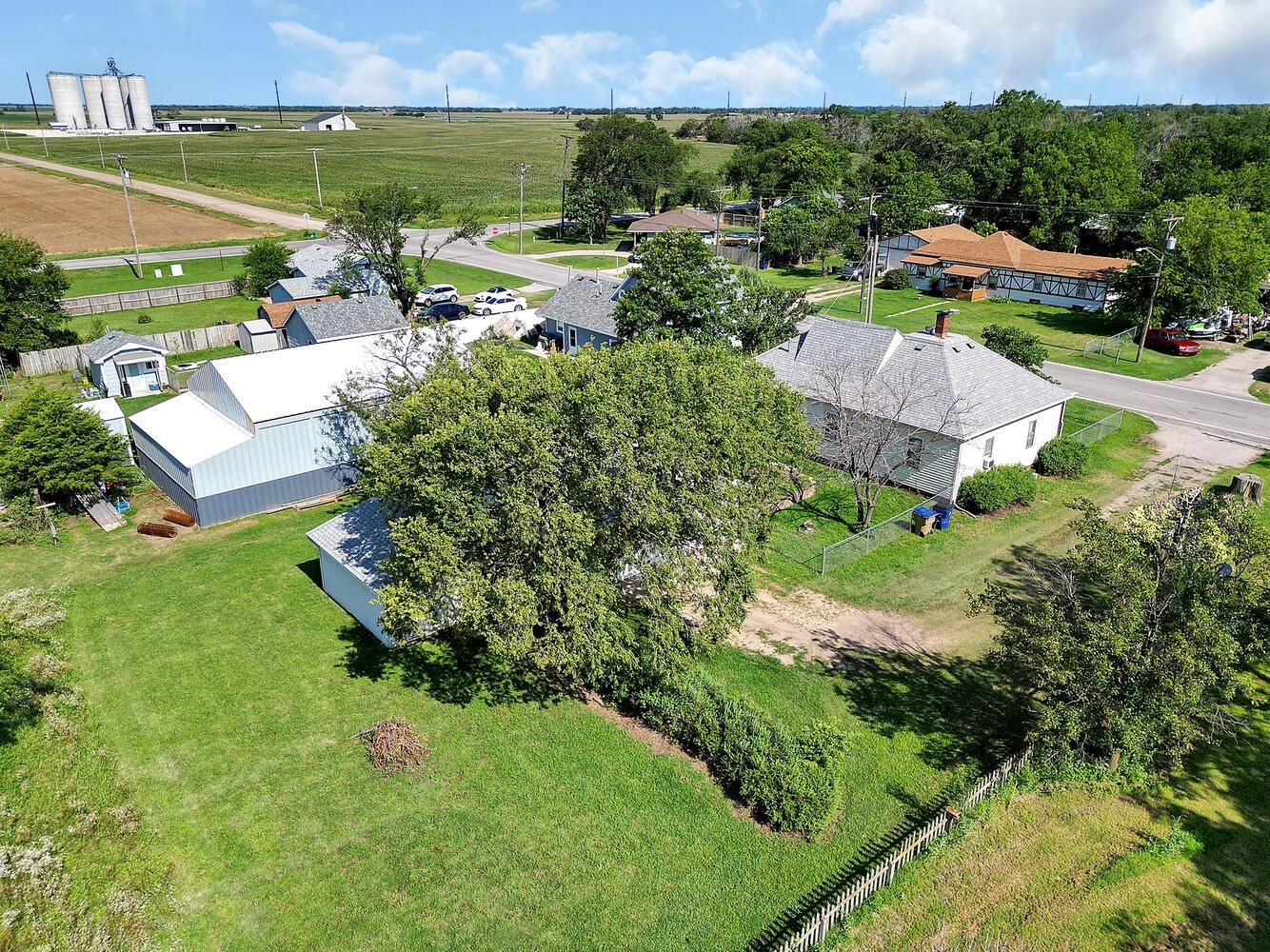 - Description: Charming and full of character, this 2-bedroom, 1-bath home sits on a generous 0.38-acre lot in the peaceful town of Bentley, KS. Inside, you’ll find original hardwood floors and a beautiful pocket door that adds a touch of vintage charm. The large kitchen offers plenty of counter space, making it perfect for cooking and entertaining. A cellar/storm shelter provides a safe retreat during Kansas weather. Outside, an oversized 2-car detached garage and a large storage shed with a garage door offer ample room for vehicles, tools, and more. Enjoy the tranquility of small-town living with the convenience of quick access to Wichita. Show all description