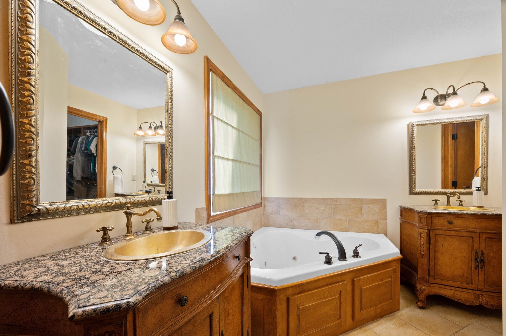 - Master Bedroom: Master Bdrm on Main Level, Split Bedroom Plan, Sep. Tub/Shower/Mstr Bdrm, Two Sinks, Jetted Tub