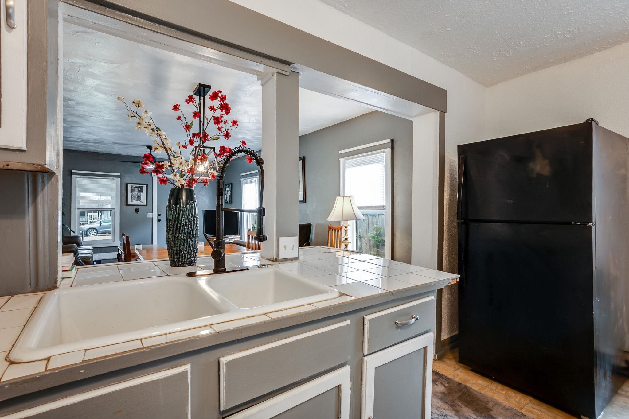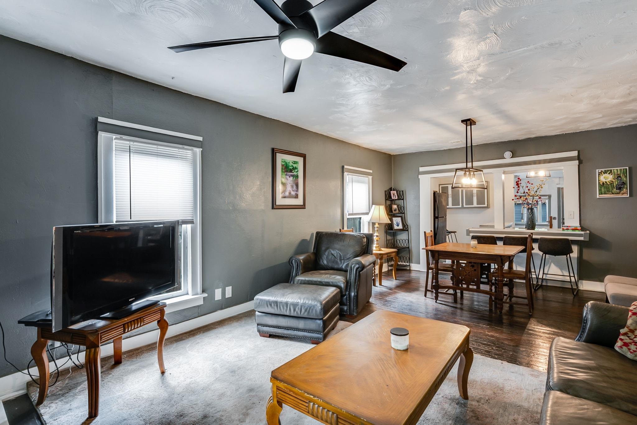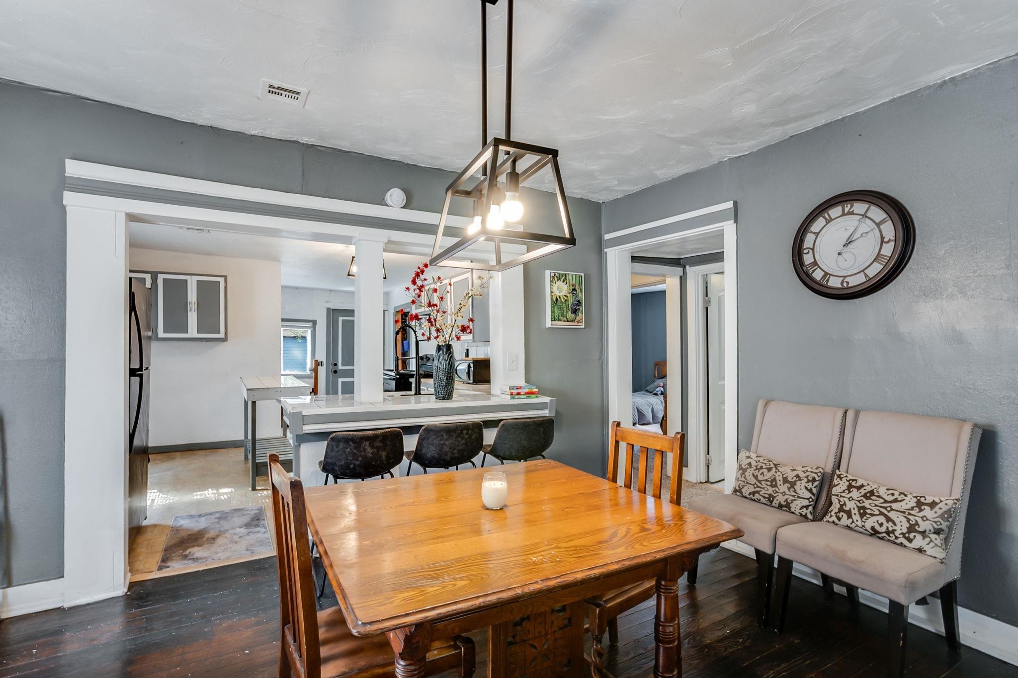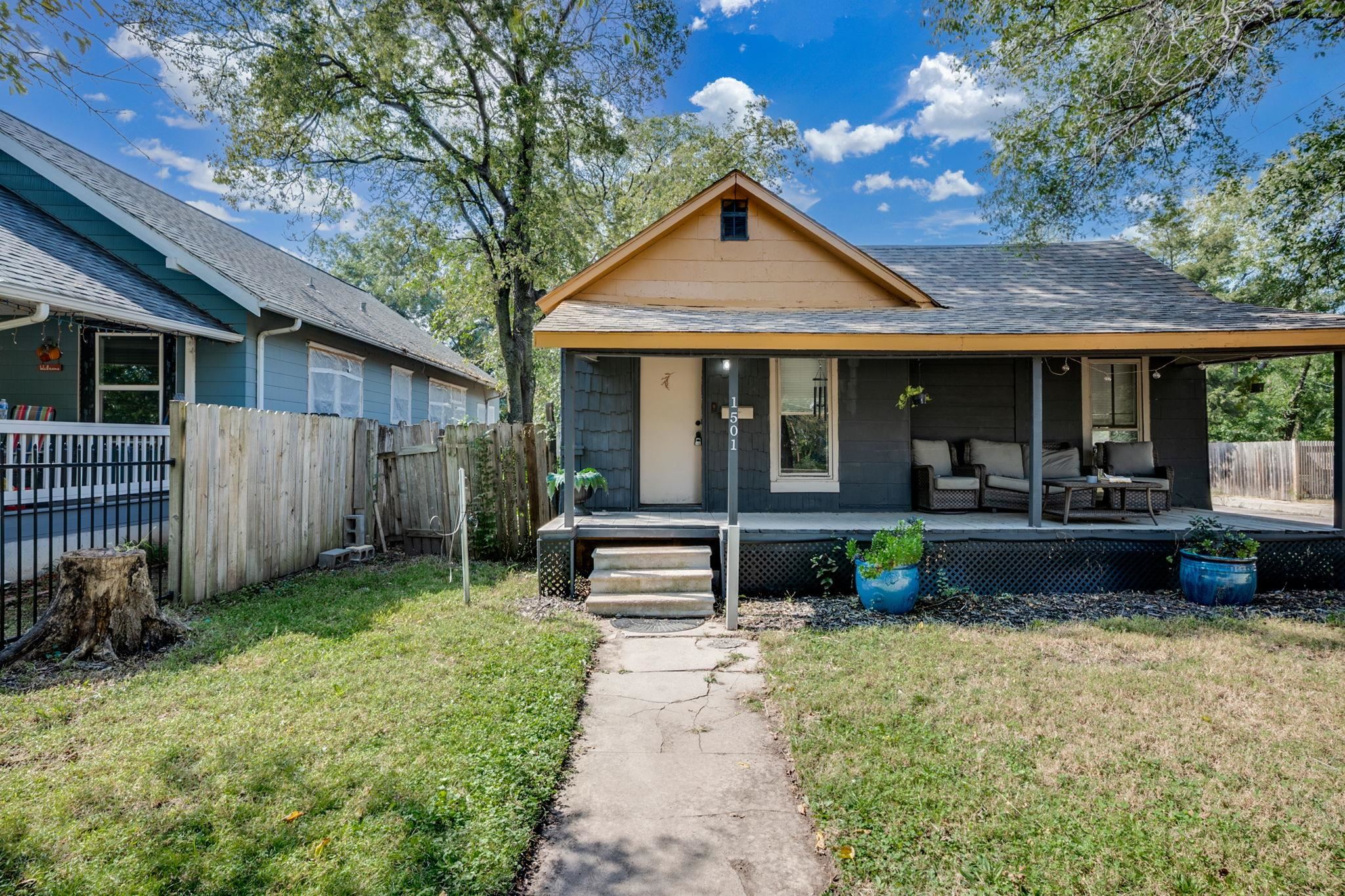 - Description: Investor Special! Don't miss this 2 bedroom, 1 bath home that could be finished with a third bedroom. The front porch stretches all the way across the front of the house for darling curb appeal. The hardwood floors in the living/dining have been recently sealed. The new ceiling fan will keep things cool along with central a/c. The dining area will easily fit a full sized dining table and is accented with a new three-way light fixture. The kitchen has been improved with the same awesome lighting! Don't miss the fun industrial inspired kitchen faucet! Both bedrooms feature newer carpet. The bathroom also has newer flooring! The laundry room/mud room has plenty of room for a drop zone when coming in and out the back door. Concrete pavers lead through the fenced yard to the one car garage out back. Add value quickly with easy fixes and finishing the third bedroom! Instant equity! Show all description