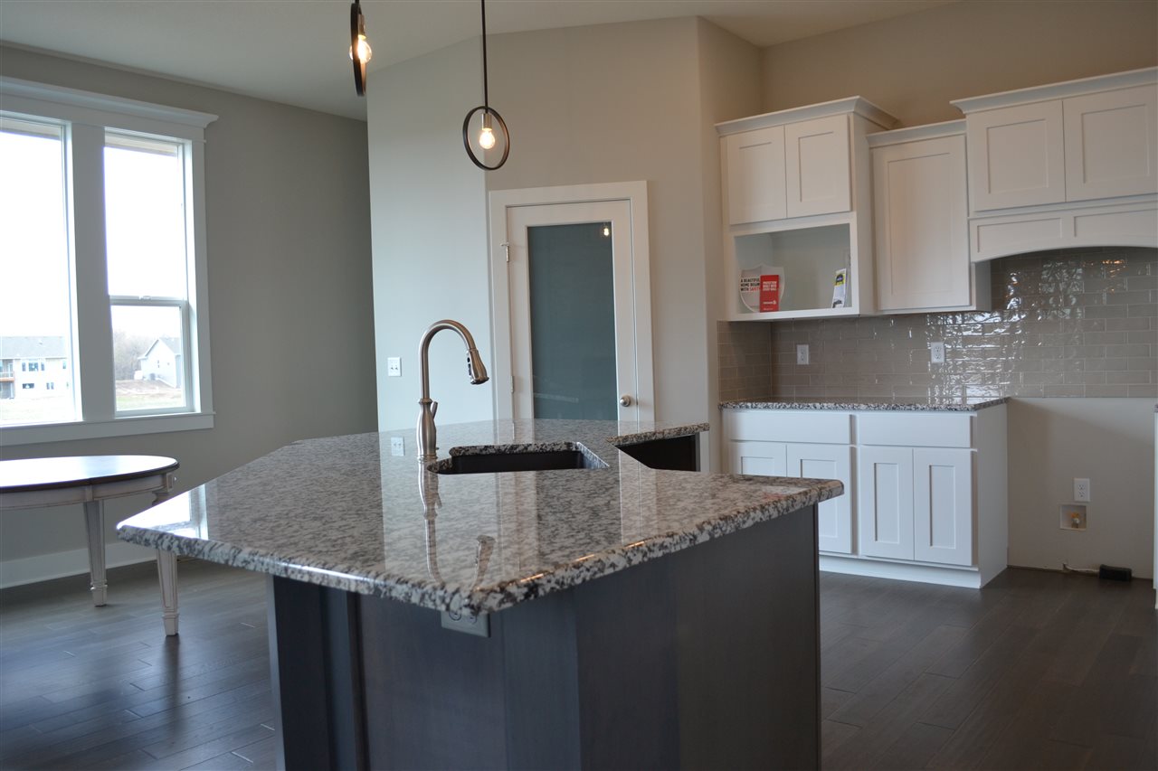- Description: Beautiful Madisyn plan features a large covered deck and an additional 1/2 bath, Located on a lake lot. Kitchen features large granite island, Gas range, air button on garbage and nice pantry. A roomy dining area steps out to a covered deck with a view of the area lake. The large master suite features access to main floor laundry from master closet, His n her vanities, beautiful tile & glass shower and separate whilrpool tub. The back entry features a guest 1/2 bath. Sodded sprinkler yard and irrigation well mean no big yard work to do when moving in to this beautiful brand new home! KLAUSMEYER HOMES ARE BUILT WITH ZIP SYSTEM, JAMES HARDIE SIDING AND HERITAGE II SHINGLES FOR HIGH EFFICIENCY AND LOW MAINTENANCE! Show all description