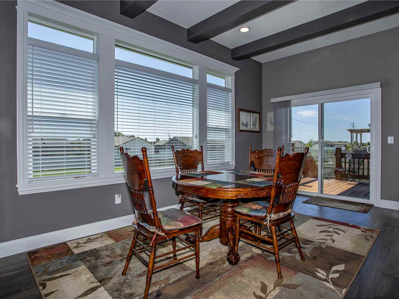 - Description: Need a 4 car garage??? Well, here it is! Poplar Braxton plan features plenty of room for all of your toys in this extra deep 4 car garage! The open main living area features huge center isle in kitchen overlooking spacious dining area , covered deck, fireplace in living room and offers a walk-in pantry, granite tops and wood flooring through the main living area as well as beamed dining room ceiling and a private master suite with vaulted and beamed ceiling and lux master bath! Kitchen features an electric double oven. Kitchen has also been plumbed for gas. Huge dinning area with room enough for a harvest table and buffet. Better than new ...Has wood fence and blinds already installed! Show all description