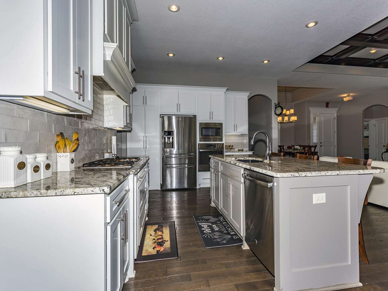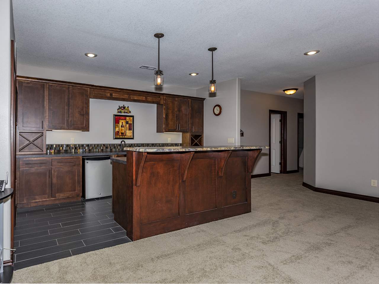 - Description: ONE OWNER HOME HAS BEEN OCCUPIED ONLY 3 YEARS & SHOWS LIKE NEW CONSTRUCTION! MOVE IN READY - NEVER ANY PETS! LOCATED IN STONEBRIDGE SUBDIVISION FEATURING ANDOVER SCHOOLS WITH WICHITA ADDRESS & SEDGWICK CO PROPERTY TAXES! THIS NEUTRAL, OPEN CONCEPT RANCH FEATURES 5 TOTAL BEDROOMS, 3 FULL BATHS, SPLIT BEDROOM FLOOR PLAN, LARGE KITCHEN ISLAND, WALK-IN PANTRY, FORMAL & INFORMAL EATING SPACES, TWO GAS INSERT FIREPLACES, LARGE MAIN FLOOR LAUNDRY WITH SINK, COVERED DECK, SPRINKLER SYSTEM ON WELL, BEAUTIFUL WET BAR IN BASEMENT FAMILY ROOM WITH WALK OUT ACCESS! QUALITY FINISHES THROUGHOUT INCLUDE PRE-ENGINEERED HARDWOOD FLOOR, GRANITE COUNTER-TOPS, TILE FLOORS, STACKED STONE FIREPLACE WITH BUILT-IN SHELVING/STORAGE, HIGH CEILINGS WITH CUSTOM BOX VAULTS & LOTS OF NATURAL LIGHT, ALL APPLIANCES STAY INCLUDING WASHER & DRYER! BEAUTIFUL AREA WITH COMMUNITY POOL! Show all description