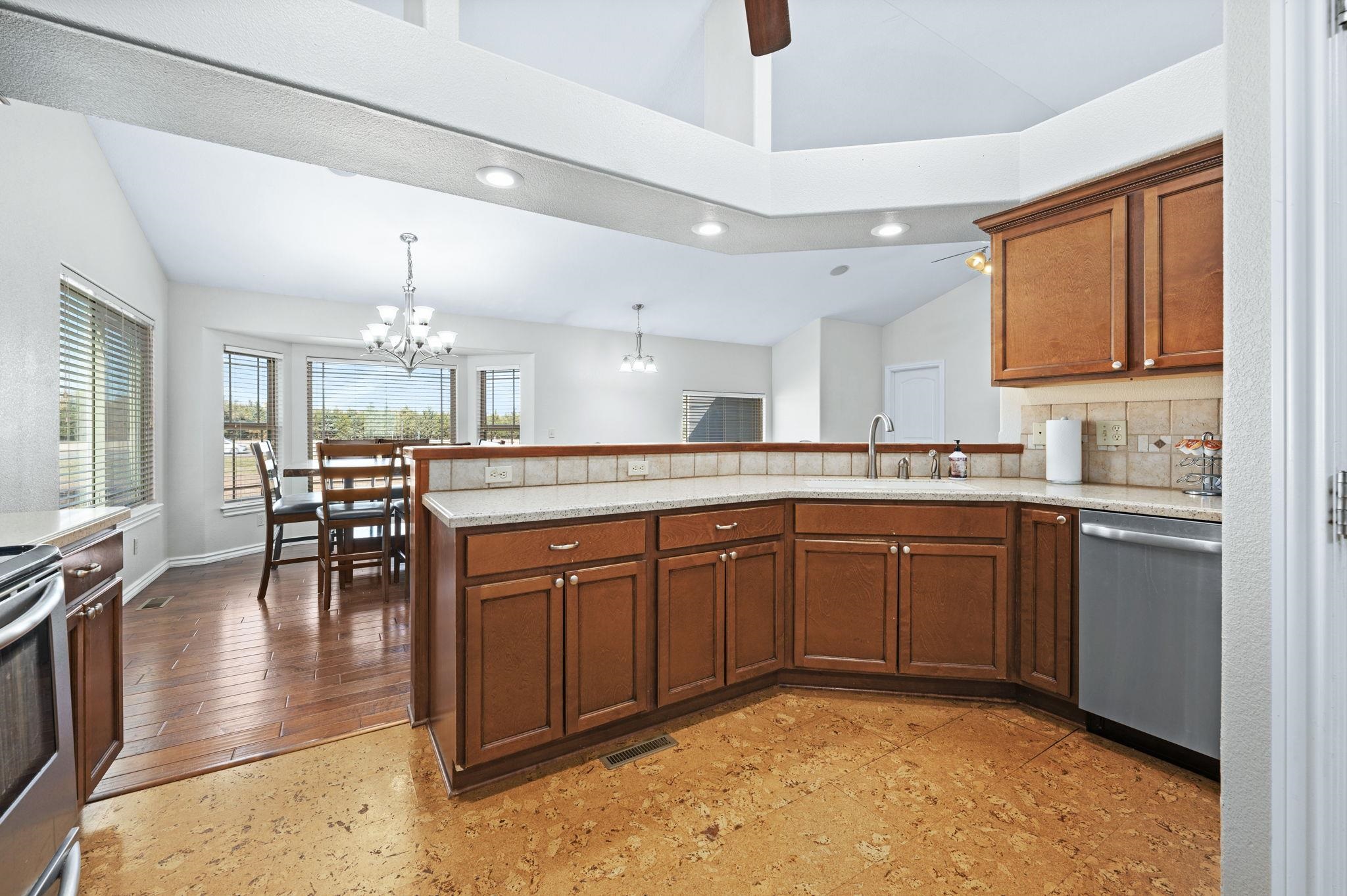 - Description: Sellers are now offering $5000 towards buyer's closing costs with a full price offer! Welcome to this exceptional 5-bedroom, 3-bath home offering over 2,700 sqft of luxurious living space. Nestled on a quiet street in a one-entry neighborhood, this well-maintained, one-owner residence features stunning wood flooring, fresh new carpet, and soaring vaulted ceilings. The kitchen and bathrooms boast elegant quartz countertops. The master suite is a private retreat with a walk-in closet, dual sinks, a soaker tub, and a separate shower. Enjoy entertaining in the basement with a wet bar, cozy fireplace, and a versatile space that can serve as a game room or be converted into a 6th bedroom. Additional highlights include a high-impact resistant roof, upgraded 75-gallon water heater, sprinkler system, and shared well for irrigation, shelving in garage, and washer & dryer hookups on main level & bsmt. Located in the esteemed Andover School District with the benefit of Sedgwick County taxes and no specials. This perfect home is just waiting for you! Show all description