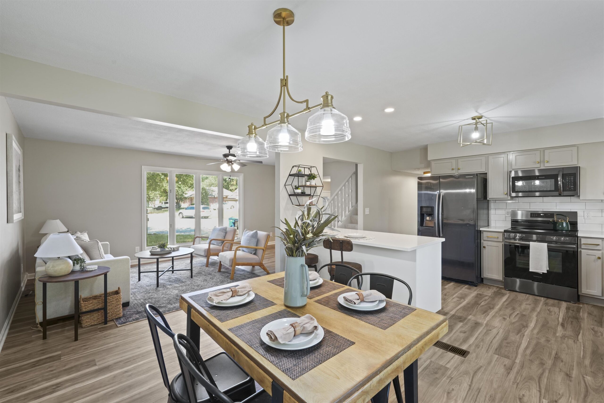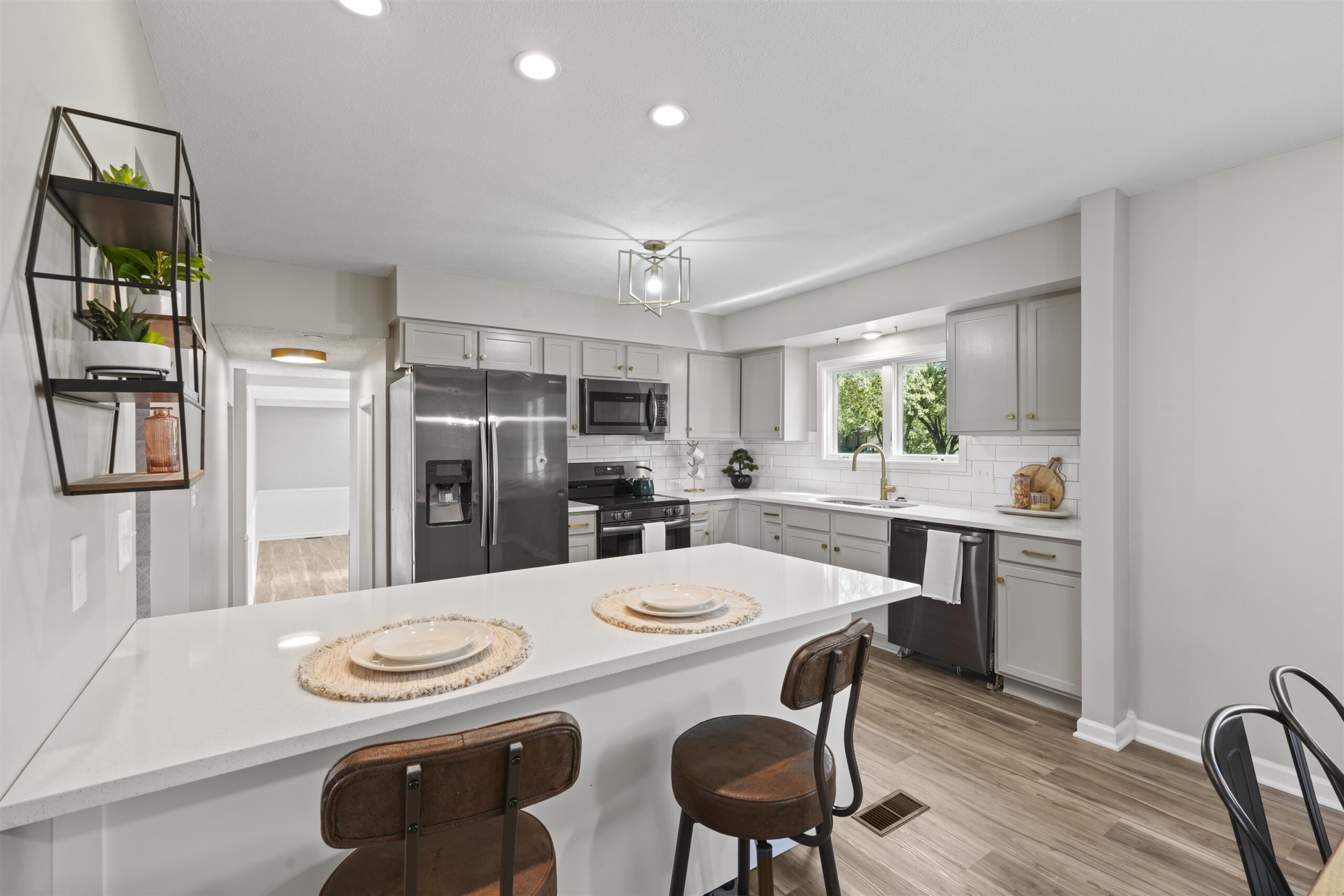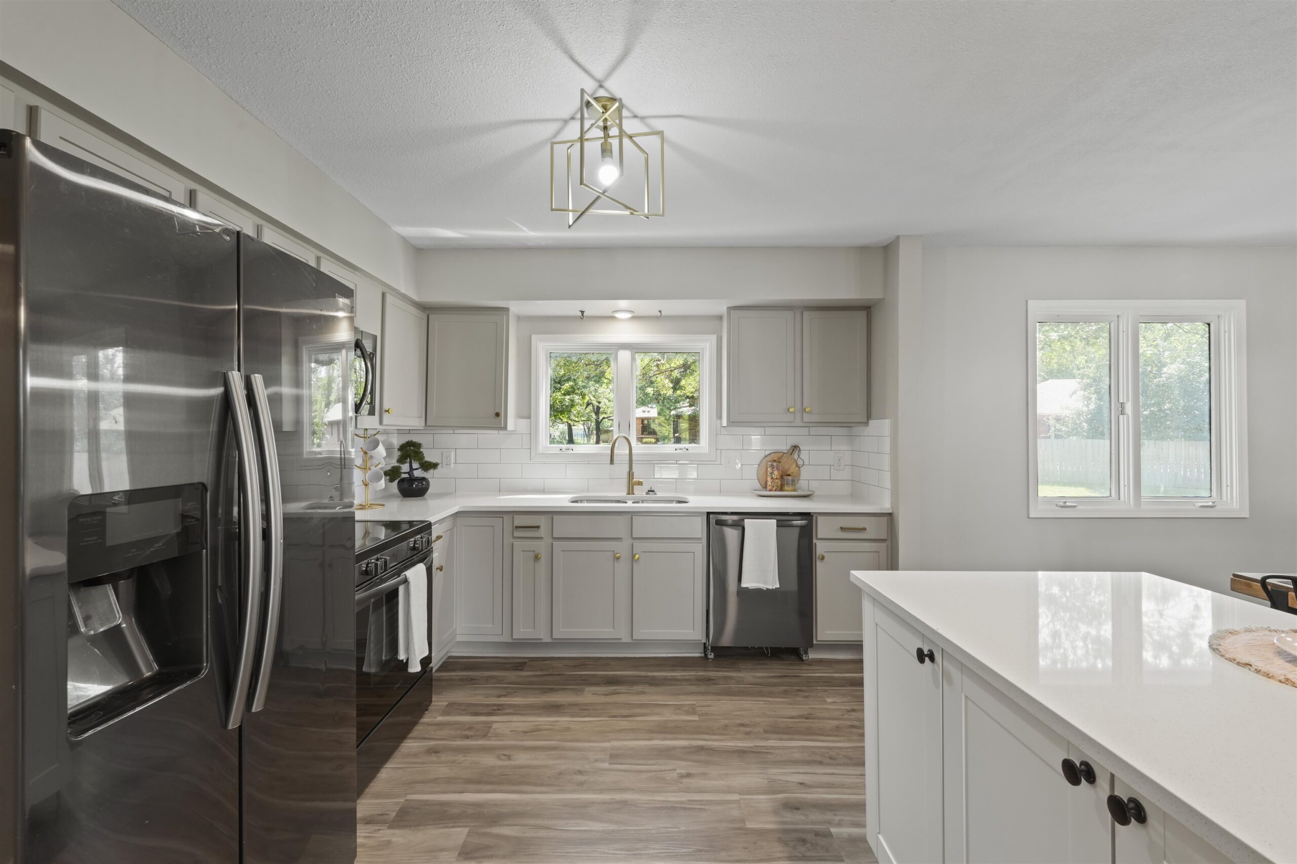 - Description: Looking for a fully renovated home on the west side near 13th and Maize? Welcome to 1534 N Valleyview Ct—a gorgeous property tucked at the end of a quiet cul-de-sac, just minutes from all your favorite spots like Sedgwick County Zoo, Warren Theater, Reflection Ridge Golf Course, and the local Dillons. From the moment you arrive, you’ll love the curb appeal of the mature trees, a covered front patio, and timeless painted brick that set the stage for what’s inside. Step through the front door into an open, light-filled living space featuring luxury vinyl plank flooring and plenty of room to gather. The updated kitchen and dining area flow seamlessly into the living room, making it perfect for entertaining. Enjoy brand-new cabinets, quartz countertops, a center peninsula with bar seating, a custom tile backsplash, and tasteful gold fixtures that bring it all together. Just beyond, a cozy second living area awaits with a full brick wood-burning fireplace and a large sliding glass door leading to the back patio. There’s also a hall bathroom that doubles as the main-level laundry adds convenience to your daily routine. Upstairs, you’ll find built-in storage, a beautifully updated full bathroom, and four bedrooms—including the spacious primary suite with two separate closets and a private en suite bath. The primary bathroom is a true retreat with a massive walk-in shower, complete with a corner seat and niche. The finished basement offers an additional living room and plenty of storage. Outside, enjoy a large concrete patio with built-in planter boxes and a spacious, shaded backyard that backs to a walking path—perfect for evening strolls around the neighborhood. This one has it all—style, comfort, and location. Don’t miss your chance to see it in person. Call today to schedule your tour! Show all description