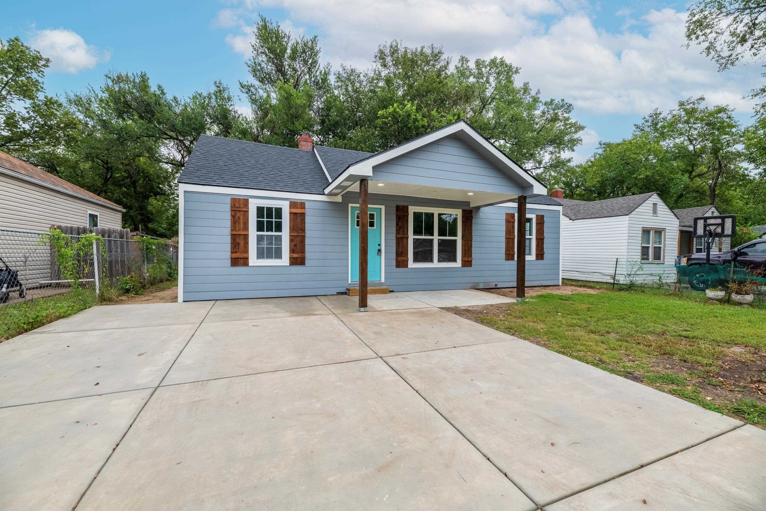 - Description: Welcome to this completely remodeled ranch home near Wichita State University! Featuring 3 bedrooms and 2 bathrooms, this property combines comfort and convenience. The home was completely updated with new roof, siding, windows, hvac, updated plumbing and electrical. Inside everything was redone from the kitchen to the bathrooms and and all new floors throughout. The spacious living area is filled with natural light from large windows and flows seamlessly into the dining room and kitchen. The kitchen offers all new cabinets and butcher block countertops and tile backsplash. The primary bedroom includes a private en-suite bathroom with a tile shower. Outside, enjoy a fenced backyard with space for relaxation or play. Whether you’re a first-time homebuyer or seeking an investment opportunity, this home is an excellent choice in a prime location near shopping, dining, and WSU. Show all description