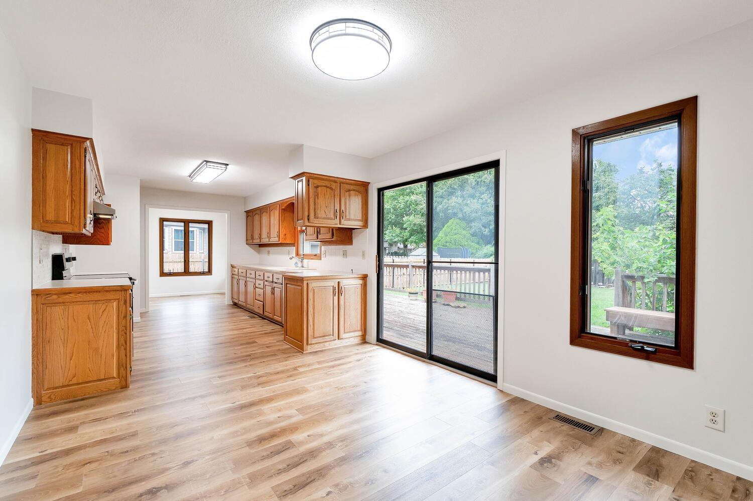 - Description: This beautifully updated home features all-new interior and exterior paint, complemented by brand-new carpet, luxury vinyl plank flooring, updated fixtures, and modern hardware throughout. The property has been thoughtfully remodeled, including the removal of popcorn ceilings and upgrades to both walls and flooring for a fresh, contemporary look. Offering three bedrooms and three full bathrooms, the home also includes a finished bonus room in the basement, ideal for a home office, gym, or guest space. A spacious storage room adds to the home's functionality. The inviting family room showcases a charming brick fireplace flanked by built-in brick shelving, creating a warm and welcoming atmosphere. Step outside to an expansive deck overlooking a large, fully fenced backyard, perfect for entertaining or relaxing. Located in the highly regarded Maize school district, this home blends comfort, style, and convenience in a prime location. Show all description