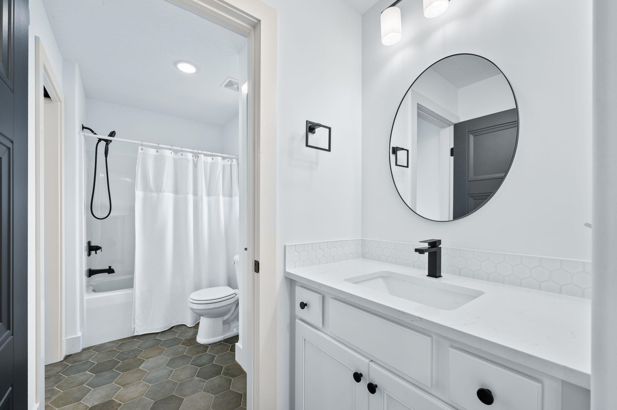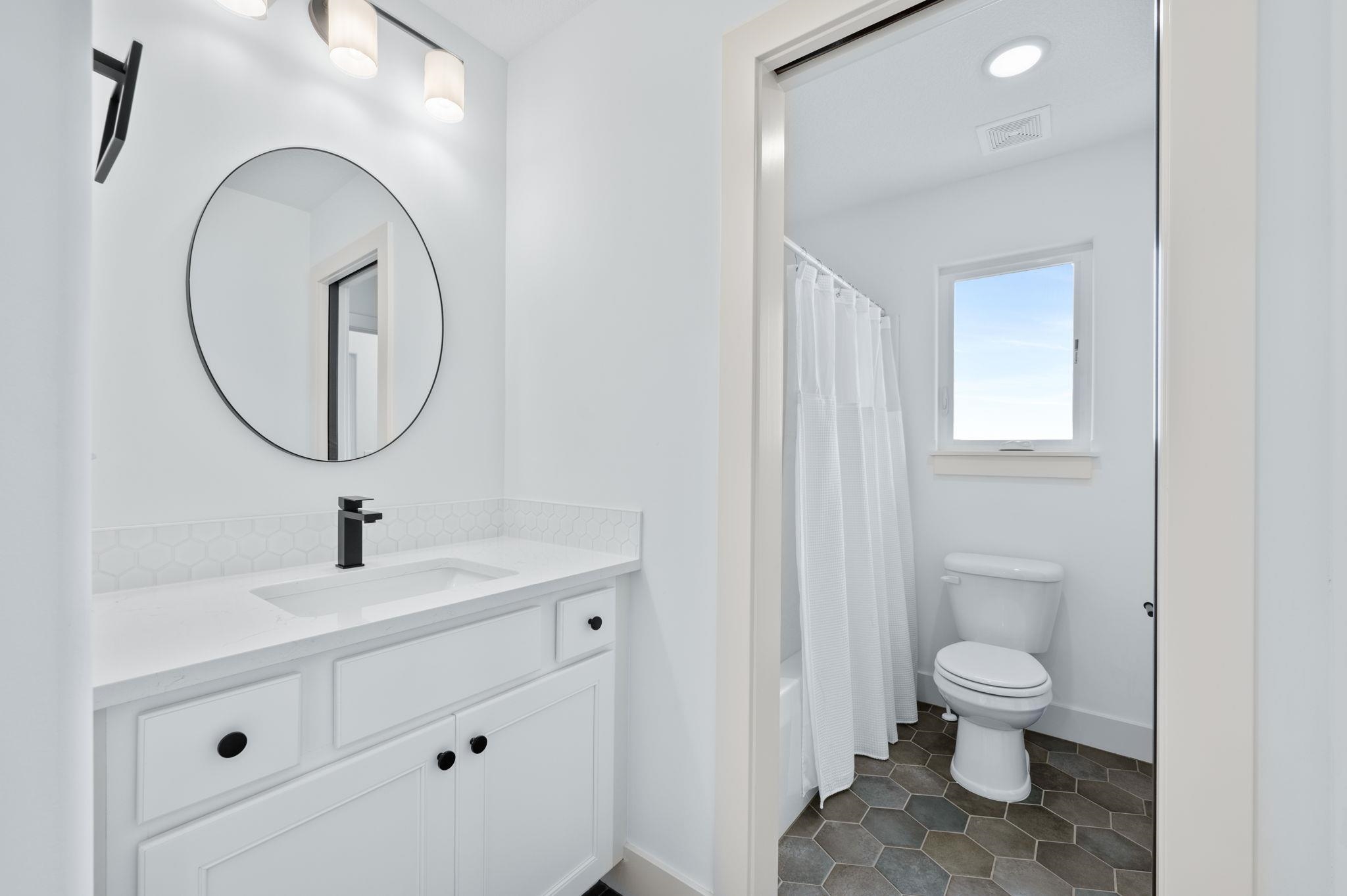 - Master Bedroom: Master Bdrm on Sep. Floor, Master Bdrm on Main Level, Master Bedroom Bath, Sep. Tub/Shower/Mstr Bdrm, Two Sinks, Quartz Counters