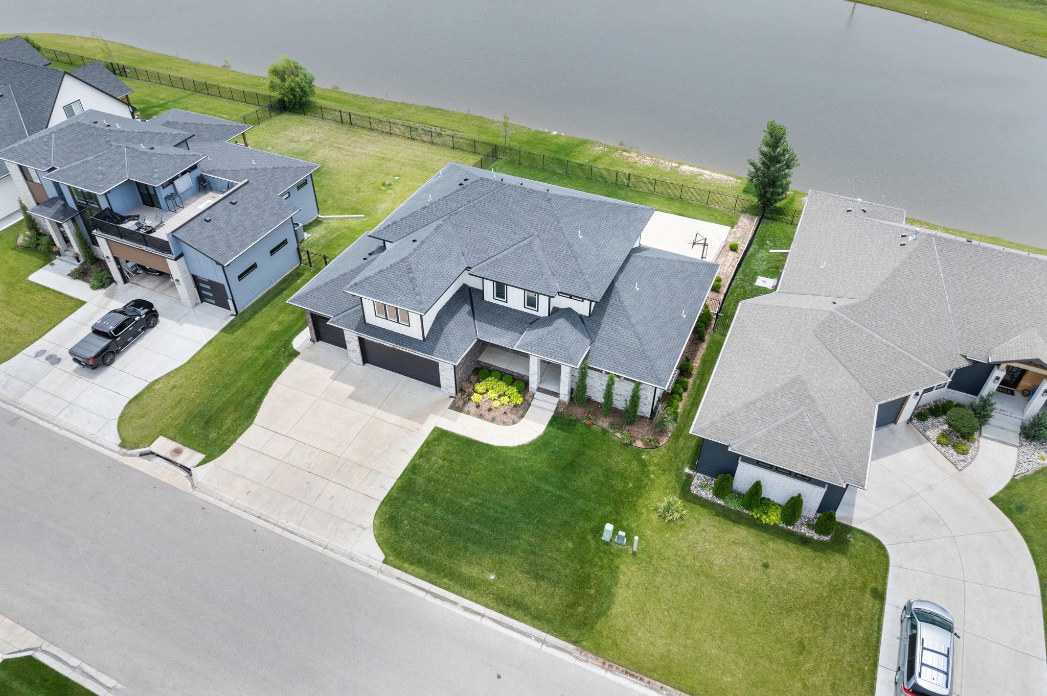 - Description: Where Every Day Feels Like a Getaway – Waterfront Living in Luxury Welcome to a home where morning light dances across the water, evenings are spent beneath painted skies, and every detail has been thoughtfully designed to enrich your everyday life. This one-of-a-kind 6-bedroom, 6-bath custom home is nestled in the heart of Talia, a sought-after community in the award-winning Goddard School District known for its neighborly charm and exceptional amenities. Imagine coming home to your own sanctuary, past the striking curb appeal, the glowing architectural lines, and into a breathtaking interior where soaring 20-foot ceilings greet you. The family room becomes your haven, centered by a dramatic tiled fireplace that climbs to the ceiling and a wall of windows framing ever-changing water views like a living piece of art. The heart of this home is the chef-inspired kitchen: a showpiece of design and function, anchored by an expansive island crafted from a single, stunning slab. Whether you are hosting a holiday dinner or preparing a quiet weeknight meal, you will love the smart GE Profile appliances, generous walk-in pantry, and serene lake views from the kitchen sink. Step outside to the oversized deck, partially covered for shade and comfort, and take in the stillness of the water, broken only by the occasional ripple of a fish below. The main-level primary suite is your private retreat with a recessed ceiling and full lake panorama. The spa-like bath pampers you with a double vanity, oversized soaker tub, and a luxurious dual-head walk-in shower, all leading into a closet so large it is practically its own room. Upstairs, there I s space for everyone: three large bedrooms (one ensuite, two sharing a Jack-and-Jill bath), a second laundry room, and a 26 x 12 bonus room ready to become your home theater, playroom, fitness center, or private office. The lower level is where the fun happens. Host game nights, movie marathons, or birthday parties in the expansive walk-out basement featuring a wet bar, full-size fridge space, and seamless indoor-outdoor flow to a private basketball court and patio by the water. Two more bedrooms and a full bath offer guest or teen suite options, and a concrete storm-safe room provides peace of mind. Throughout the home, you will find thoughtful upgrades designed for modern living: hardwired Cat5 Ethernet, a personal server for lag-free streaming or working from home, dual laundry rooms, and abundant storage. And the neighborhood? It is a lifestyle all its own with resort-style pool with cabanas, walking paths, indoor and outdoor pickleball and basketball courts, and stocked fishing ponds. All just minutes from shopping, dining, and entertainment in West Wichita and Goddard. This is more than a house. It is where waterfront serenity meets high-tech comfort, where gatherings become traditions, and where luxury lives effortlessly. Show all description