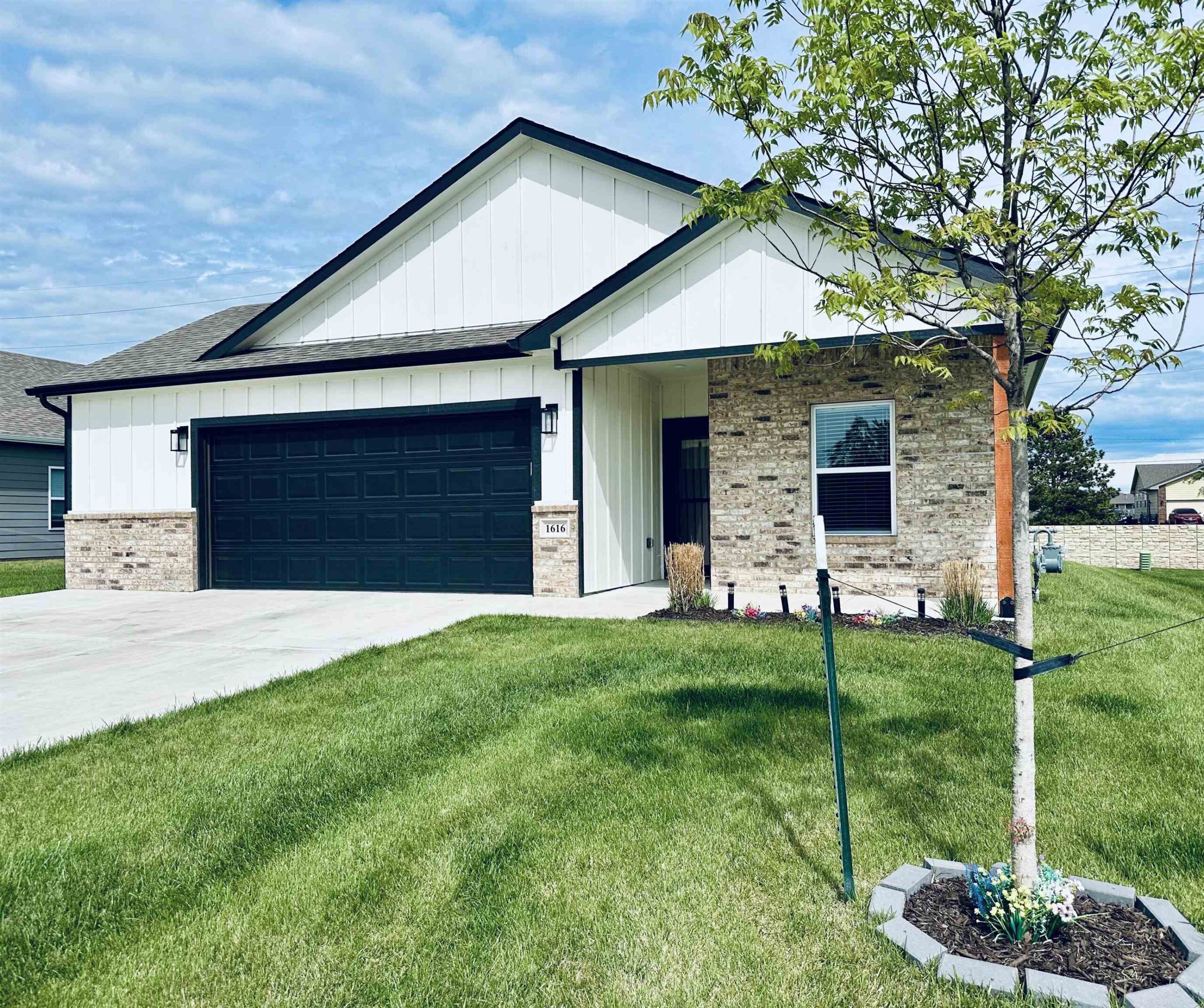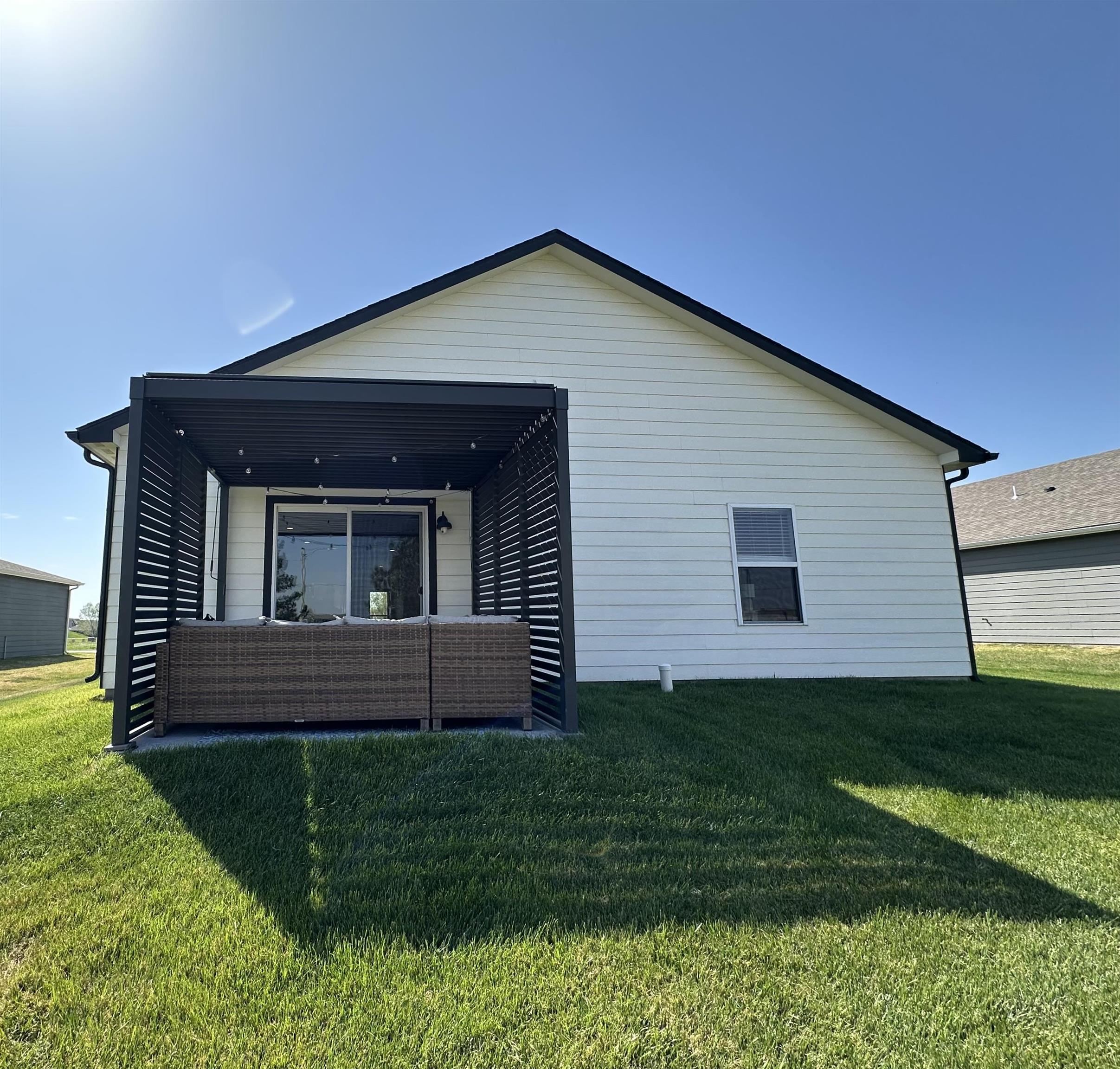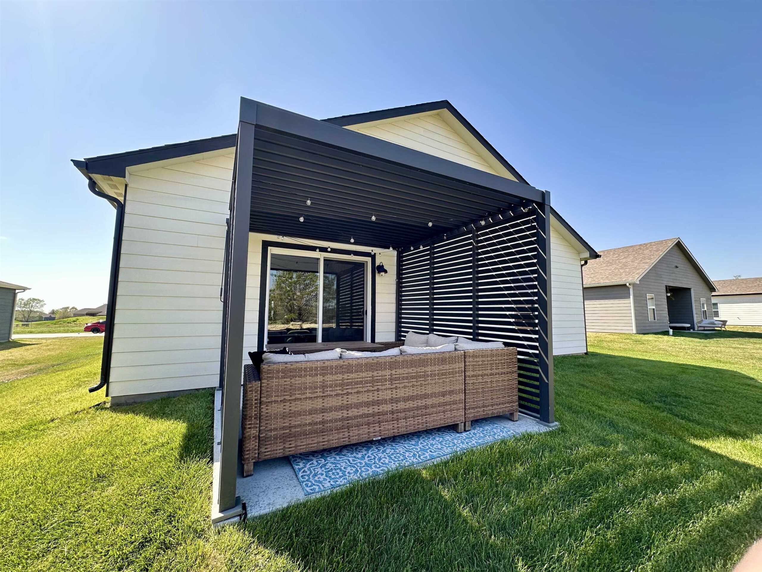 - Description: Welcome to Sand Creek Station's new patio home addition! "The Georgetown" offers an open floor plan featuring four bedrooms and two bathrooms. This home features a safe room in the over-sized, two car garage, 30-year shingle roof, concrete siding, gutters, white cabinets and granite countertops throughout, LVP flooring with carpet in the bedrooms, vinyl windows, gas furnace, electric water heater, and chrome plumbing fixtures. Included are all of your appliances (dishwasher, range, microwave, refrigerator, garbage disposal, washer, and dryer) as well as sprinkler system, sod/seeding, bushes and trees to meet HOA requirements, and window blinds! Homeowners have extended the concrete driveway for extra parking. Ceilings fans and new light fixtures added throughout the home. A pergola with lights added to the backyard patio will bring many relaxing days and evenings. Enjoy the neighborhood amenities of the community swimming pool, lakes and walking paths surrounded by the renowned Sand Creek Station Golf Course. Close proximity to shopping, dining, Newton Medical Center, award winning schools, YMCA, golfing, swimming and so much more! Residents now have the privilege of using their personal golf carts through-out the development! Sand Creek Station is synonymous with an exceptional quality of life. Show all description