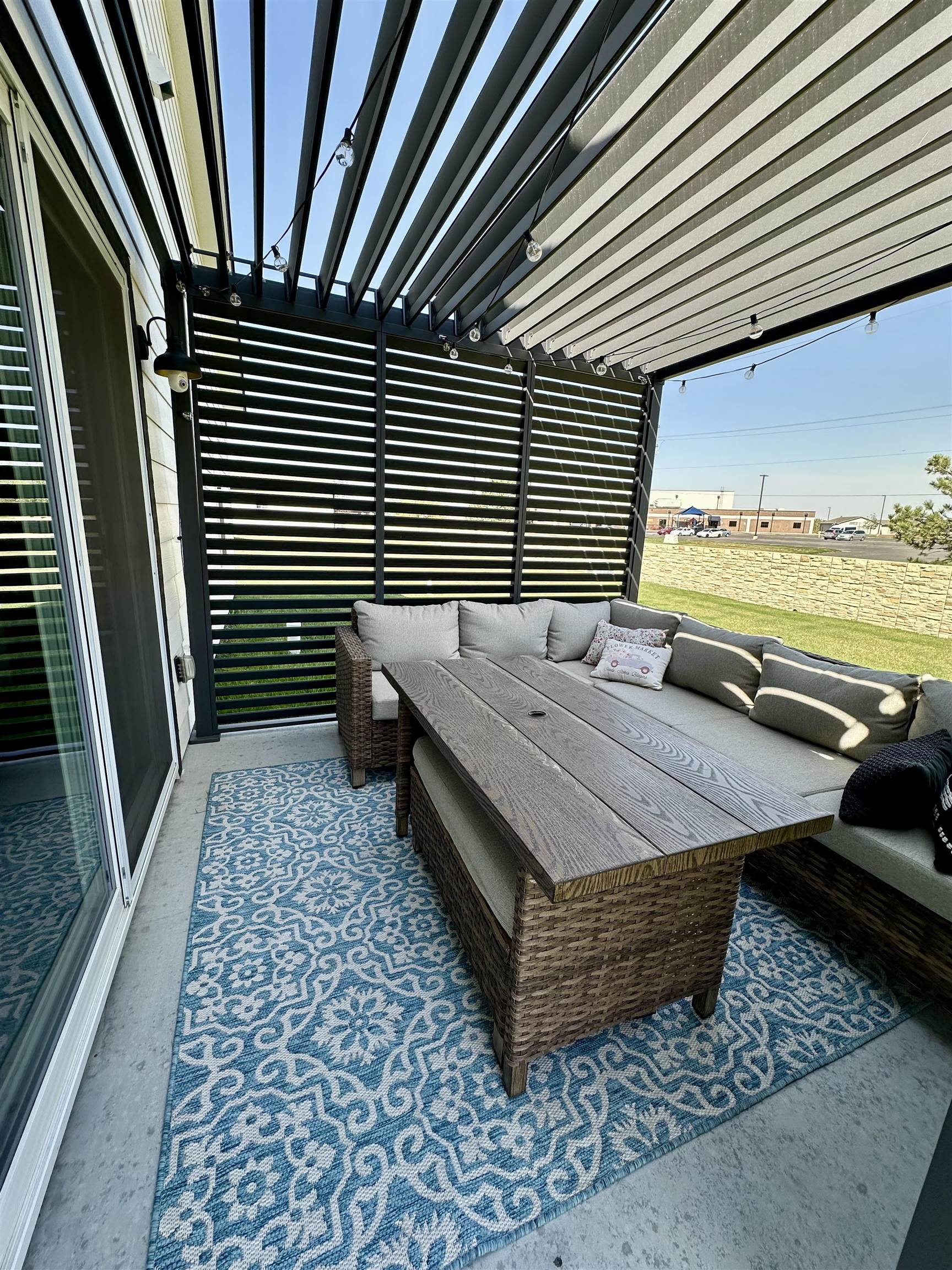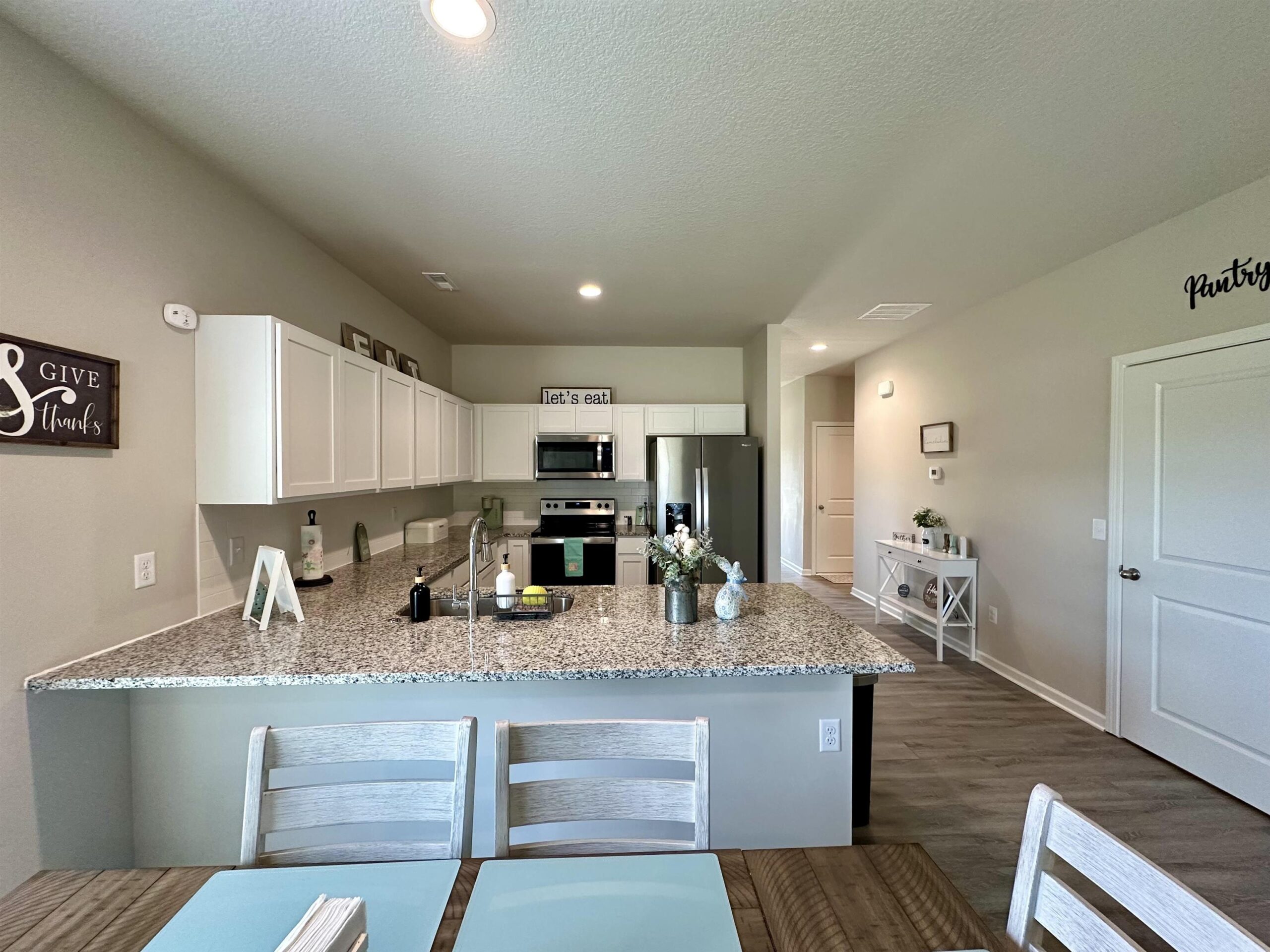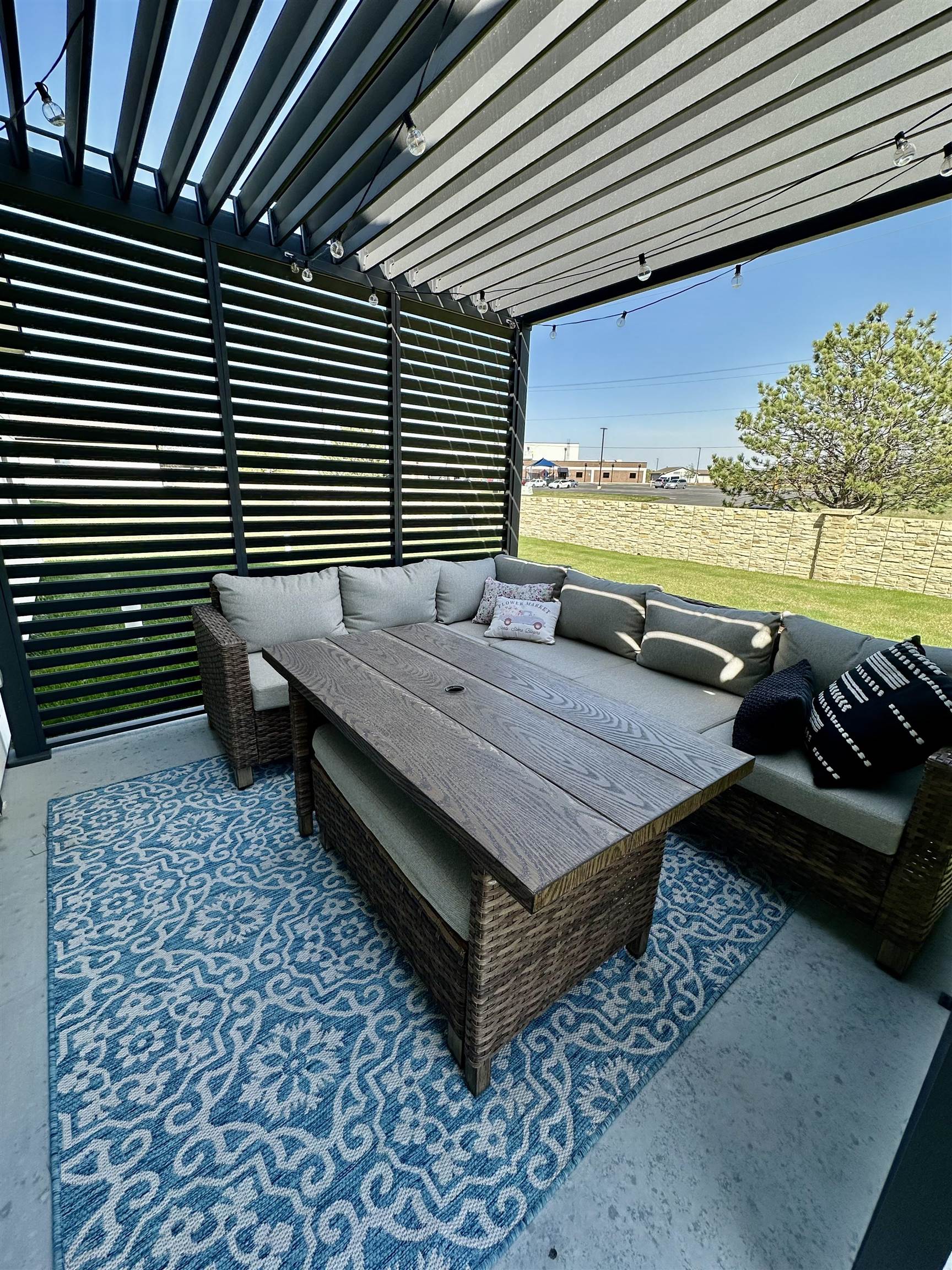 - Description: Welcome to Sand Creek Station's new patio home addition! "The Georgetown" offers an open floor plan featuring four bedrooms and two bathrooms. This home features a safe room in the over-sized, two car garage, 30-year shingle roof, concrete siding, gutters, white cabinets and granite countertops throughout, LVP flooring with carpet in the bedrooms, vinyl windows, gas furnace, electric water heater, and chrome plumbing fixtures. Included are all of your appliances (dishwasher, range, microwave, refrigerator, garbage disposal, washer, and dryer) as well as sprinkler system, sod/seeding, bushes and trees to meet HOA requirements, and window blinds! Homeowners have extended the concrete driveway for extra parking. Ceilings fans and new light fixtures added throughout the home. A pergola with lights added to the backyard patio will bring many relaxing days and evenings. Enjoy the neighborhood amenities of the community swimming pool, lakes and walking paths surrounded by the renowned Sand Creek Station Golf Course. Close proximity to shopping, dining, Newton Medical Center, award winning schools, YMCA, golfing, swimming and so much more! Residents now have the privilege of using their personal golf carts through-out the development! Sand Creek Station is synonymous with an exceptional quality of life. Show all description