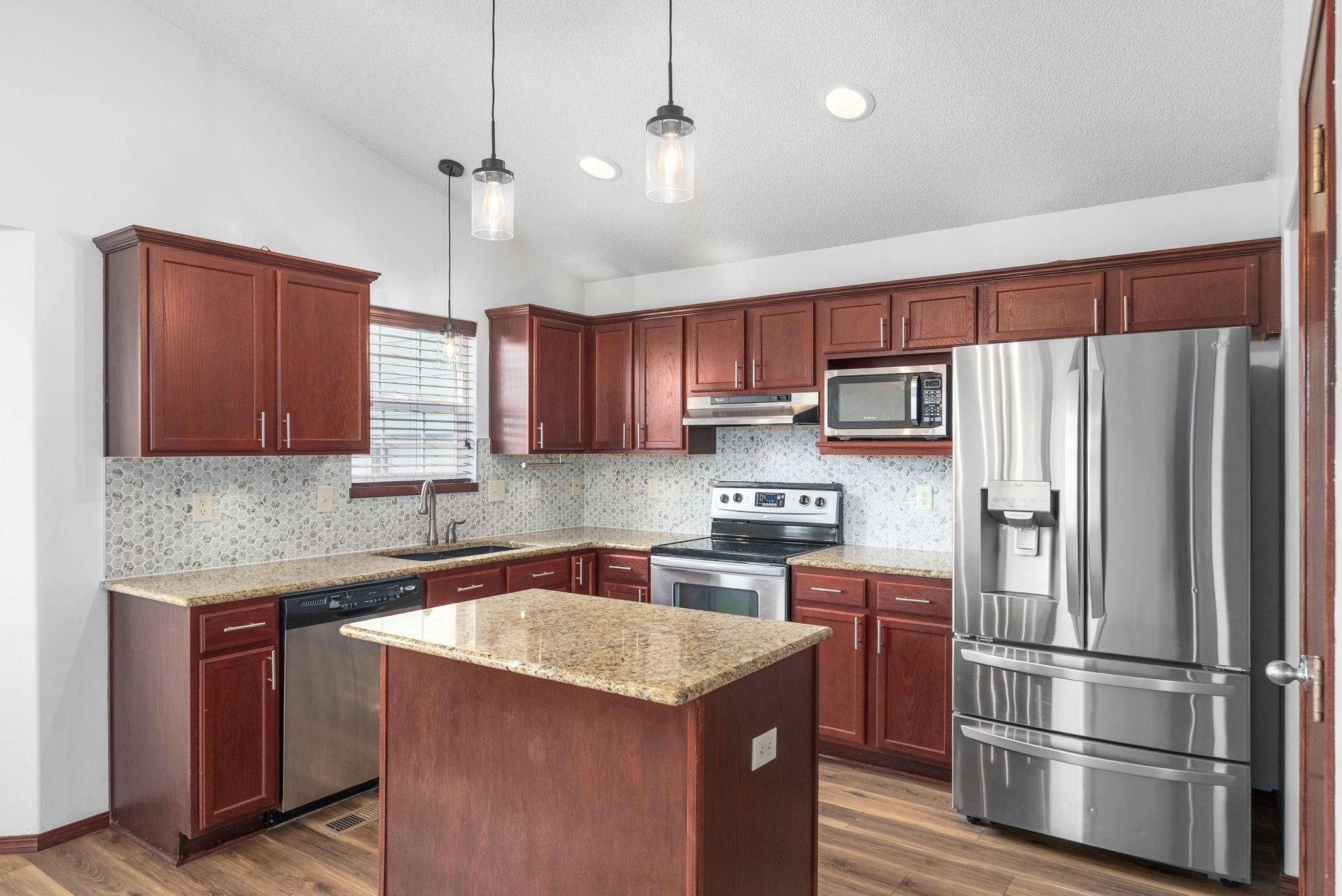 - Description: Welcome to this updated 4-bedroom, 3-bathroom ranch home in west Wichita, located near 13th and 135th St W within the highly sought-after Maize school district. Step inside to a welcoming living room that flows into the open kitchen, featuring granite countertops, ample cabinetry, and a stylish new hexagon tile backsplash. The primary suite offers a spacious walk-in closet and an en-suite bathroom complete with a separate tub and shower, double-sink vanity with new countertops, and a subway tile backsplash. An additional bedroom and an updated hall bathroom complete the main level. Downstairs, the fully finished basement offers even more living space with a large family room, two additional bedrooms, and a full bathroom. Outside, enjoy a fully fenced backyard and a covered patio. Other updates include brand new carpeting in the basement, newer LVP flooring on the main level, modern light fixtures throughout, and newer paint inside and out. Located in the desirable Silverton neighborhood, you’ll enjoy scenic walking paths around community ponds, a family-friendly park, and more—all just minutes away from the shops, restaurants, and amenities of New Market Square. Enjoy the peace of suburban living without sacrificing city convenience. Show all description