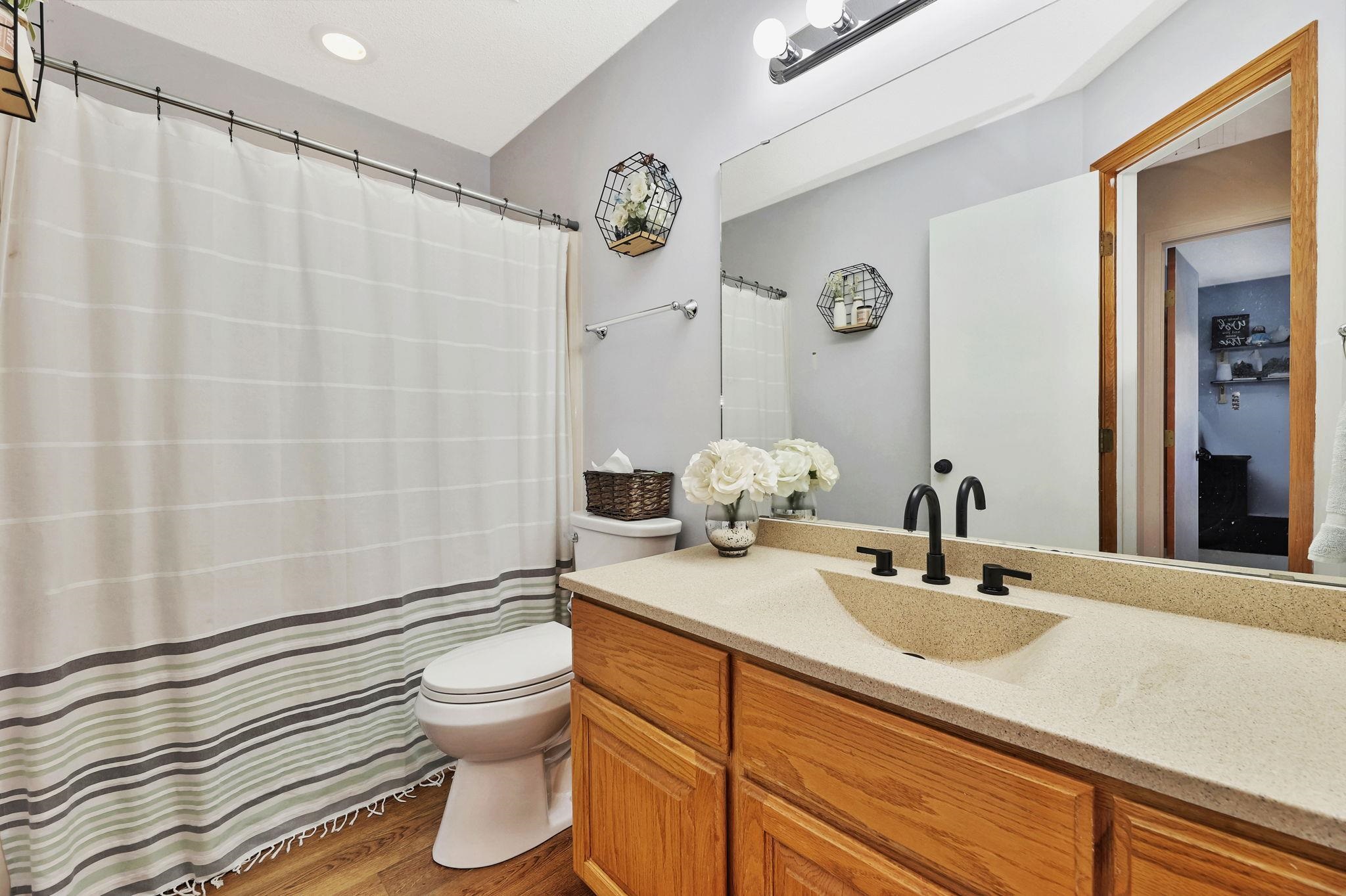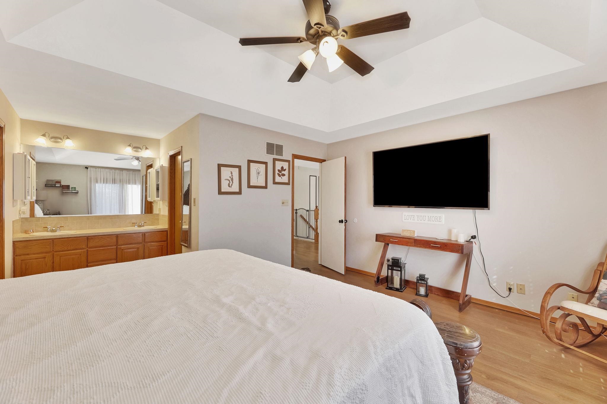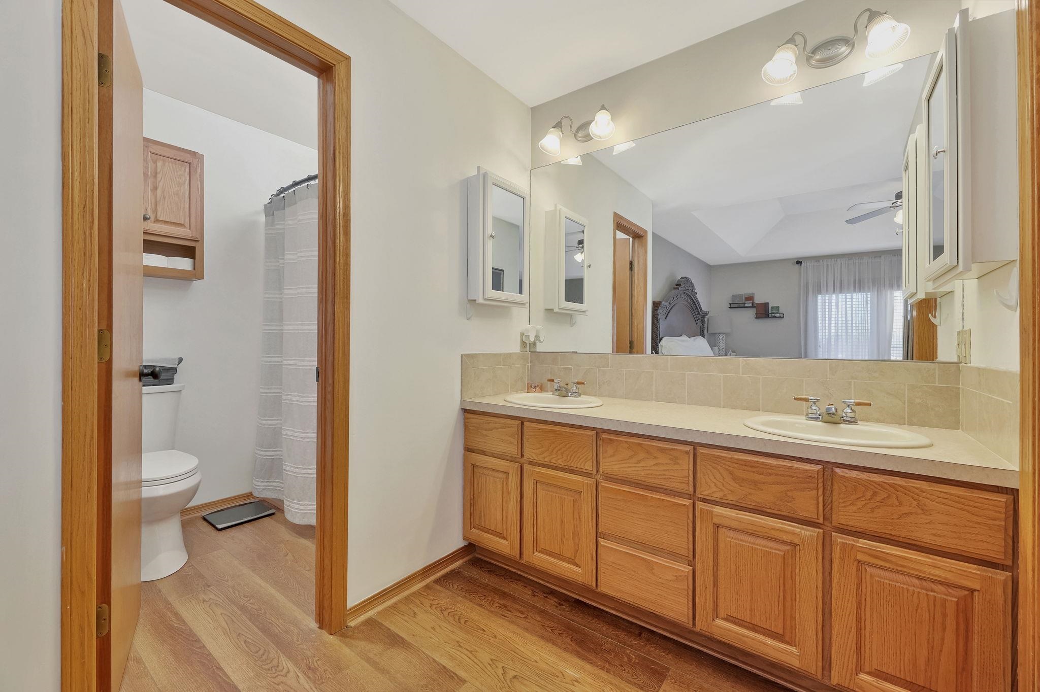 - Master Bedroom: Master Bdrm on Main Level, Split Bedroom Plan, Master Bedroom Bath, Tub/Shower/Master Bdrm, Two Sinks, Laminate Counters, Water Closet