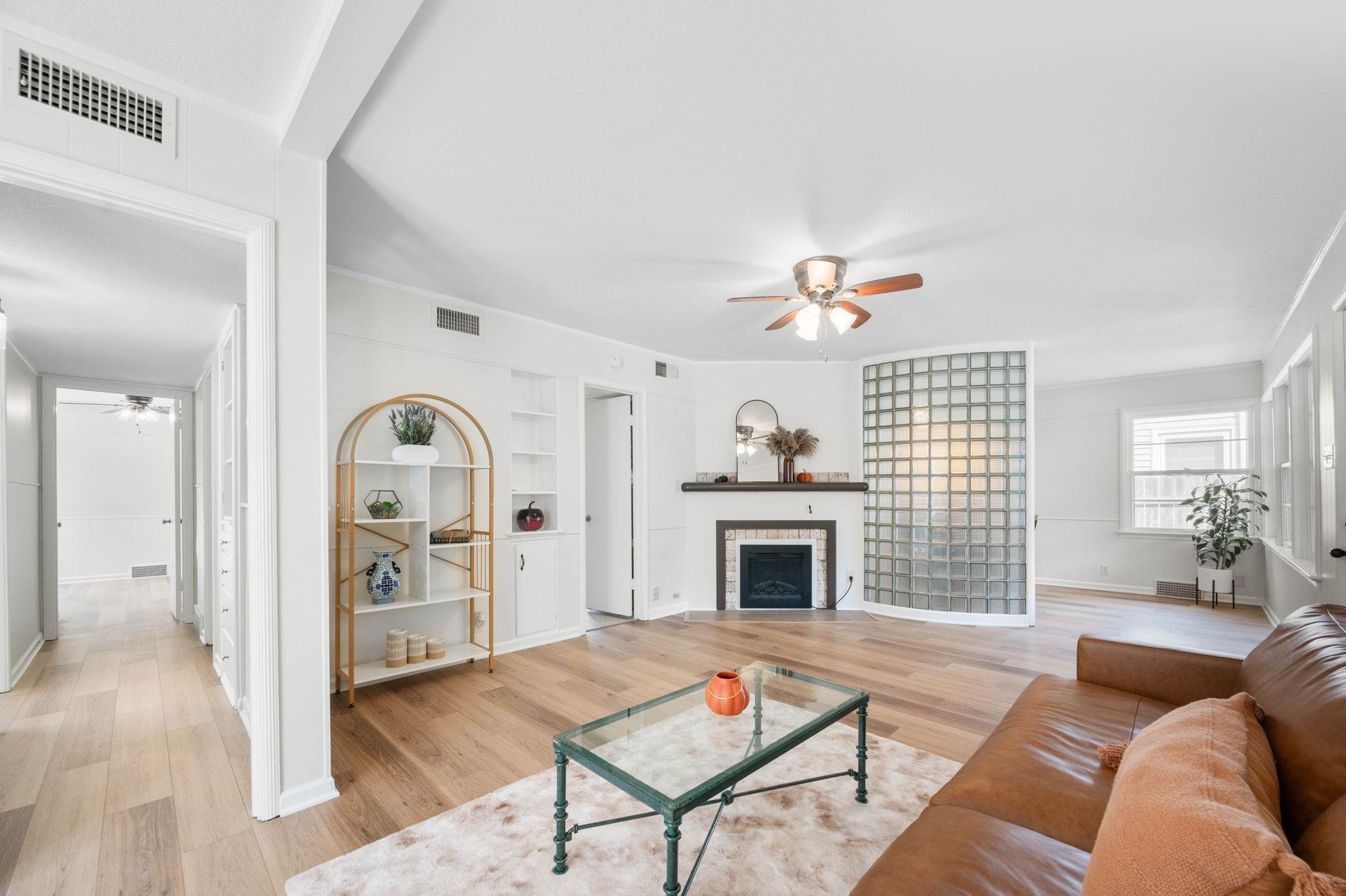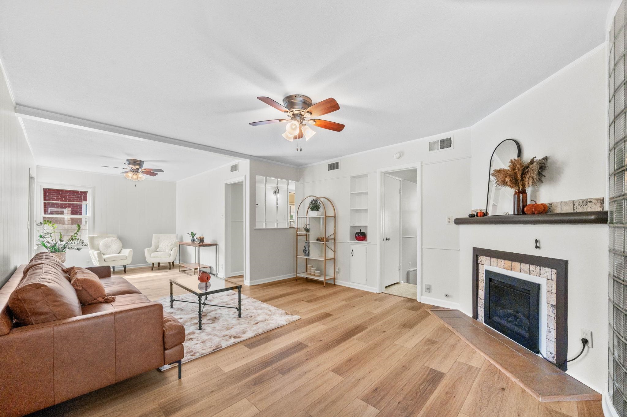 - Description: Welcome to your new home in the sought out North Riverside Neighborhood! This home has been thoughtfully renovated with the most tasteful finishes for its new owners. On the main floor you will find an open family room with extra living space that features an electric fireplace insert. The two main floor bedrooms have ample closet space and the fully renovated bathroom boasts a tile shower/tub combo. Inside the living / dining area you will see the round glass cube wall that truly captures the beauty and charm of Riverside. The fully renovated kitchen has quartz countertops, a refrigerator, stainless steel dishwasher, range, & microwave that all remain with the home! The laundry/utility room is located on the main floor with entrances off of the living room and kitchen, making it easily accessible and offering convenience for its new owners. Upstairs you will find additional living space with extra storage, which could make for a great office, nursery or gym. The 3rd bedroom, also located upstairs, features a walk-in closet and a full en-suite bathroom with a tile shower. Outside you will find a brand new insulated garage door as well as a new roof that was installed October 2025. The fully fenced landscaped backyard features a swing-set and chicken coops that would also make for great dog runs. Schedule your private showing today! Show all description