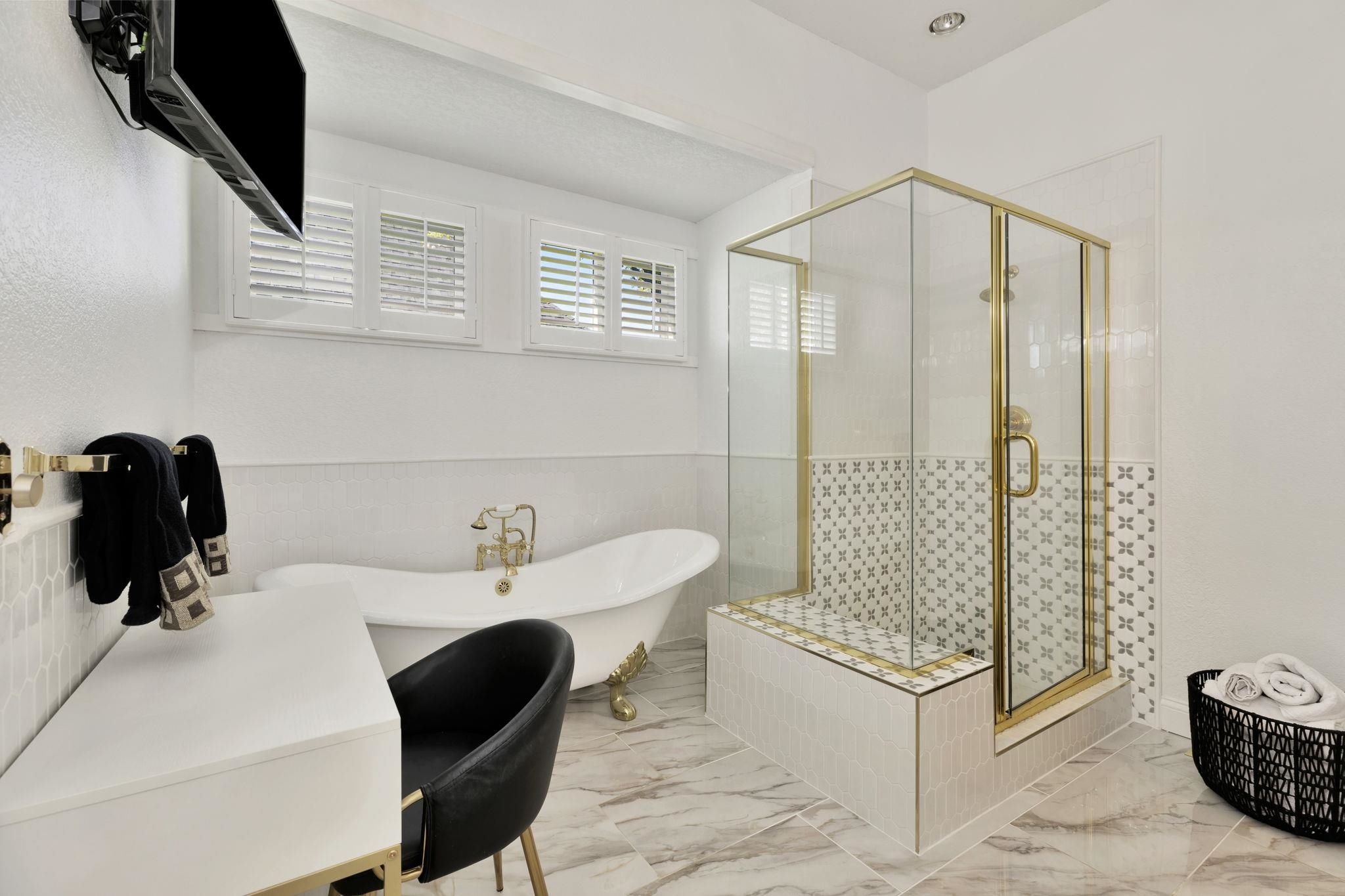 - Master Bedroom: Master Bdrm on Main Level, Sep. Tub/Shower/Mstr Bdrm, Two Sinks, Quartz Counters