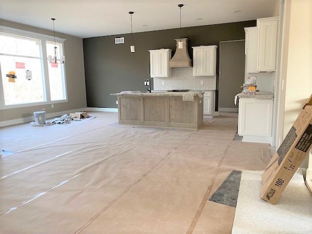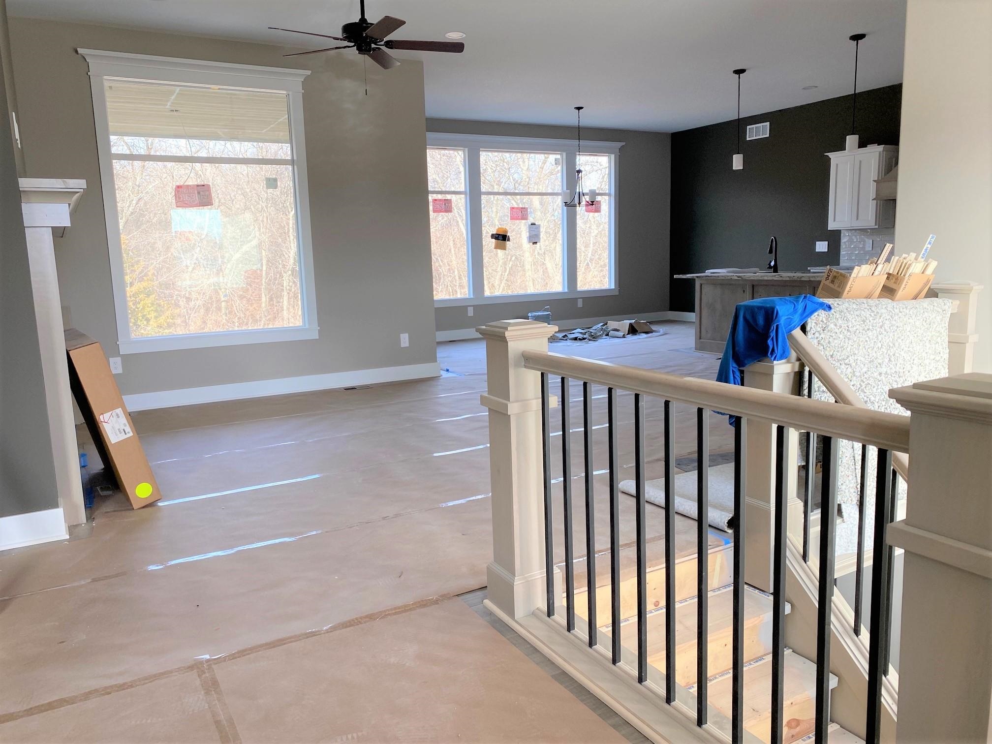 - Description: Looking for a 5 car garage? Well here it is, perfect for the car enthusiast or to store all of your goodies! Beautiful open floor plans features huuuuge kitchen island, hidden walk-in pantry, spacious primary suite with lux bath including separate whirlpool and tiled shower which opens to the main floor laundry for ez access to put away clothing. The full viewout/walkout basement is fully finished with family room, two more bedrooms and bath. There's a covered deck over a covered patio and all overlook a beautiful tree lined lot for beacoup privacy! Show all description