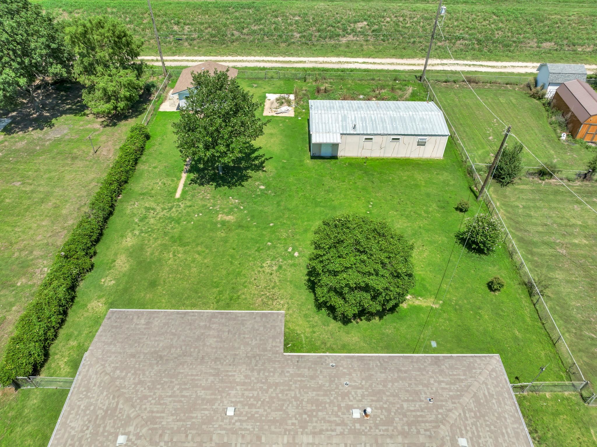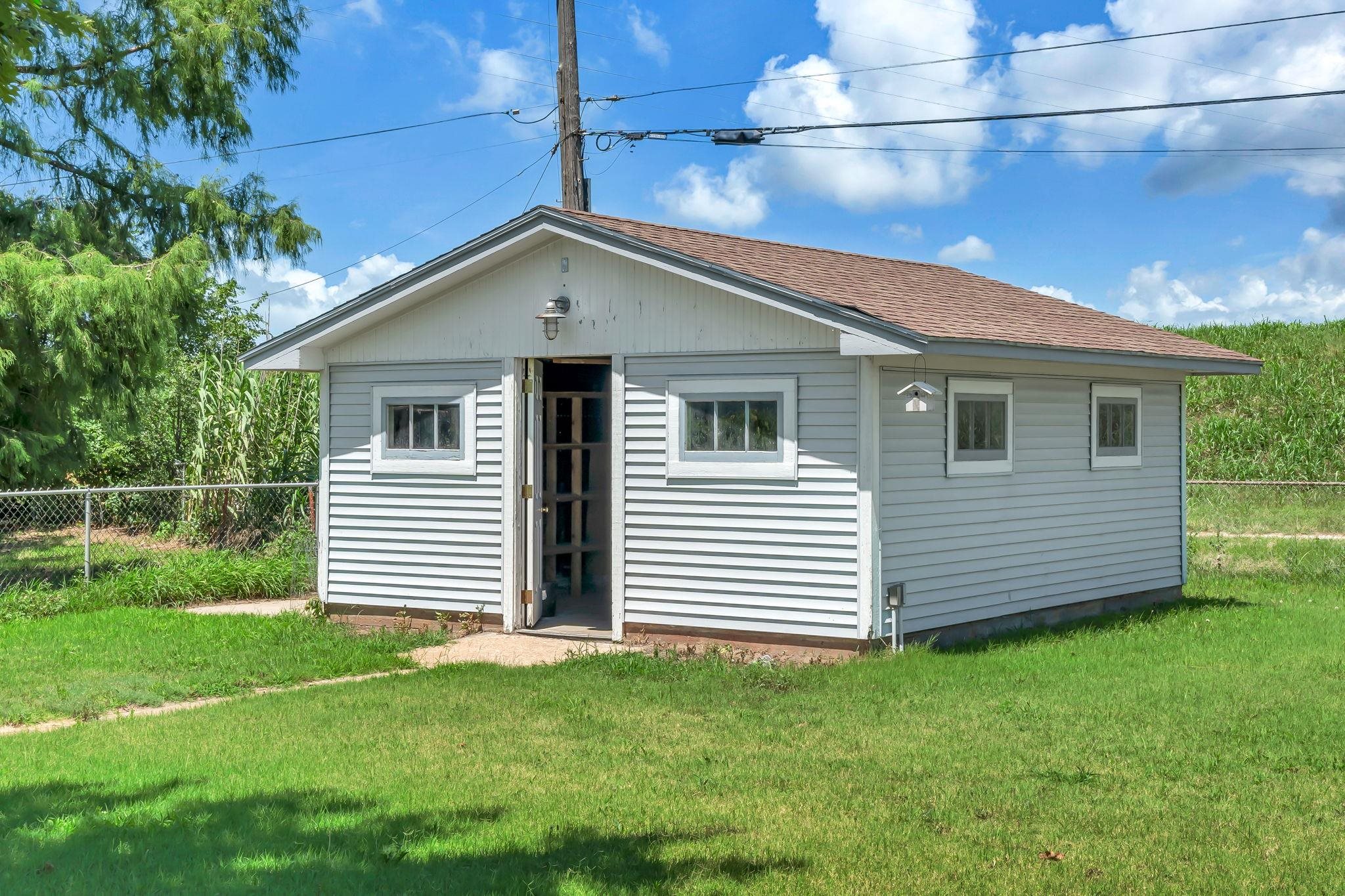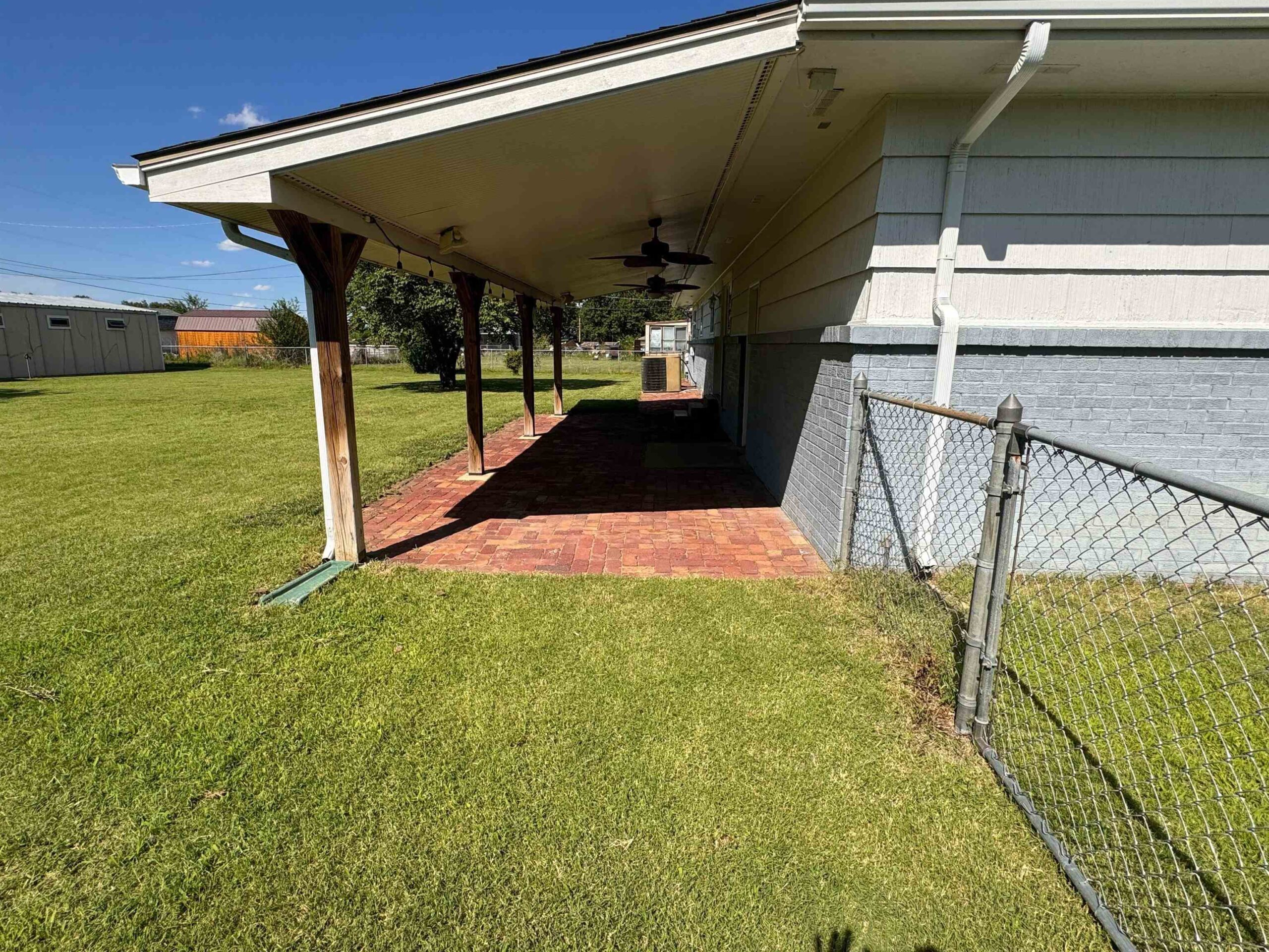 - Exterior Amenities: Above Ground Outbuilding(s), Patio-Covered, Fence-Chain Link, Guttering - ALL, RV Parking, Storage Building, Storm Doors, Frame w/Less than 50% Mas, Brick