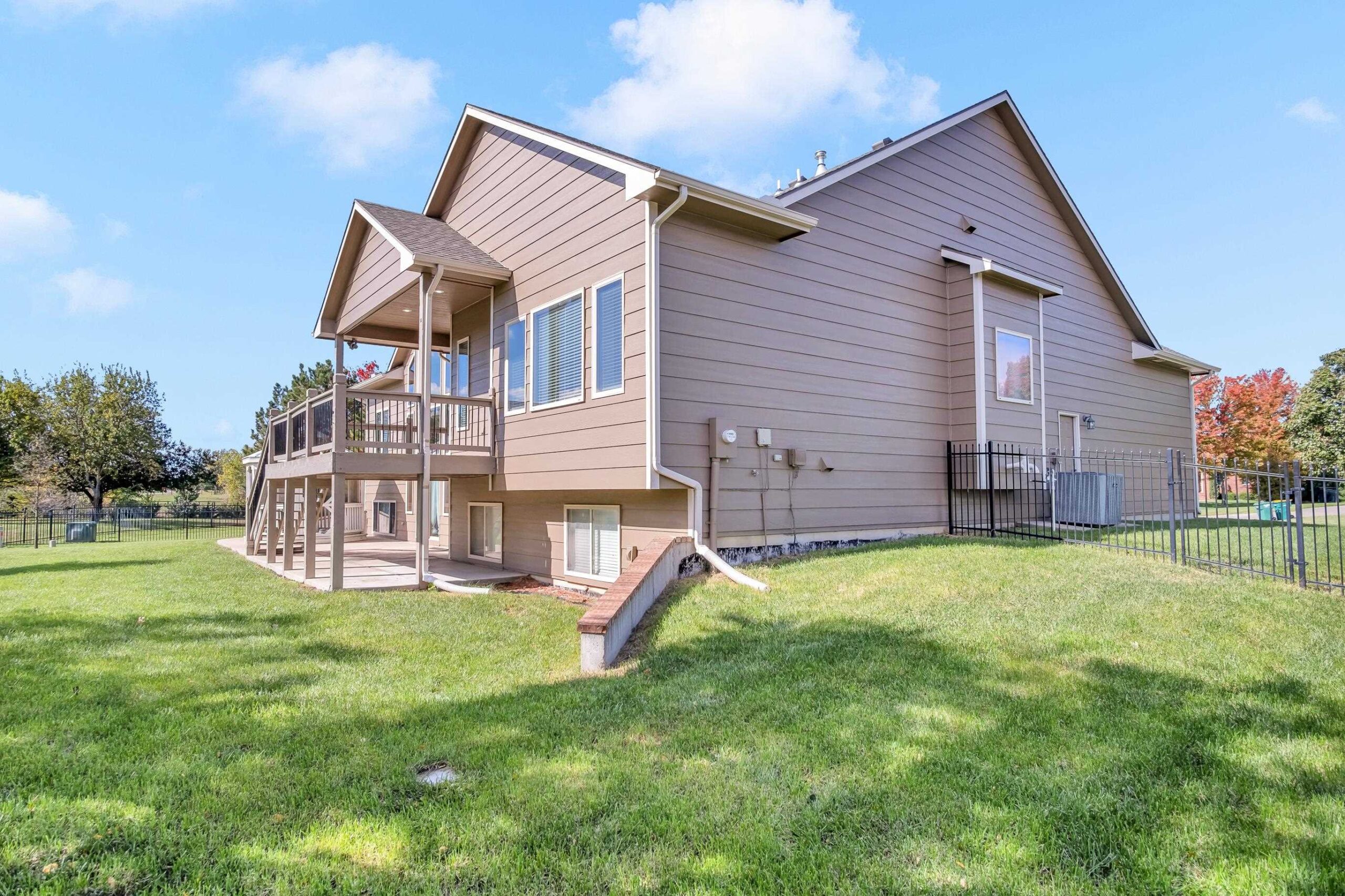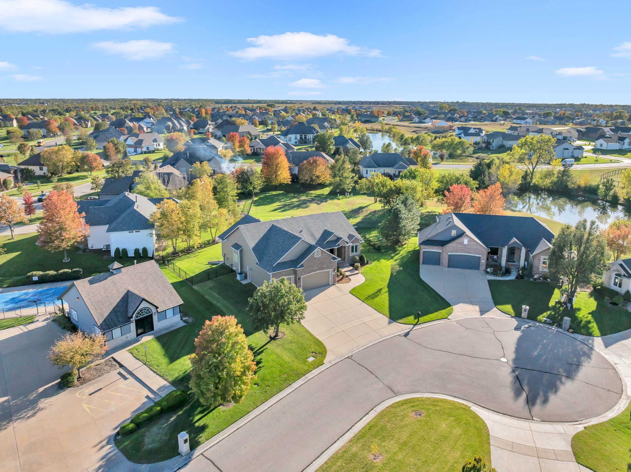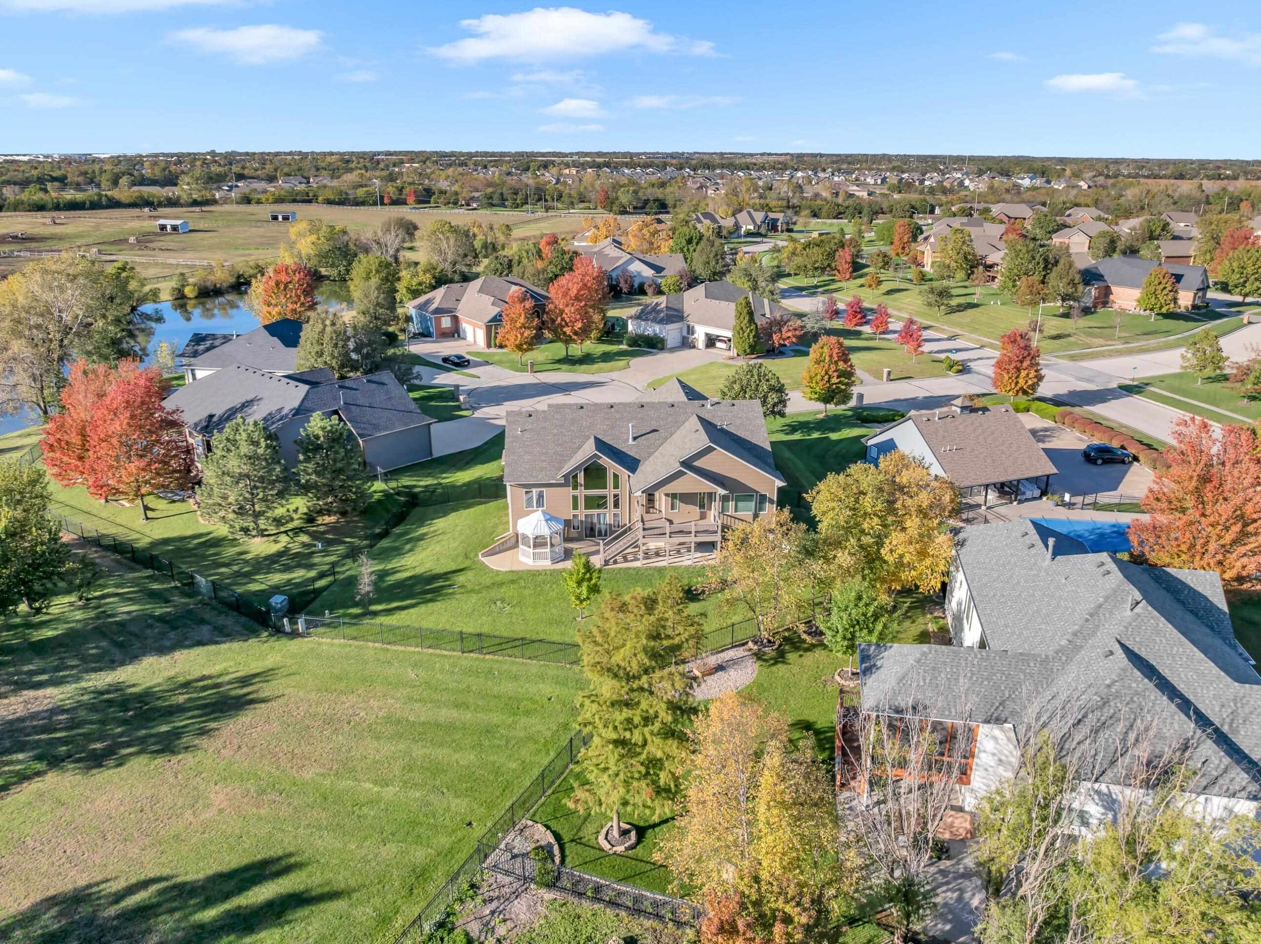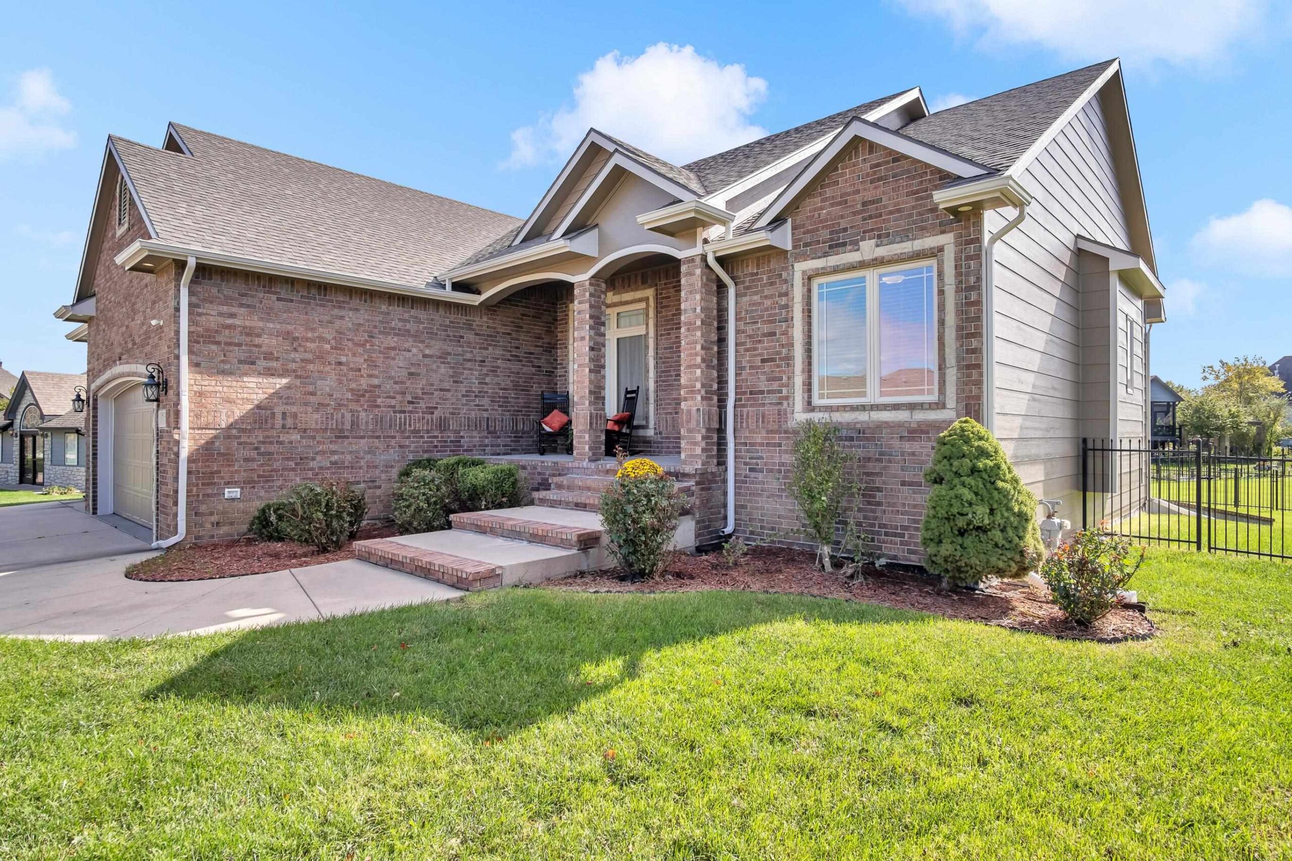 - Description: Refined Comfort in Equestrian Estates! Located in a quiet cul-de-sac near the community pool, this beautifully updated home offers privacy, convenience, and classic curb appeal. With many recent improvements already completed, the next owner can enjoy peace of mind and years of low maintenance living to come. Step inside to soaring 15-foot vaulted ceilings and expansive windows that fill the open-concept living and dining areas with natural light. A double-sided gas fireplace adds warmth and efficiency, while the kitchen features hardwood floors, granite countertops, stainless steel appliances, a center island with seating, full pantry, and custom lighting. The split floorplan includes a spacious primary suite with tray ceilings, a luxurious en-suite bath with jetted tub, walk-in shower, dual vanities, and a generous walk-in closet—conveniently located near the main floor laundry. The finished basement offers a mid-level walk-out patio, large family room with wet bar, two additional bedrooms, full bath, ample storage, a concrete storm shelter, and a dedicated THEATER ROOM complete with equipment for an immersive viewing experience. Outdoor living is just as inviting with a wood deck overlooking a fully fenced yard and community fishing pond, a charming gazebo, and a thoughtfully landscaped yard with sprinkler system—ideal for entertaining or quiet relaxation. Enjoy the many community amenities and convenient location close to schools, recreation and shopping. Your new home awaits! With comfort, style, and functionality in every detail at a price point unmatched, this rare find will not last! Think of the opportunity here, but don’t think too long! Call your favorite agent today to schedule a tour of your new home! Show all description