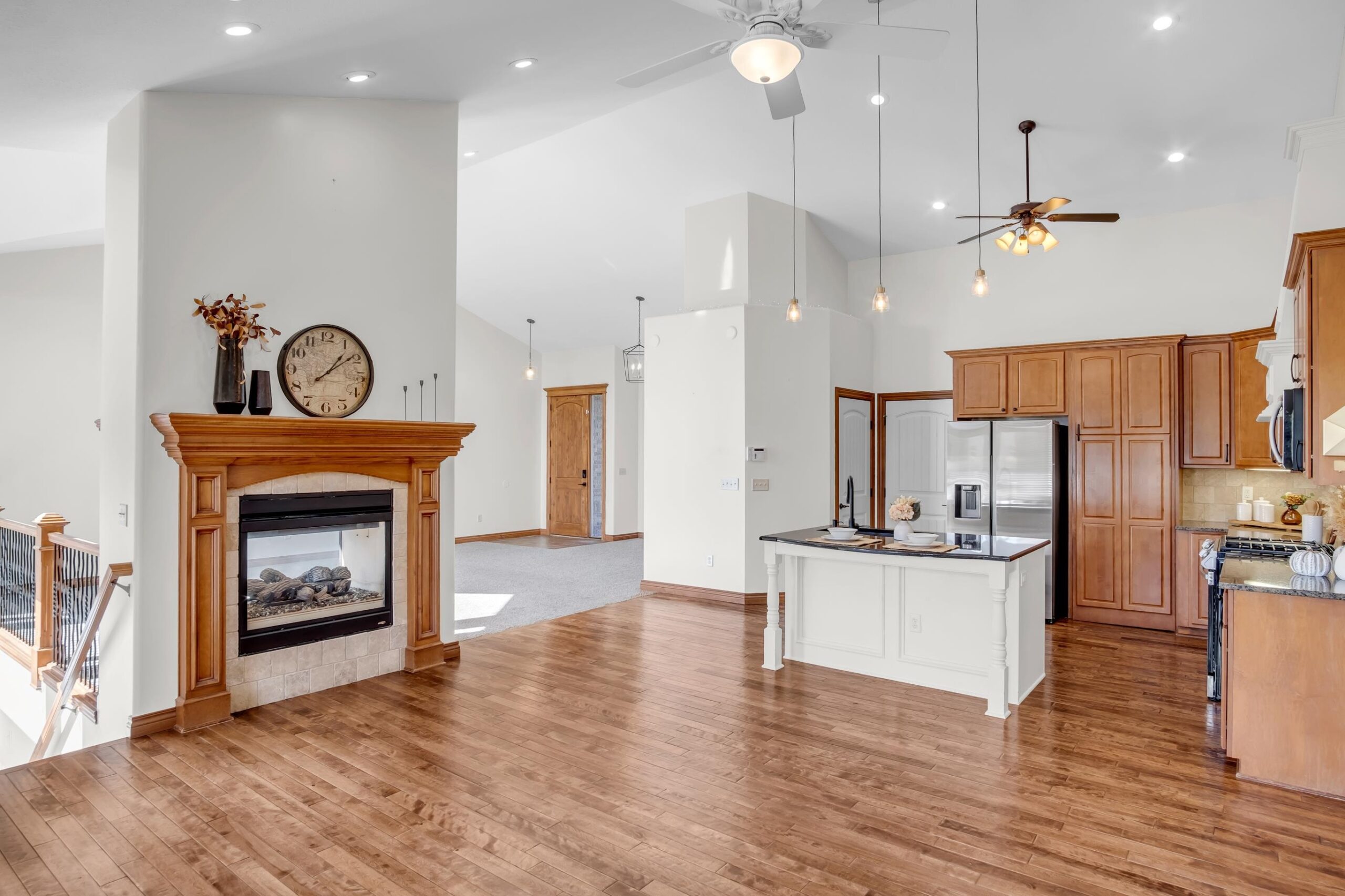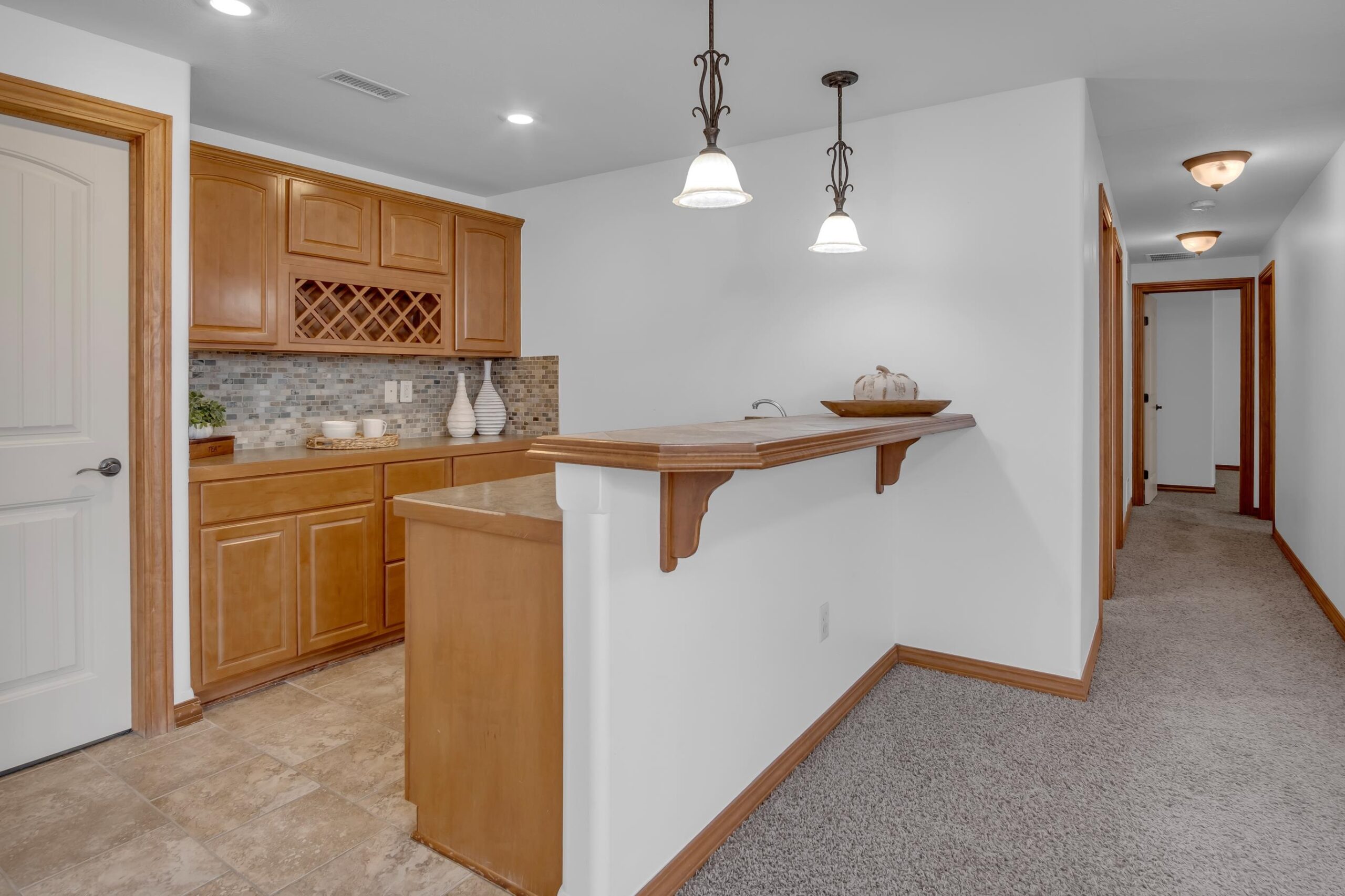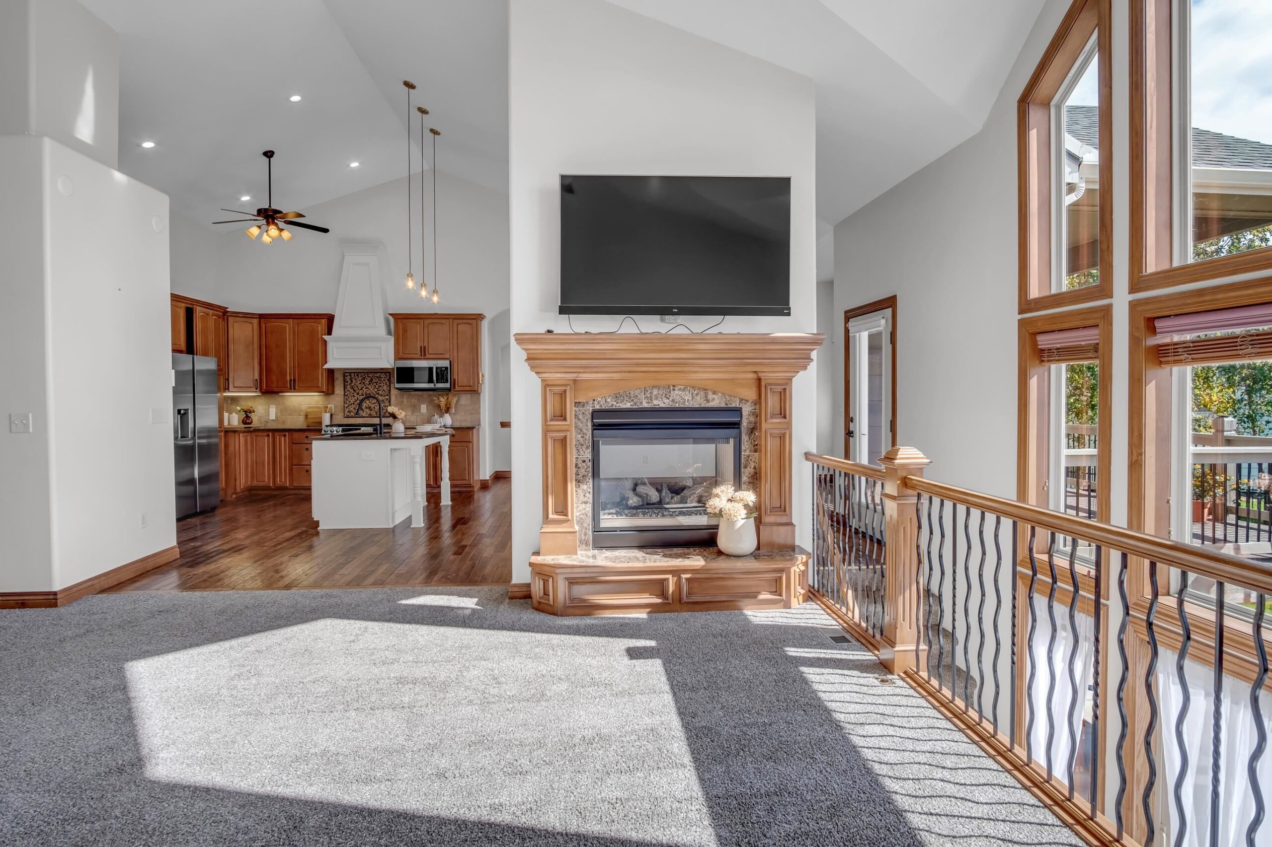 - Description: Refined Comfort in Equestrian Estates! Located in a quiet cul-de-sac near the community pool, this beautifully updated home offers privacy, convenience, and classic curb appeal. With many recent improvements already completed, the next owner can enjoy peace of mind and years of low maintenance living to come. Step inside to soaring 15-foot vaulted ceilings and expansive windows that fill the open-concept living and dining areas with natural light. A double-sided gas fireplace adds warmth and efficiency, while the kitchen features hardwood floors, granite countertops, stainless steel appliances, a center island with seating, full pantry, and custom lighting. The split floorplan includes a spacious primary suite with tray ceilings, a luxurious en-suite bath with jetted tub, walk-in shower, dual vanities, and a generous walk-in closet—conveniently located near the main floor laundry. The finished basement offers a mid-level walk-out patio, large family room with wet bar, two additional bedrooms, full bath, ample storage, a concrete storm shelter, and a dedicated THEATER ROOM complete with equipment for an immersive viewing experience. Outdoor living is just as inviting with a wood deck overlooking a fully fenced yard and community fishing pond, a charming gazebo, and a thoughtfully landscaped yard with sprinkler system—ideal for entertaining or quiet relaxation. Enjoy the many community amenities and convenient location close to schools, recreation and shopping. Your new home awaits! With comfort, style, and functionality in every detail at a price point unmatched, this rare find will not last! Think of the opportunity here, but don’t think too long! Call your favorite agent today to schedule a tour of your new home! Show all description