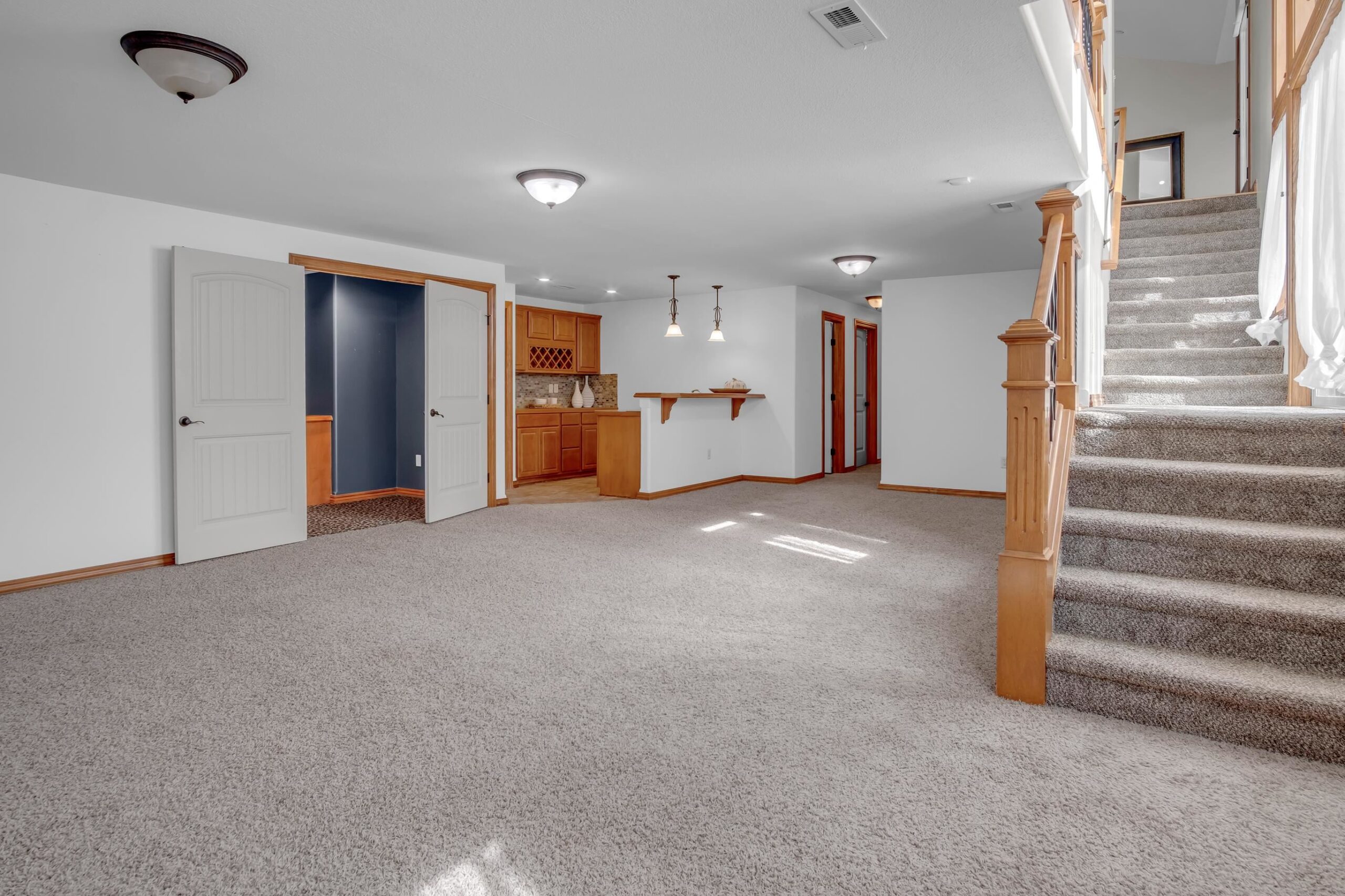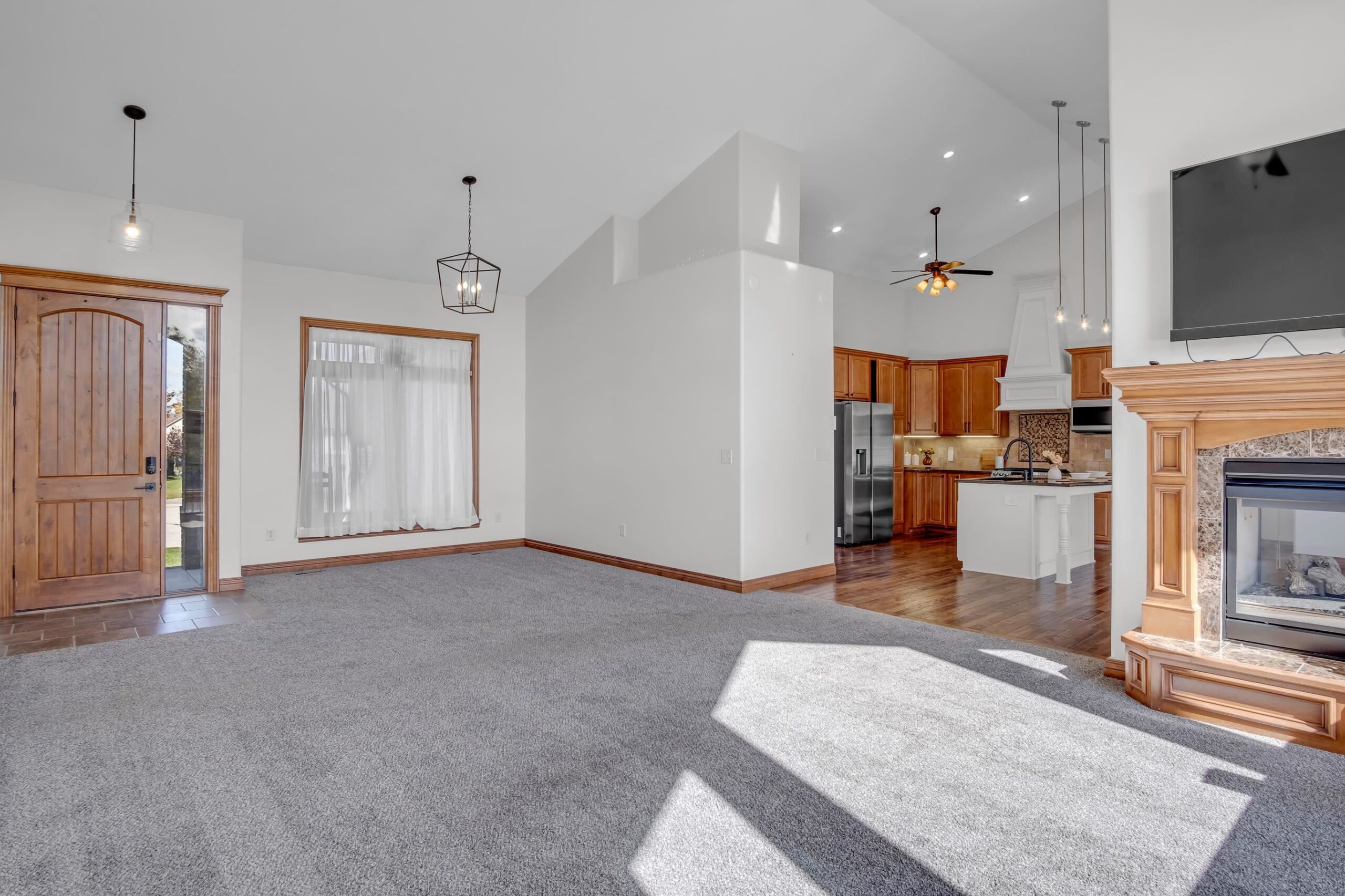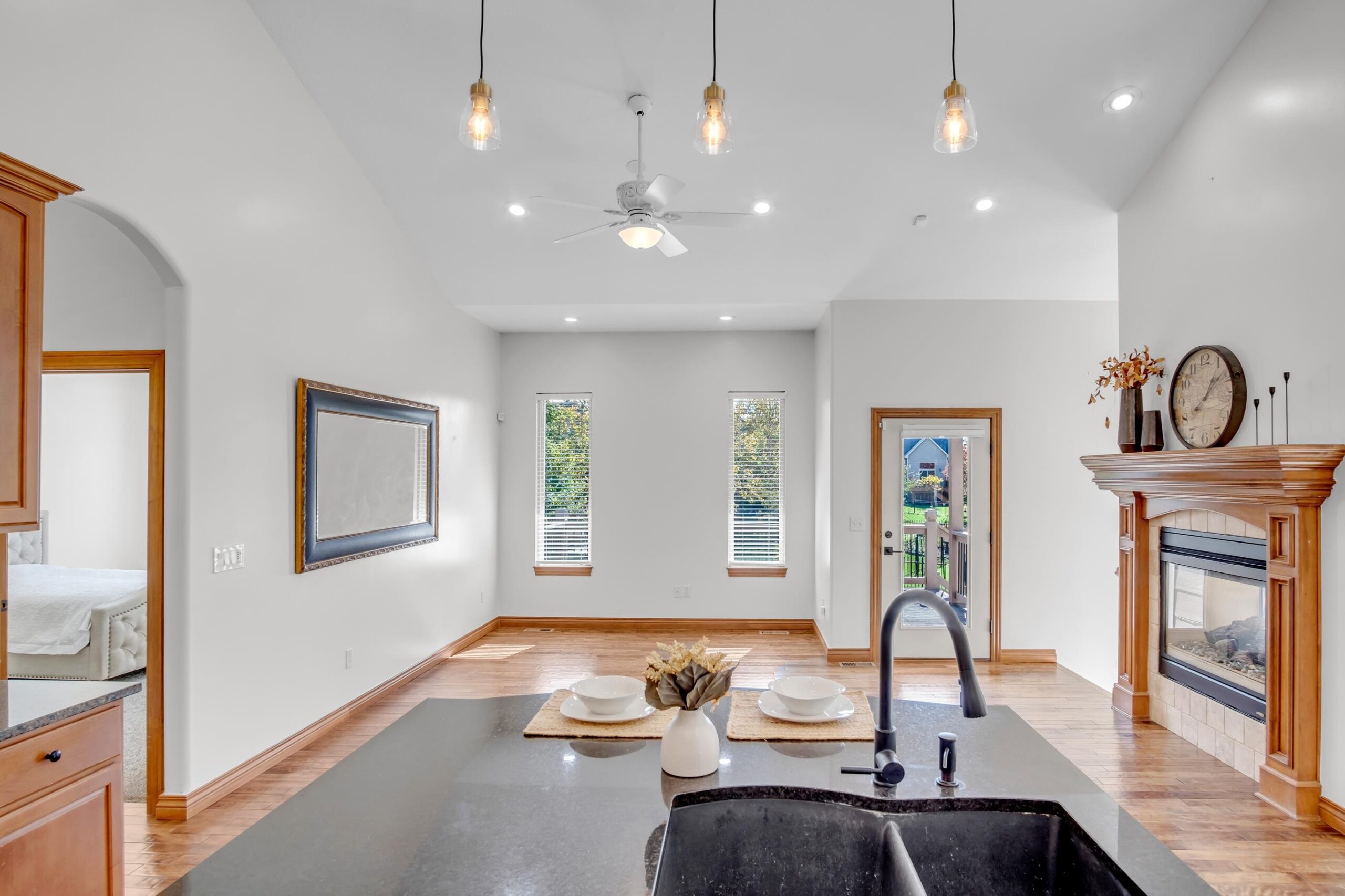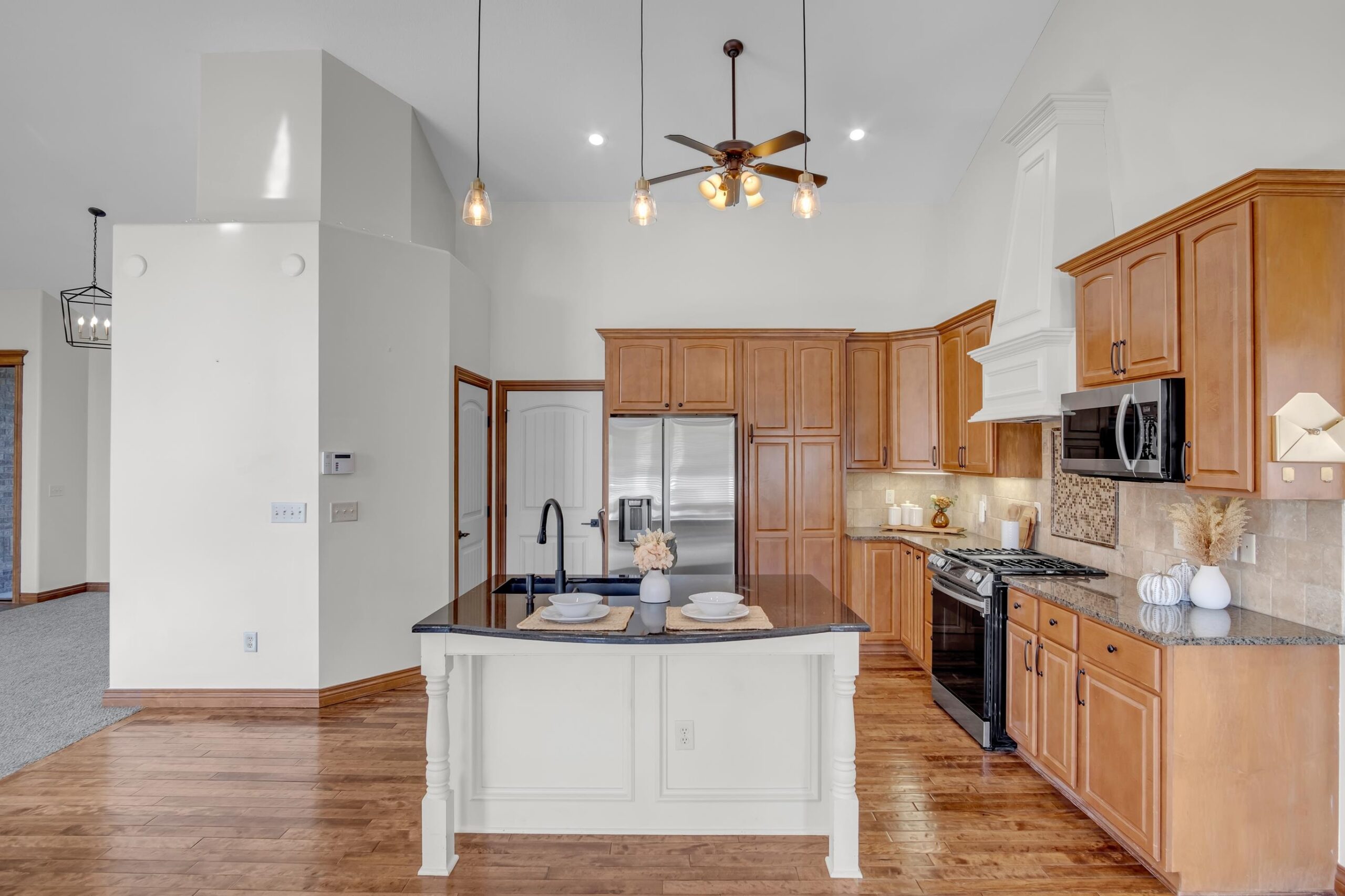 - Description: Refined Comfort in Equestrian Estates! Located in a quiet cul-de-sac near the community pool, this beautifully updated home offers privacy, convenience, and classic curb appeal. With many recent improvements already completed, the next owner can enjoy peace of mind and years of low maintenance living to come. Step inside to soaring 15-foot vaulted ceilings and expansive windows that fill the open-concept living and dining areas with natural light. A double-sided gas fireplace adds warmth and efficiency, while the kitchen features hardwood floors, granite countertops, stainless steel appliances, a center island with seating, full pantry, and custom lighting. The split floorplan includes a spacious primary suite with tray ceilings, a luxurious en-suite bath with jetted tub, walk-in shower, dual vanities, and a generous walk-in closet—conveniently located near the main floor laundry. The finished basement offers a mid-level walk-out patio, large family room with wet bar, two additional bedrooms, full bath, ample storage, a concrete storm shelter, and a dedicated THEATER ROOM complete with equipment for an immersive viewing experience. Outdoor living is just as inviting with a wood deck overlooking a fully fenced yard and community fishing pond, a charming gazebo, and a thoughtfully landscaped yard with sprinkler system—ideal for entertaining or quiet relaxation. Enjoy the many community amenities and convenient location close to schools, recreation and shopping. Your new home awaits! With comfort, style, and functionality in every detail at a price point unmatched, this rare find will not last! Think of the opportunity here, but don’t think too long! Call your favorite agent today to schedule a tour of your new home! Show all description