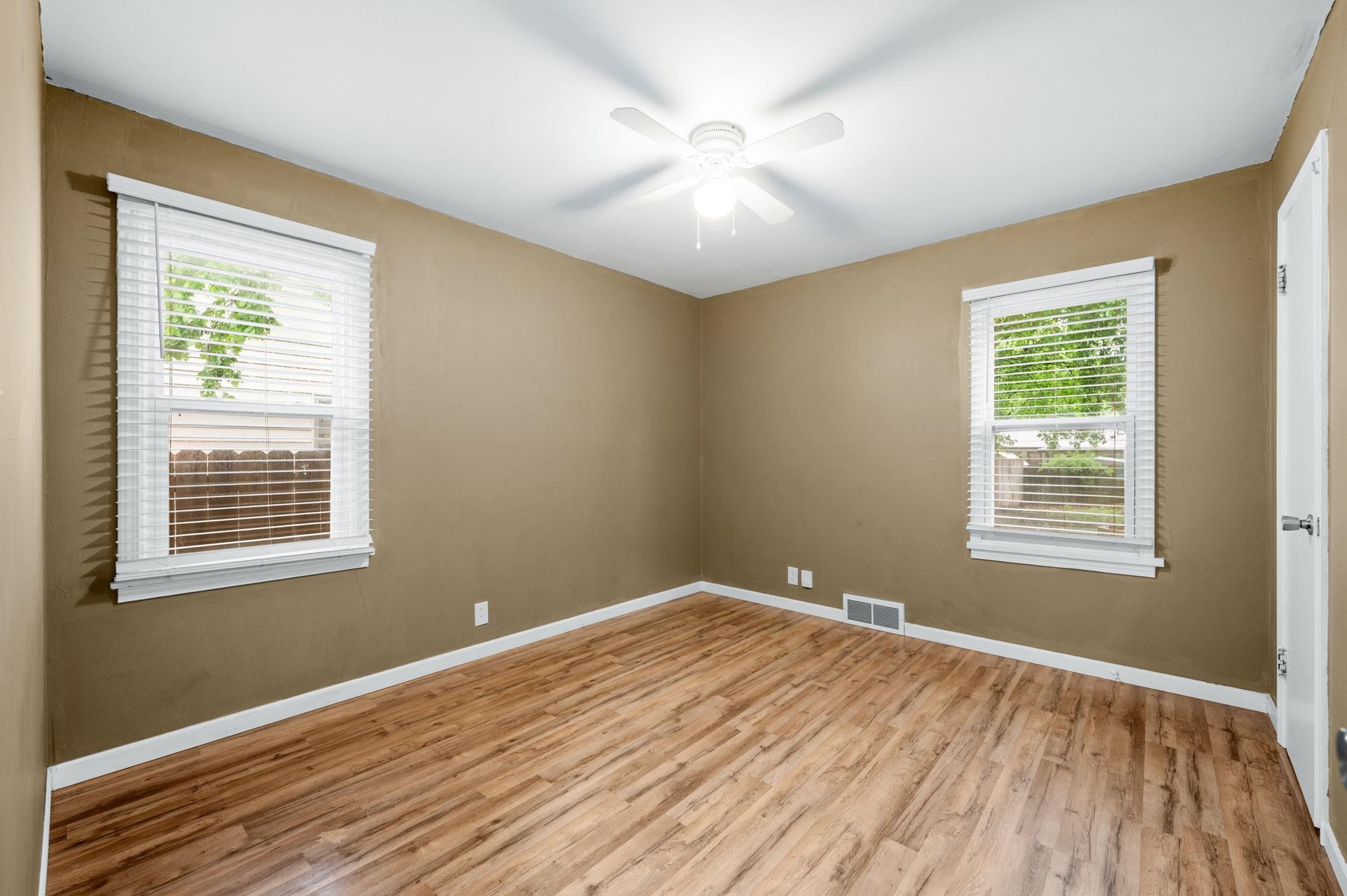 - Description: Charming & Updated – Move-In Ready! Welcome to your new home, where comfort, convenience, and style come together! This beautifully updated property features neutral paint, newer wood laminate flooring, and replacement windows that fill the space with natural light. The kitchen is equipped with white cabinetry, laminate countertops, and all appliances included—perfect for everyday living and entertaining. You'll love the spacious dining area and the large covered front porch, ideal for relaxing mornings or evenings. Step outside to a fully fenced backyard with two patios, a storage shed, and a built-in fire pit—just right for cozy gatherings. The home also features a fully renovated bathroom, a 6-year-old roof, and major systems updated in 2019 (HVAC & water heater) for peace of mind. Conveniently located near the hospital, this property is a great fit for traveling nurses, first-time home-buyers, or as a smart rental investment. Don’t miss this opportunity—move right in and make it yours today! Show all description