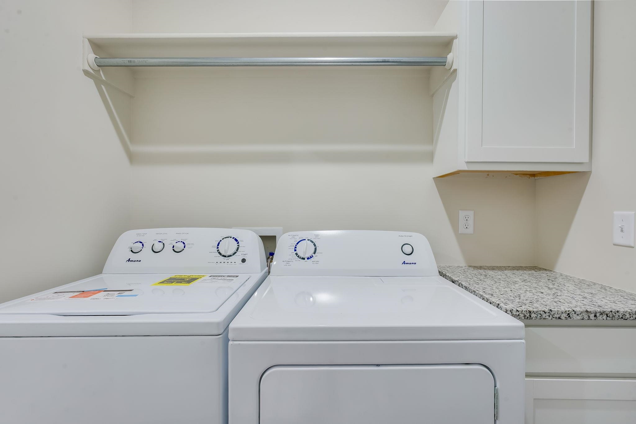 - Appliances: Dishwasher, Disposal, Microwave, Refrigerator, Range, Washer, Dryer