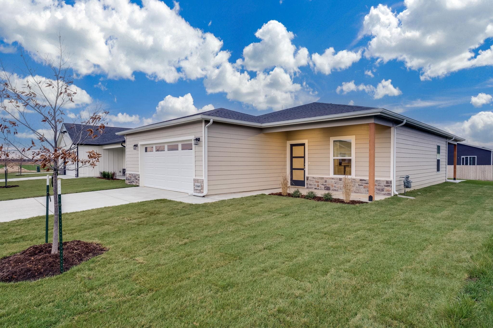 - Description: **Seller is offering $3,000 towards closing costs on all homes under contract by 3/31/2026** Welcome to The Rushmore by Liberty Communities. Nestled in Goddard’s newest development, Bluestem. This charming 3 bedroom, 2 bathroom patio home offers an oversized 2 car garage with plenty of storage and a steel storm shelter. The Rushmore features a spacious zero entry covered porch and back patio. Inside you'll find 1,388 Sq Ft of well planned living space with granite countertops, white soft-close cabinets and all new stainless steel appliances. Liberty goes the extra mile including a refrigerator, stove, microwave, dishwasher, LVP in main living areas and white faux wood blinds throughout all Bluestem New Builds. Exterior amenities include sod, sprinkler, landscaping and irrigation well. This home is currently under construction.**Preview this complete floor plan at 11669 W Scarlett Ct Maize, Ks 67101 this weekend 1-5pm** Exterior Paint will be Pewter Green With Alabaster trim and white gutters to match. All pictures are of previous built. All information is deemed reliable but not guaranteed. Show all description