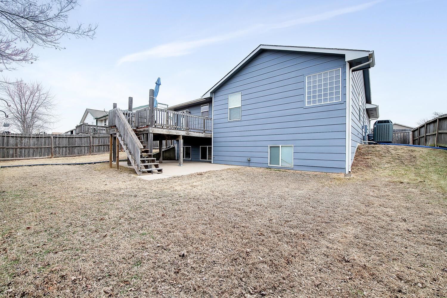 - Description: Have you been looking for a move-in ready home, within easy distance to lots of amenities and in Mulvane? Come on down to Country Walk Ln! There are so many great things packed into this home. Located right behind Mulvane High School, you have easy access to Rock Road. Pulling up to the property, you'll see the attached two car garage and walkway to the front door lined with shrubs with a great front patio that can accommodate a sitting area. The front entrance leads directly into the living area with a nice open window to the front. Off the living area is the kitchen and dining combo that leads to the large back deck that can house a grill and is great for entertaining. The yard is fully fenced and you have no neighbors behind you. Down the hallway on the main floor, you’ll find a full bathroom, a bedroom with adorable white shiplap, and the primary with an attached two sink bathroom with tub and shower and walk in closet. Laundry is on the main floor as you head in or out of the garage. Downstairs is a large living area, with a storage closet. A third bedroom is downstairs, as well as an unfinished bathroom space that is plumbed and ready to be finished. The utility room provides more great space for storage. Don’t miss this gem! Show all description