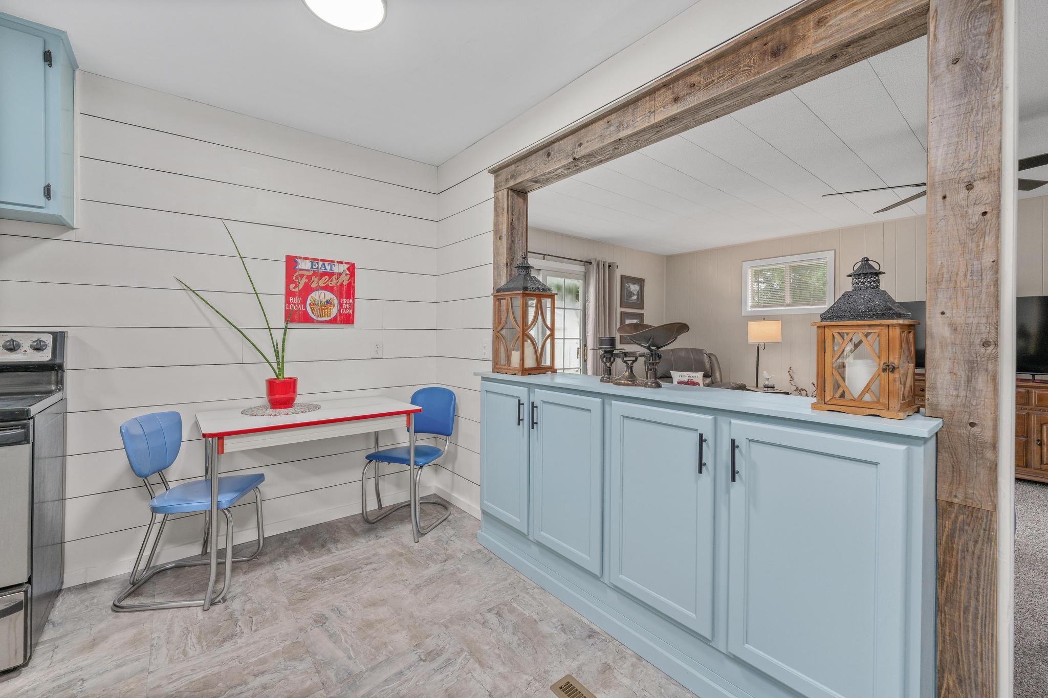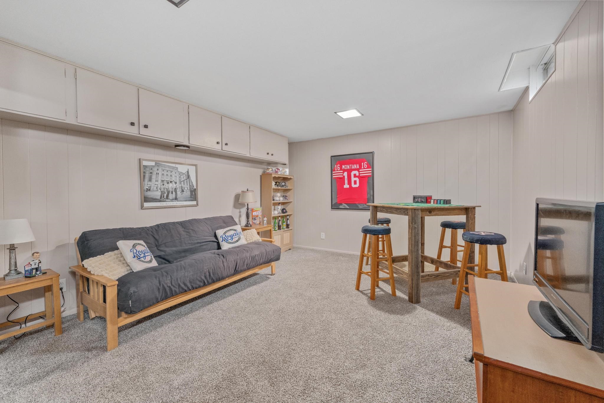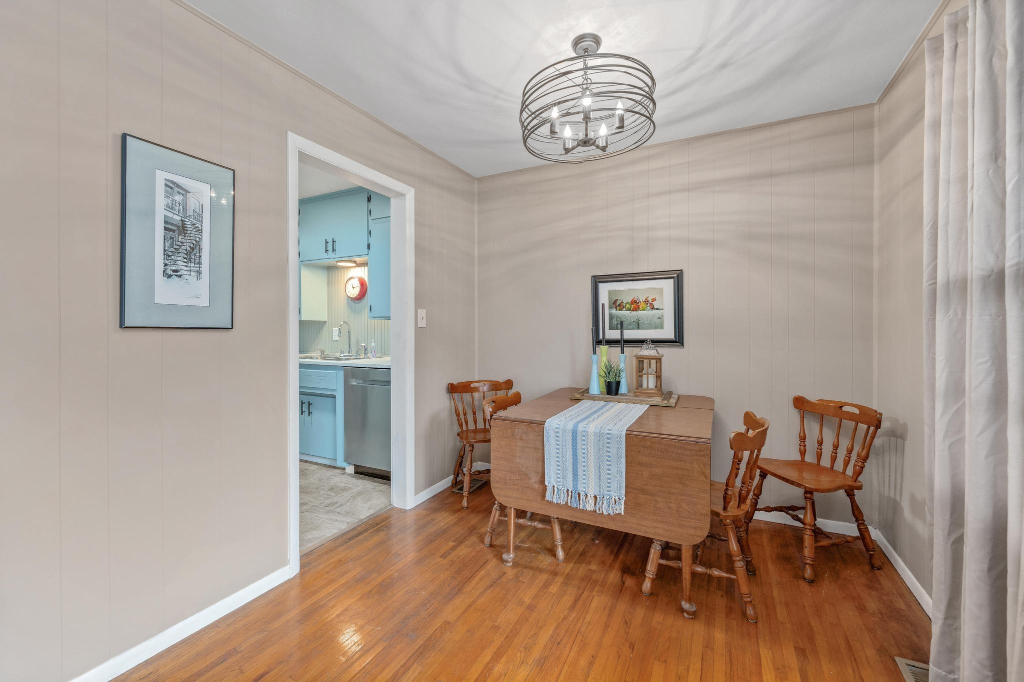 - Description: Come take a look at this charming renovated ranch that is move-in ready! Gorgeous original hardwood flooring has been restored throughout the main living area and bedrooms. The kitchen offers an extra area for a breakfast nook, modern color tones, and lots of extra cabinets. All appliances including the washer and dryer will all stay with the home! The open floor plan in the back family room is perfect for a growing family as it adds extra space. Don't forget about the bonus rec room in the basement—ideal for a playroom, home gym, office, or game night central! A brand new roof and guttering were just installed and the curb appeal on this home is spectacular! Raised flower beds and a covered front porch to enjoy the fall weather. The backyard has a concrete patio and also additional storage shed along with a chain link fenced in yard. This adorable ranch combines classic style with modern comfort—perfect for first-time buyers, downsizers, or anyone looking for a cozy, updated space in a welcoming neighborhood. Show all description