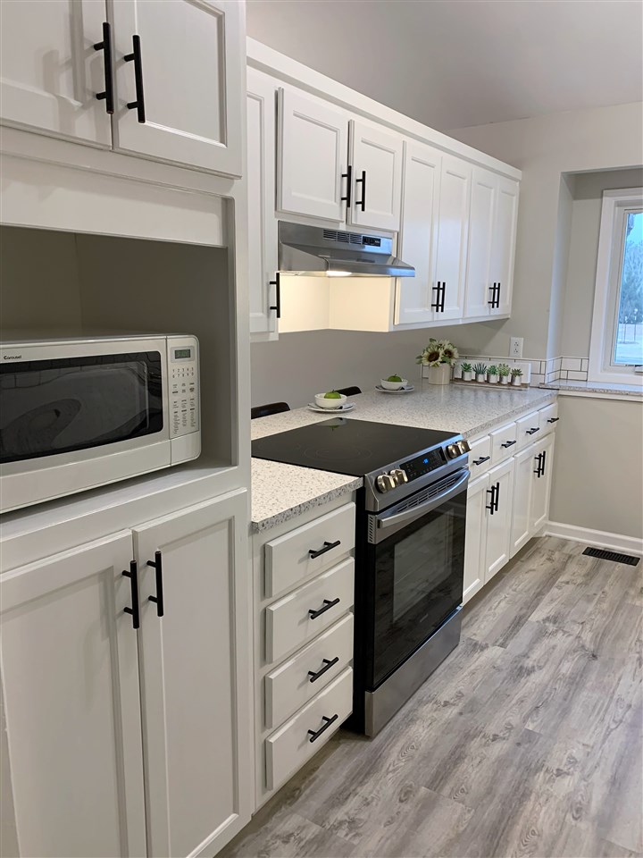 - Description: Bright, clean and move in ready, this four bedroom three bath home is ready for its new owners. Recently painted and new flooring has been installed throughout the home. The windows have been replaced with Anderson windows and all the siding replaced within the last six years. There is a wood burning fireplace insert in the living room which can heat the entire house, keeping utility bills to a minimum. Master bedroom on suite has been remodeled with dual vanities, a large walk in shower with two heads and a walk in closet. Hall bath has been updated as well. The basement has been recently finished to provide extra living space including a family room with a daylight patio door, bedroom, bonus room and finished laundry area with a wash sink. There is still a large unfinished room for storage as well. Outside there is a hot tub built into the large deck with it's own privacy fence. There is a unique fire pit next to the large brick patio. This backyard is great for outdoor entertaining and the playhouse in the backyard stays with the house as well. Lawn maintenance is a breeze with a sprinkler system, including sprays for the flower beds. No need to fret over high water bills with a private well for the irrigation system. Show all description