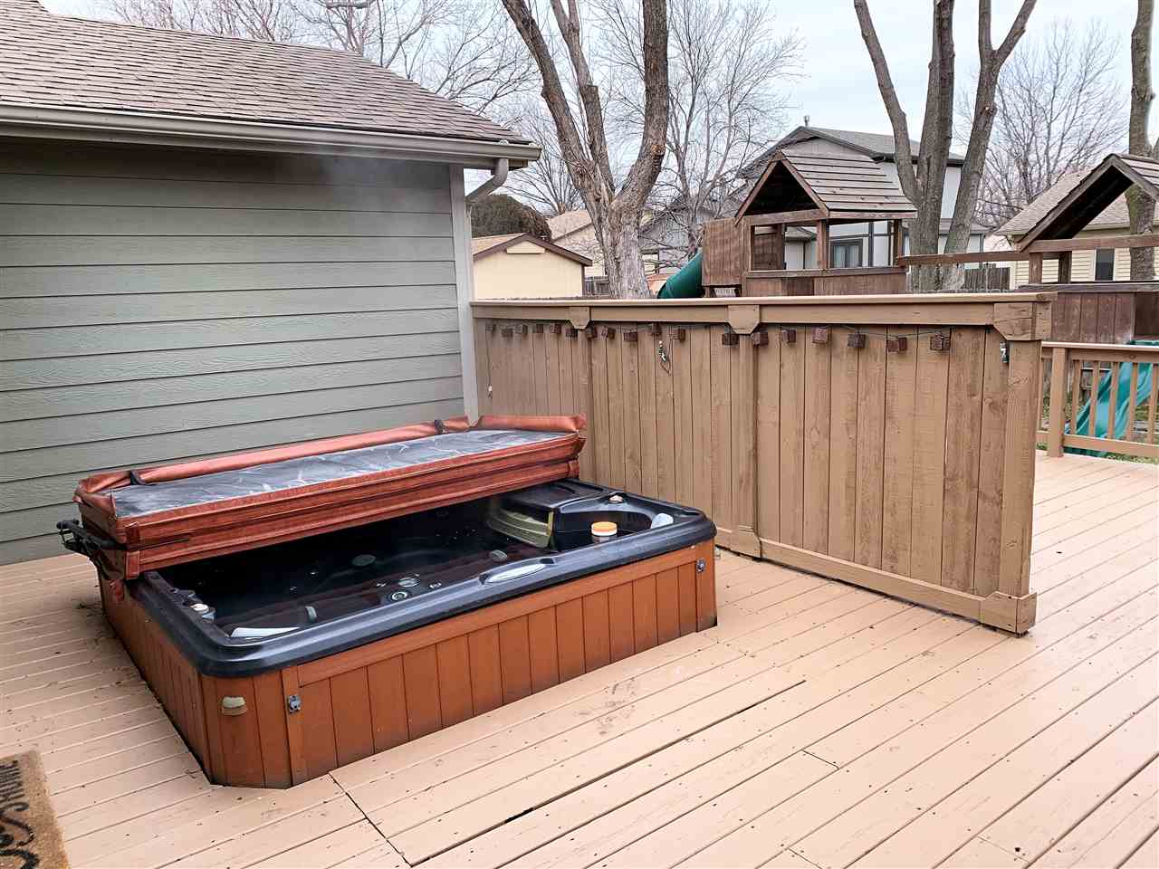 - Exterior Amenities: Deck, Fence-Wood, Guttering - ALL, Hot Tub, Irrigation Well, Sprinkler System, Storm Windows, Frame w/Less than 50% Mas