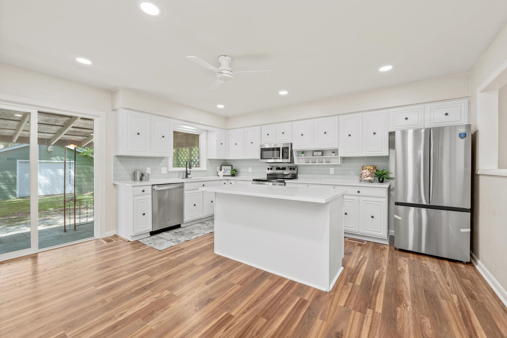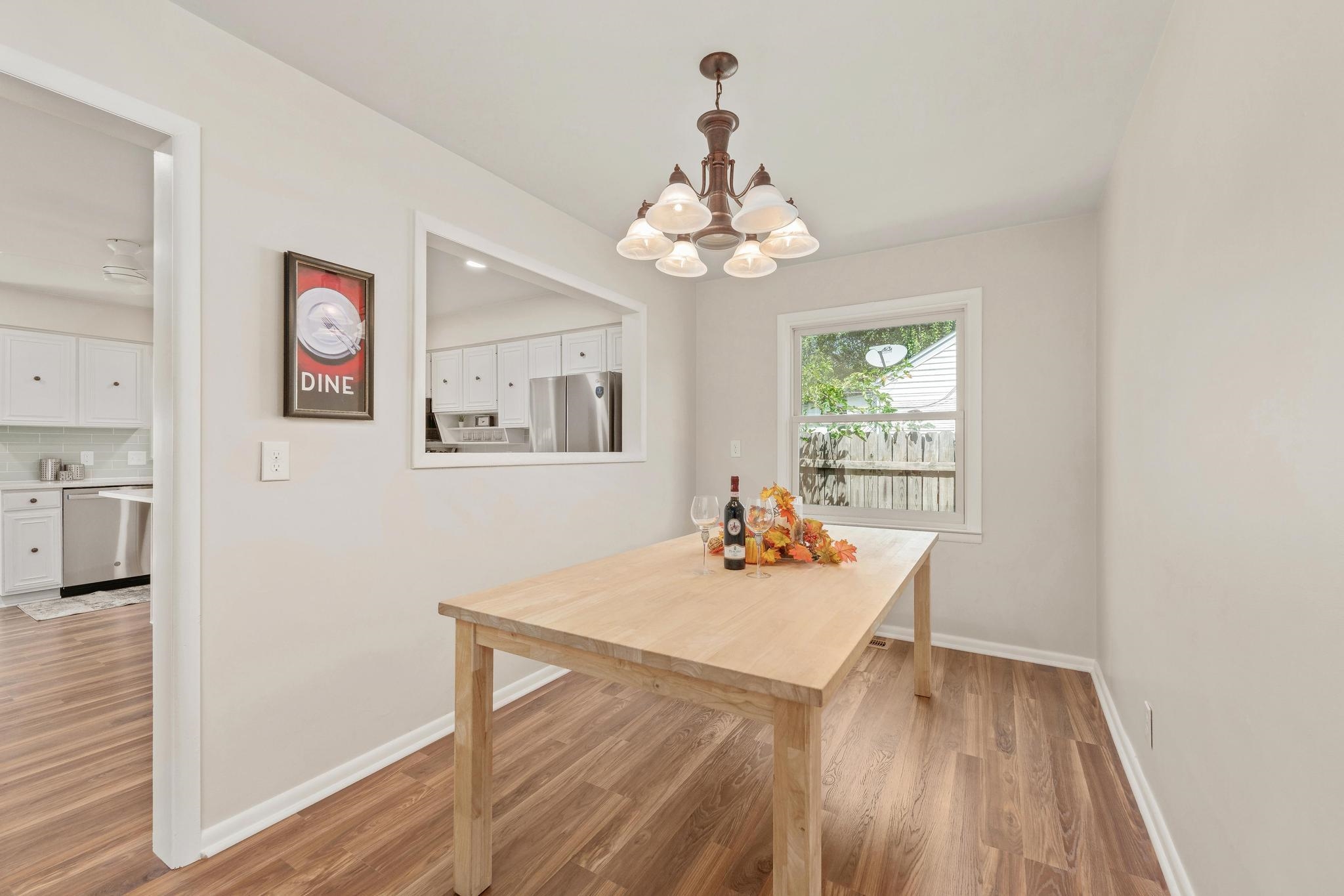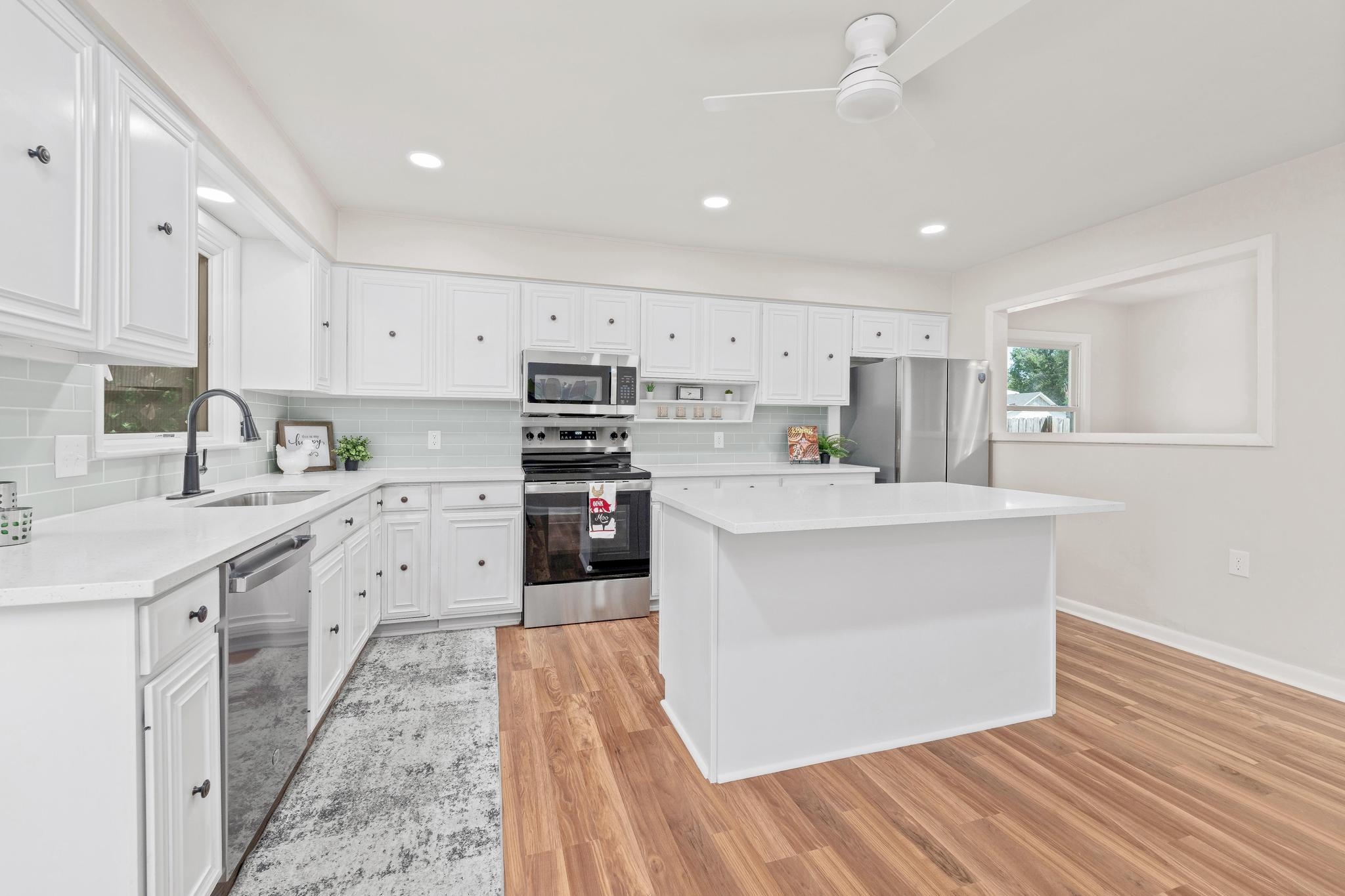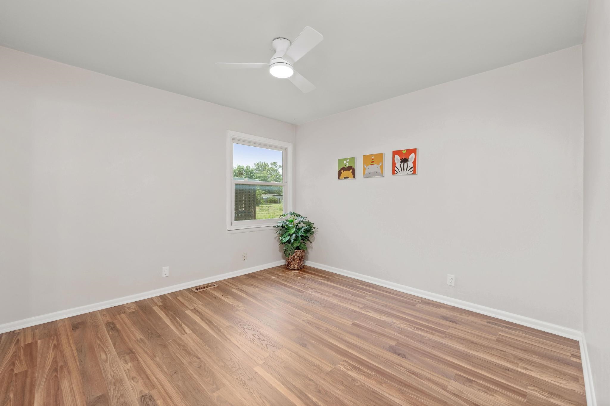 - Description: OFFERS BEING ACCEPTED UNTIL FRIDAY 8/28/25 AT 4PM. Run, don't walk!! This little charmer won't last!! Move in ready one and a half story home greets you with a spacious living room as you enter, all with new paint and flooring. Two bedrooms off the living room are adjoined by a private shared bathroom, something unheard of when this home was built. Formal dining space with a pass through window to the kitchen. Like to entertain? We all know the kitchen tends to be the gathering space....it won't be any different here. Plenty of room around the kitchen island! Large enough to put an informal table in there! Beautiful white cabinetry, quartz countertops and trendy subway tile for backsplash. All new stainless steel appliances including refrigerator! Primary suite is right off the kitchen along with a full bathroom with a walk in shower with new large neutral tile. Upstairs is a great room tucked away from the others perfect for a playroom, bedroom or spare room. Separate new portable a/c unit will remain. The basement is great! Fun exposed trusses painted black along with a oversized rec room that could be the perfect room for movies, game night or just relaxing. Nearby laundry room with additional cabinets and both gas or electric for your dryer!! Covered patio in the back and oversized garage/shop for all the hobbies or extra storage with a gas line in place so could easily be heated. Come check this gem out soon, surely it won't last long!! Show all description