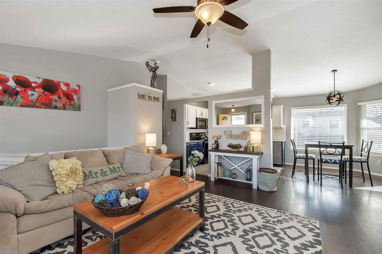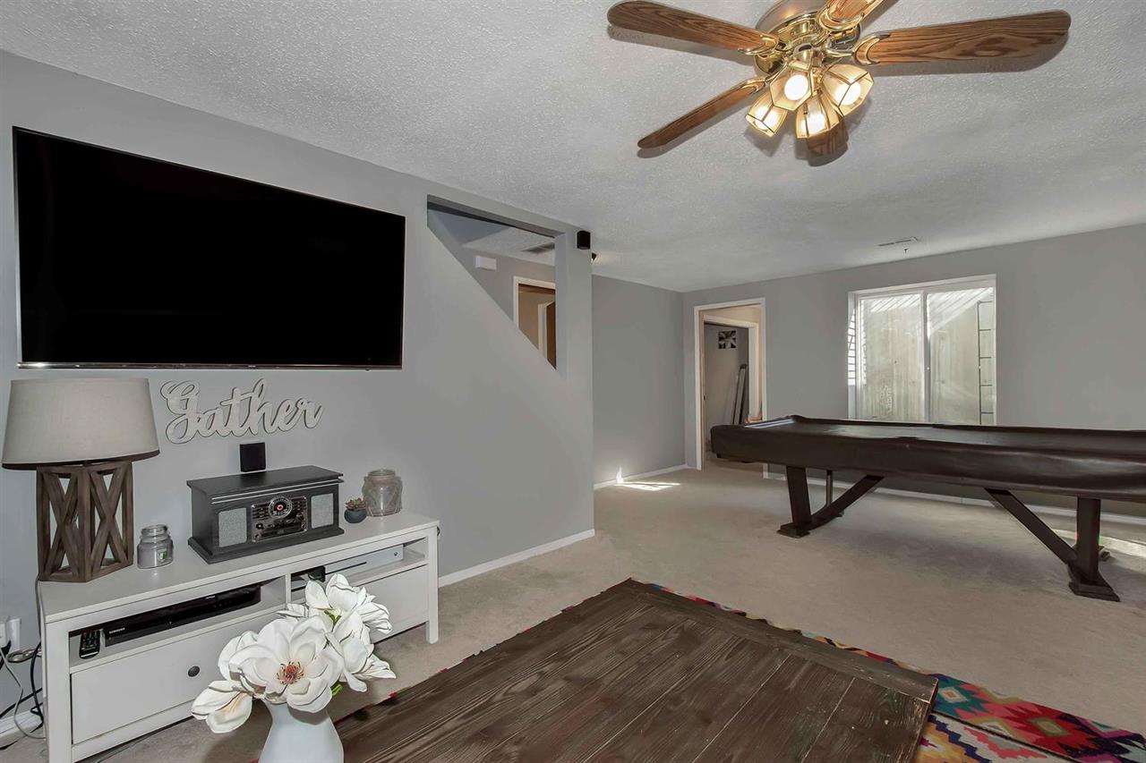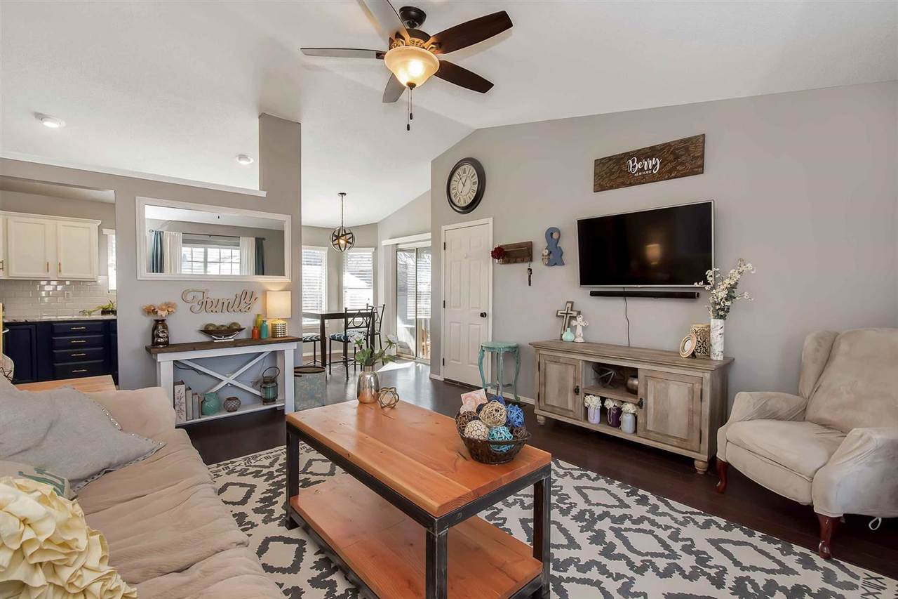 - Description: WELCOME HOME to this beautifully updated, modern home with open living areas, a spacious living room and a private backyard with a covered patio! This home is as move-in ready as you could ask for, with vaulted ceilings and granite counter tops, throughout. The finished basement includes an additional bedroom with an attached full bathroom. The home features a 2 year old roof, new exterior and interior paint, new engineered wood flooring, fully wired surround sound system, updated black stainless appliances, new basement carpet, an in-ground fire pit out back, beautiful landscaping, and a Ring doorbell! Schedule your private showing today - this house won't last long! Show all description