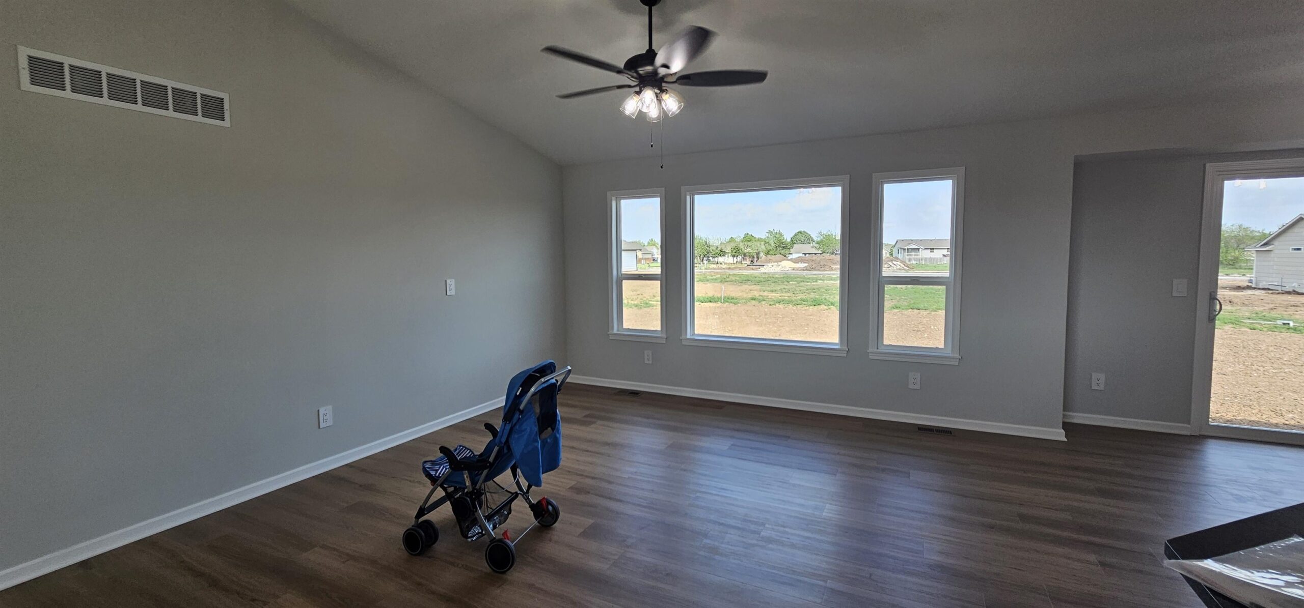 - Description: All new homes are built with high quality and efficiency in mind - James Hardie cement fiber siding & efficient Windsor double pane vinyl windows. The popular "Delainey" plan features an open floorplan. Kitchen is modern with maple cabinets, walk-in pantry and stainless appliances, main floor laundry room, oversized garage and spacious daylight basement Show all description