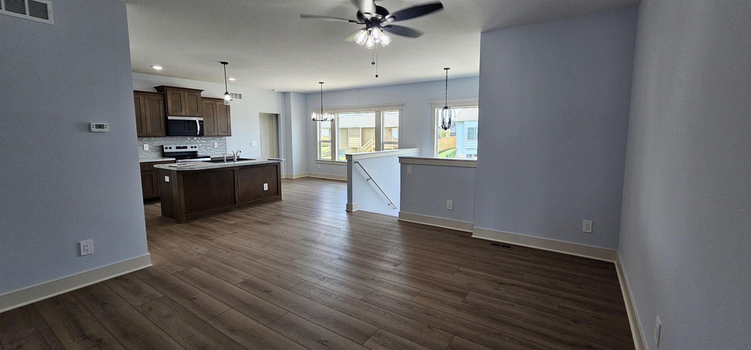 - Description: The "Morgan A mid level walkout" features an open floorplan. Kitchen is modern with maple cabinets, eating bar, large walk-in pantry. Main floor laundry room. Covered patio and 3 car garage. Show all description