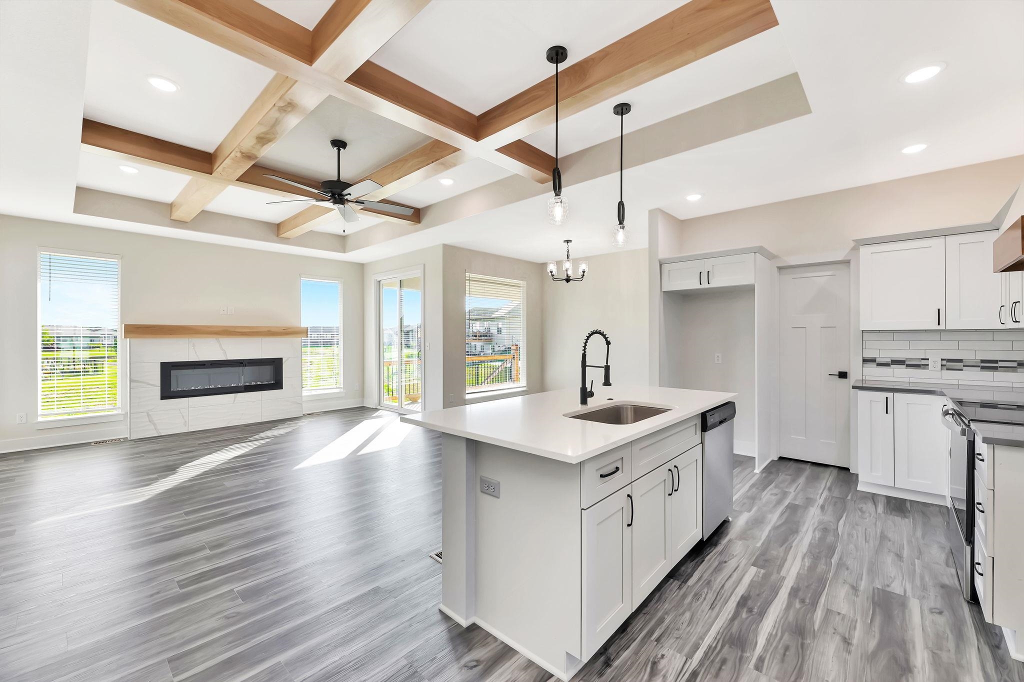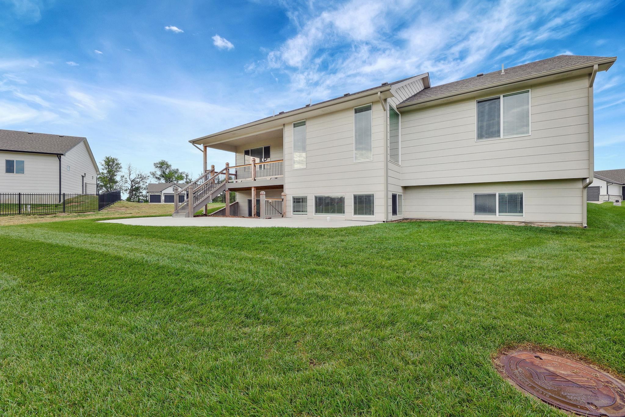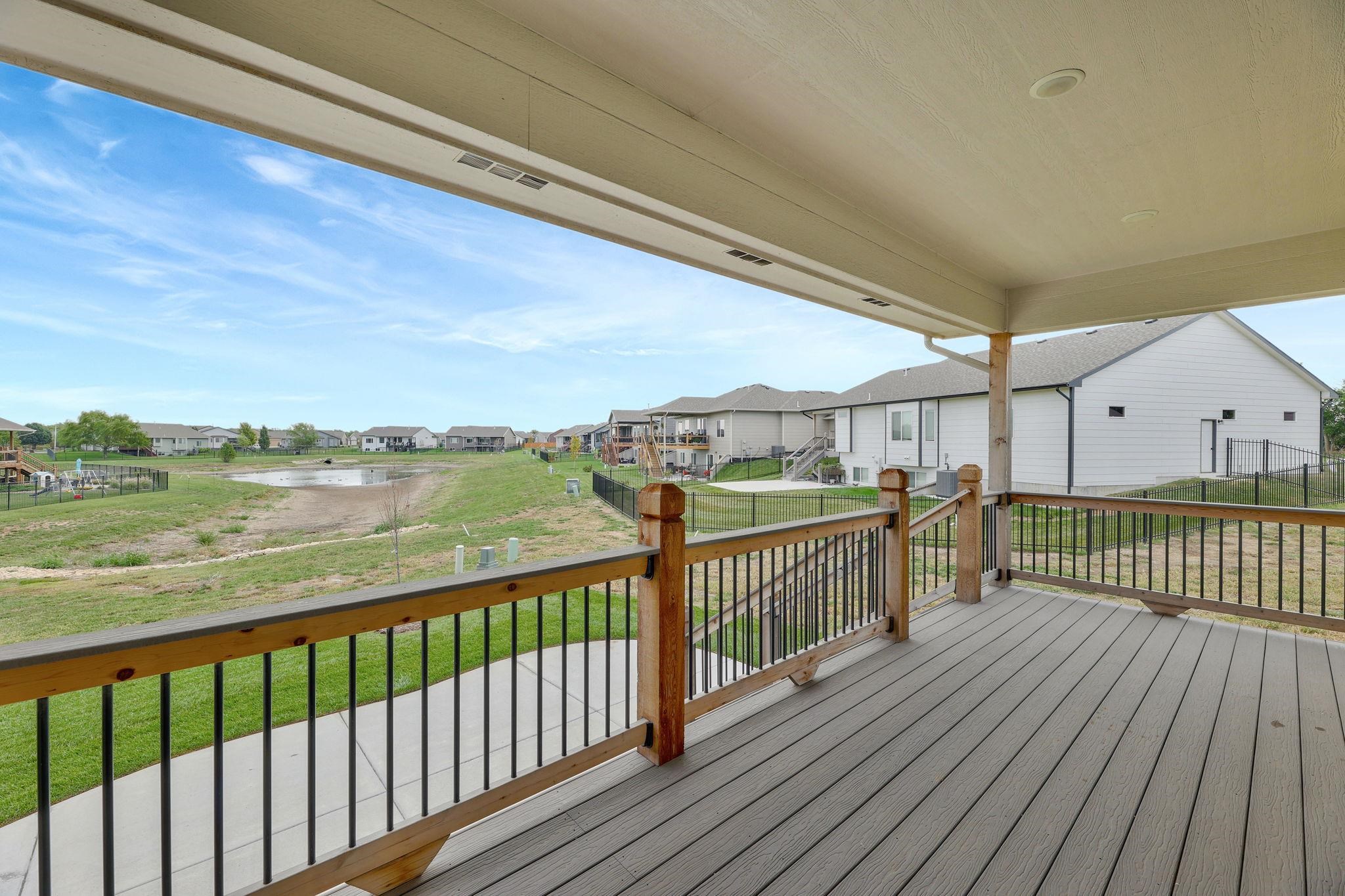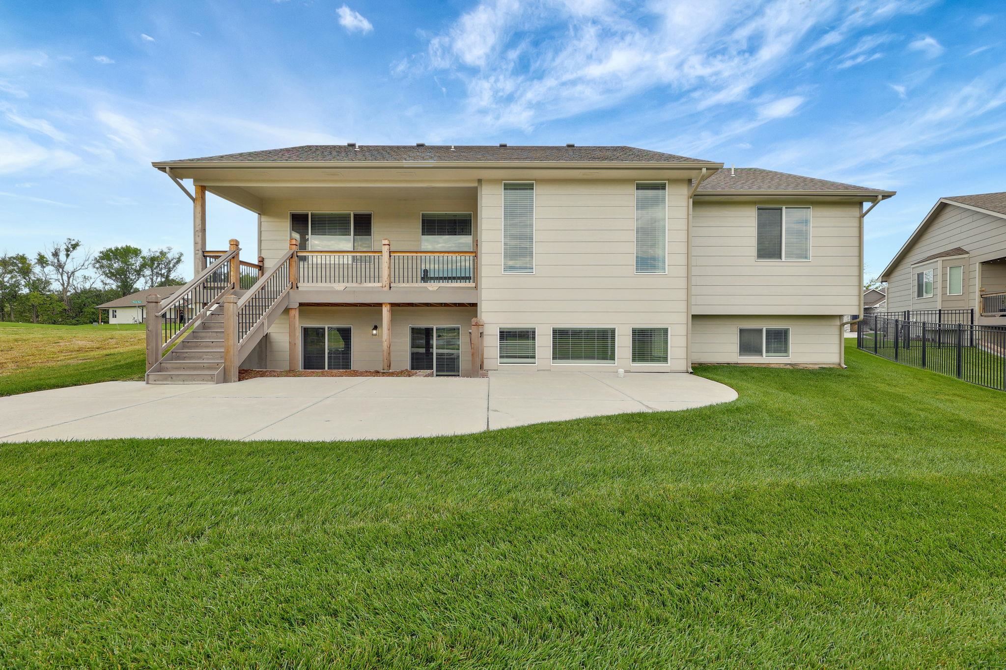 - Description: Welcome to this stunning 5-bedroom, 3-bath home in Whispering Lake Estates! From the moment you step inside, you'll be captivated by the open floor plan designed for both comfort and entertaining. The spacious kitchen is a chef’s dream, featuring a large island, quartz countertops, soft-close cabinets and drawers, and a walk-in pantry. It flows seamlessly into the living room, where a beautifully tiled electric fireplace is framed by windows that flood the space with natural light. The split floor plan provides privacy for the master suite, which boasts a luxurious en-suite bath with dual sinks, a water closet, and a large tiled walk-in shower. A convenient walk-through design connects the master bath to the walk-in closet and directly to the laundry room—an added perk for everyday ease! Two additional main-floor bedrooms feature soaring ceilings and share a stylish hall bath. The extra-wide staircase leads to a spacious walkout basement, complete with a wet bar, ample counter space, room for a full-sized fridge, and a drink storage closet or game closet. There’s plenty of space for both lounging and a pool table. The lower level also includes two more bedrooms, an updated bathroom, and a storage room. Step outside to enjoy the beautifully designed outdoor spaces. The main-level living room opens to a large composite deck, while the basement walkout leads to a generous concrete patio—perfect for grilling and entertaining. Best of all, the backyard offers scenic views of the community lake, and with the HOA owning the adjacent lot to the south, you'll enjoy extra privacy with no direct neighbors on that side. Don’t miss your chance to own this incredible home in Whispering Lake Estates! Show all description