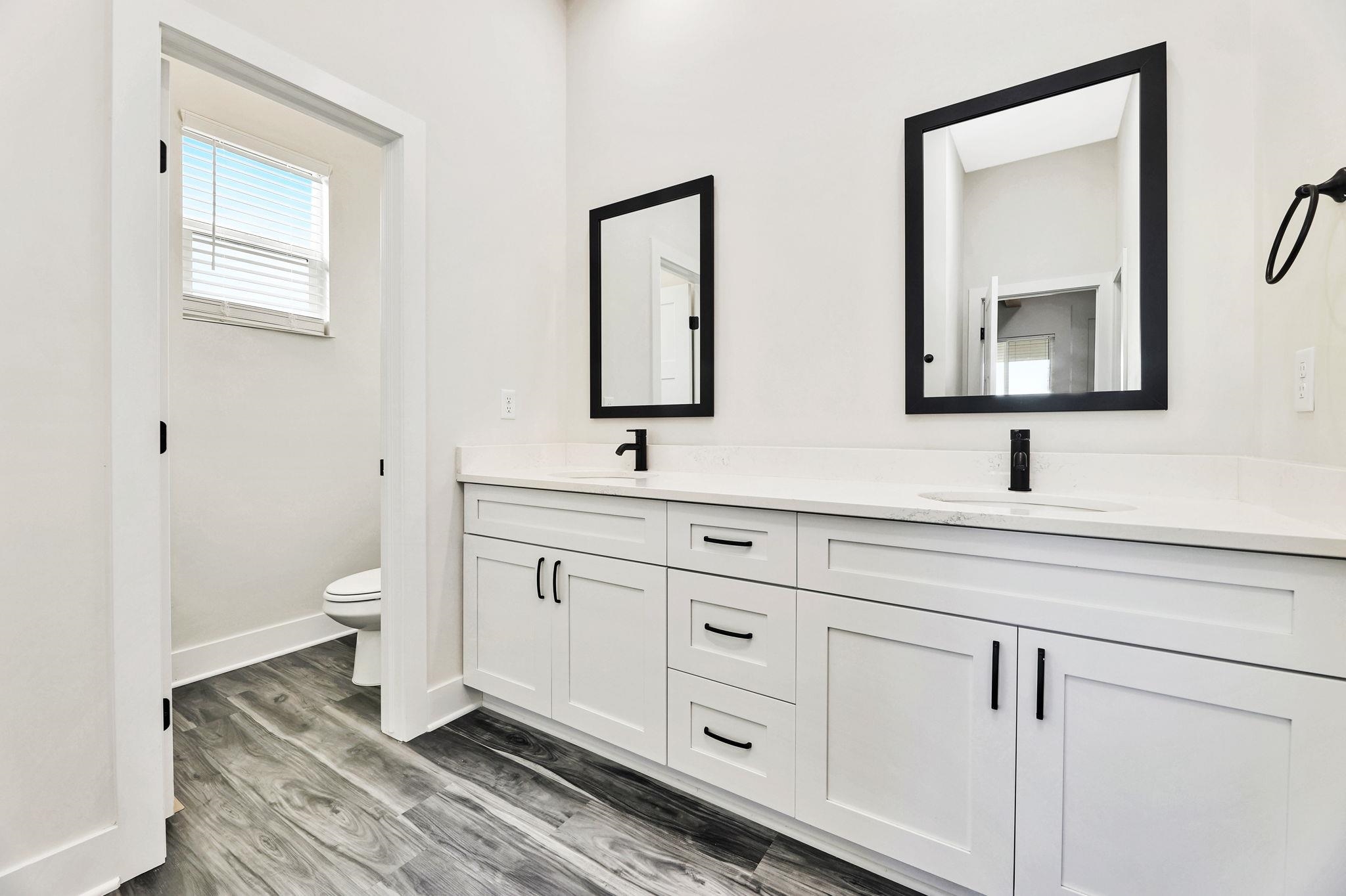 - Master Bedroom: Master Bdrm on Main Level, Split Bedroom Plan, Master Bedroom Bath, Two Sinks, Water Closet