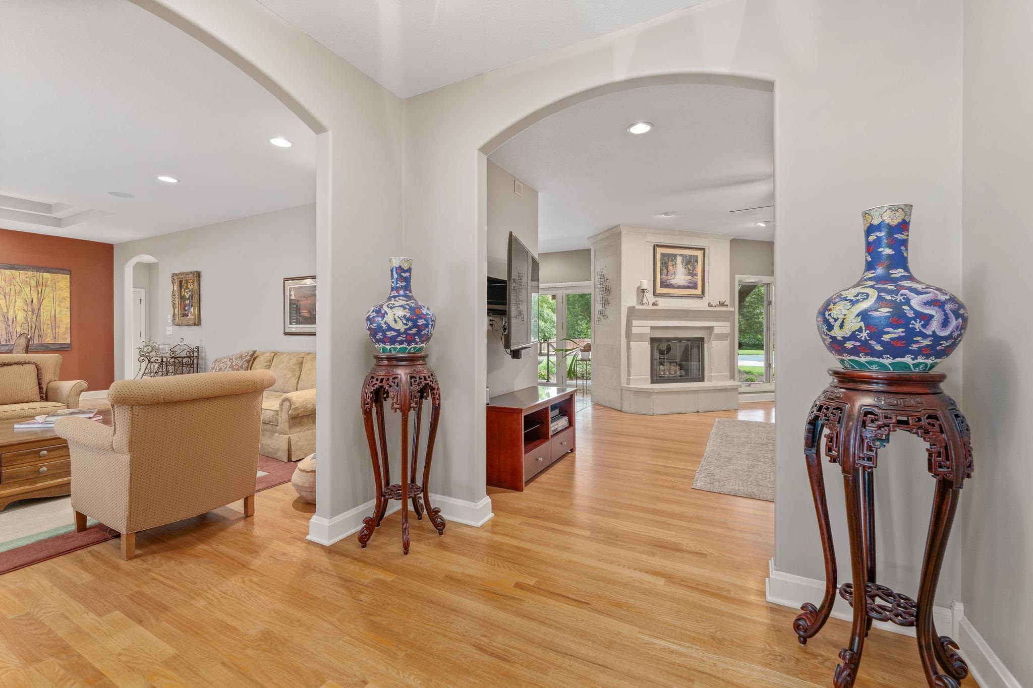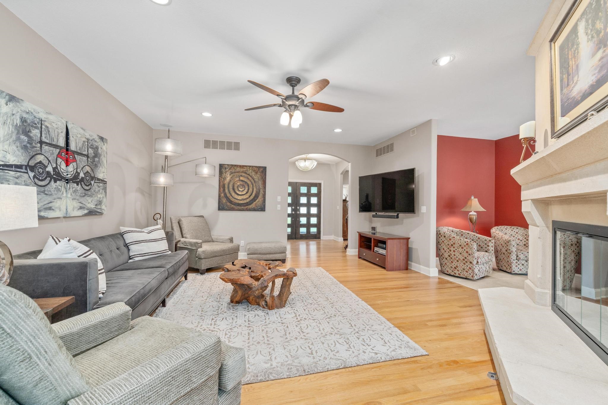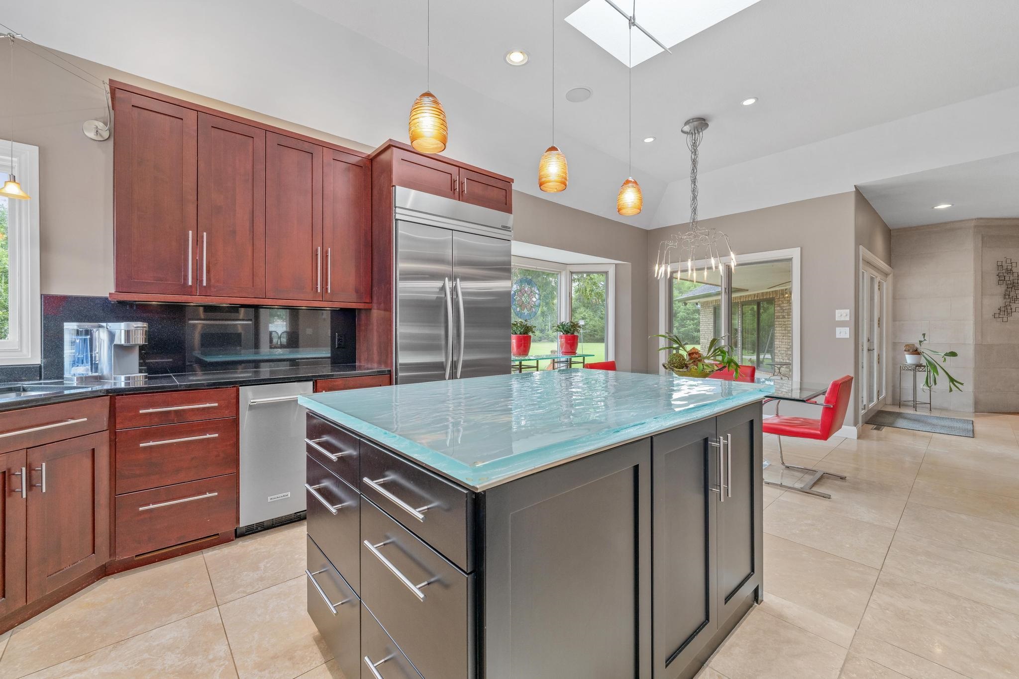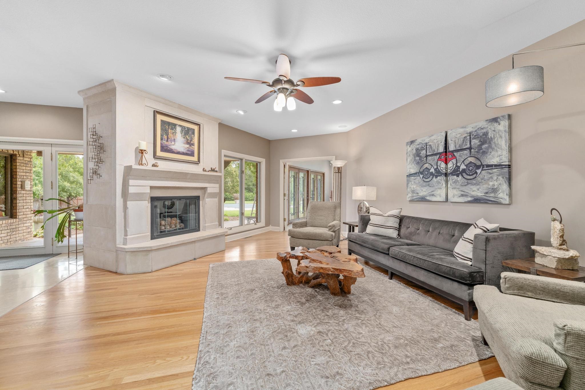 - Description: Welcome to your private oasis on 2 beautiful and private acres. This one-of-a-kind property has the perfect blend of luxury, function, fun and space making it perfect for entertaining, working, hobbies or just relaxing. Step into the beautifully updated and thoughtfully designed main floor through the gorgeous wood and glass double doors into the large foyer. On your left, a formal living room combined with a formal dining room with stunning real wood floors for those special occasions. Straight ahead is the main floor cozy family room with views of the lush backyard and a modern wood burning fireplace with gas starter and unique contemporary insert if you don't want the additional work of wood logs. Off towards the chef's dream kitchen and informal eating space you will find a modern built in feature with lights for all your storage and display needs. The kitchen is perfectly designed with top of the line stainless steel appliances including built-in refrigerator, gas range, double ovens, convection microwave, warming drawer, ice maker and trash compactor all nestled around the custom island with stunning glass top feature made just for the area and imported from Canada. Main floor powder room for guests and large laundry room with storage cabinets, sink, ironing board in a separate room just inside of the oversized 29x22 attached garage. The primary suite has French doors and a wall of windows with sliding door to the rear covered patio which is wired for a hot tub. Magnificent walk in closet, private en suite bathroom with dual sinks, jacuzzi air tub and oversized separate tiled shower. Two more handsomely sized bedrooms and an additional bath round out the main floor. The basement features a stainless steel wet bar with refrigerator, rec room, abundant storage, private sauna as well as two additional finished rooms with egress windows perfect for guests, office or work out/ hobby room (could be considered 4th and 5th bedrooms with addition of closets). The home is adorned with additional features that include BRAND NEW roof and gutters on the house, irrigation well, central vac, surround sound speakers, exterior camera system, electric gate, zoned HVAC system (all less than 5 years old). For the car collector, traveler or hobbyist there is a SECOND garage hosting a bay for an RV with a 220 and interior measurements of 12x37.6 inside with a 12 Ft metal door AND an attached heated 3 car garage measuring 29x35. INCREDIBLE!! The back yard is completely fenced with an electric security gate at the house and double gate for larger access. Home has an inground heated swimming pool that has not been opened in several years due to sellers no longer interested in using it. This estate has it all and is not your everyday cookie cutter floor plan. Schedule your private showing soon, you don't want to miss the opportunity to call this GEM your new home! Show all description