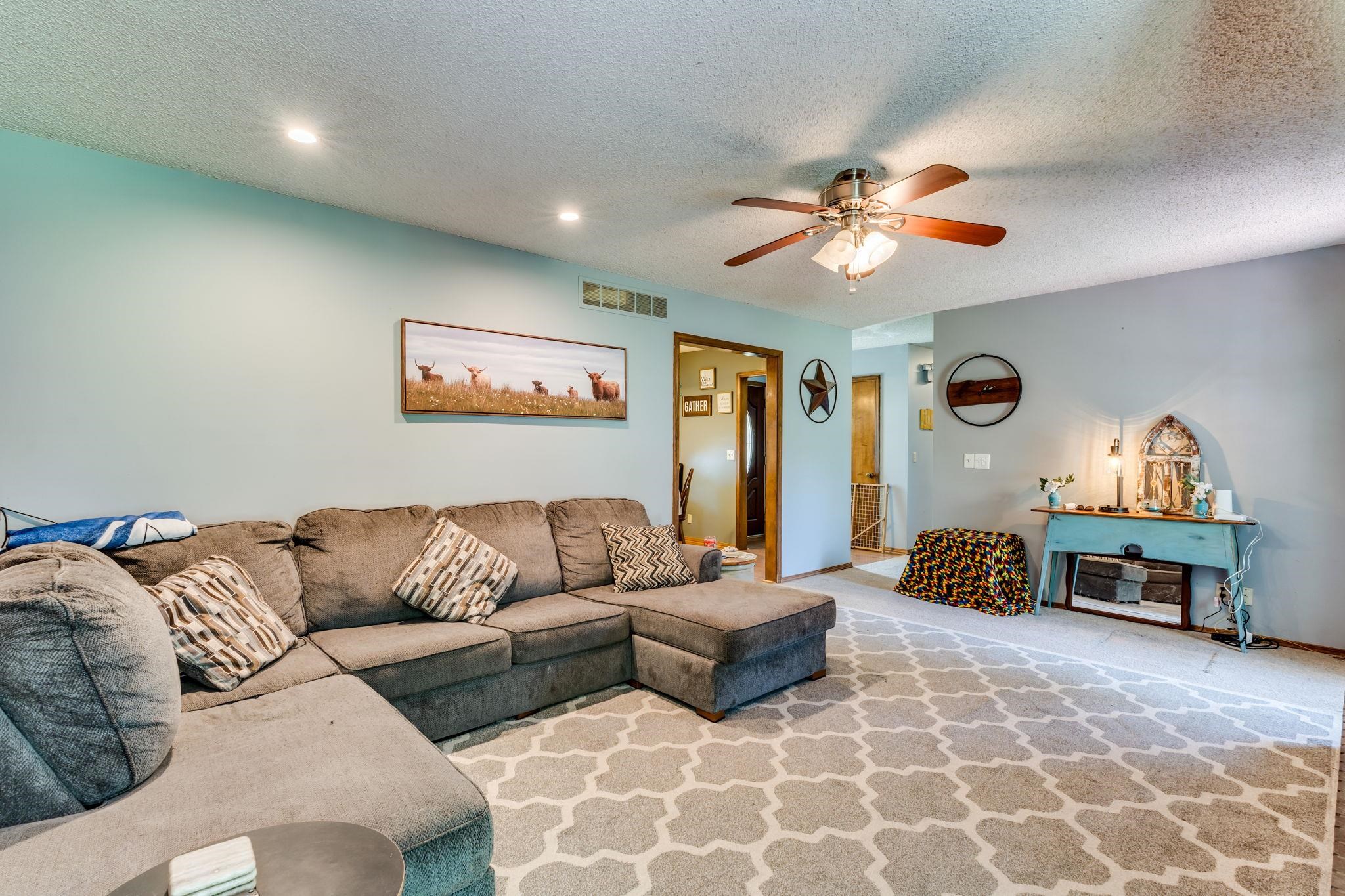 - Description: This spacious ranch-style home in a well-established Andover neighborhood offers over 1, 400 square feet on the main level. Nestled among mature trees, the property features 3 bedrooms, 2 full bathrooms, and a 2-car garage. Step inside to an inviting family room with a fireplace that flows into the dining area and kitchen. The kitchen offers ample cabinet space and comes with appliances. The primary bedroom includes an en-suite bathroom with dual sinks. Laundry is conveniently located on the main level. The full, finished basement provides even more living space with a large living room, a dedicated office or sewing room, and a workshop area. Outside, enjoy the large fenced backyard with a concrete patio. With its great layout and solid foundation, this home is ready for your personal touch. Don’t miss your chance to own a home in the sought-after Andover School District! Show all description
