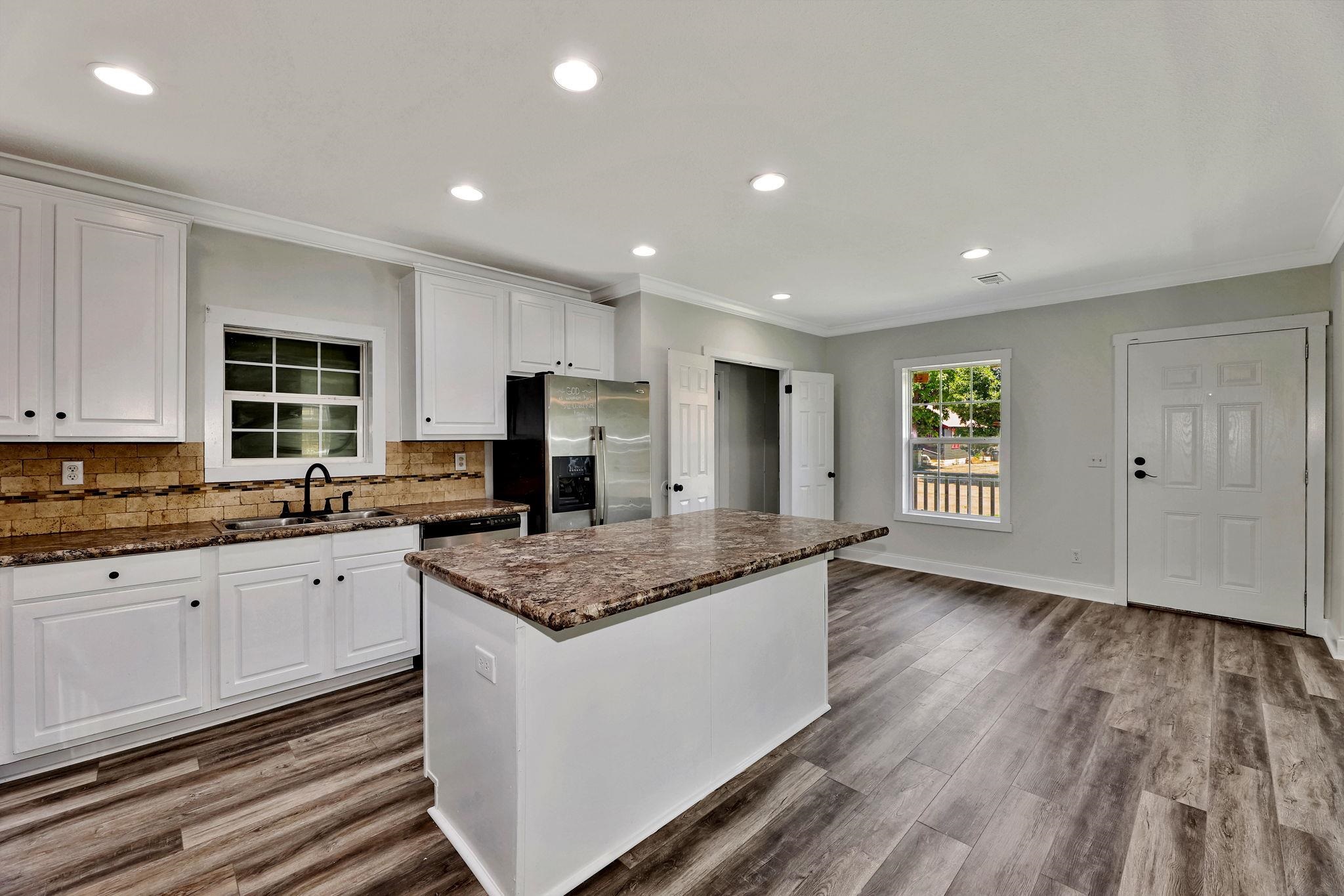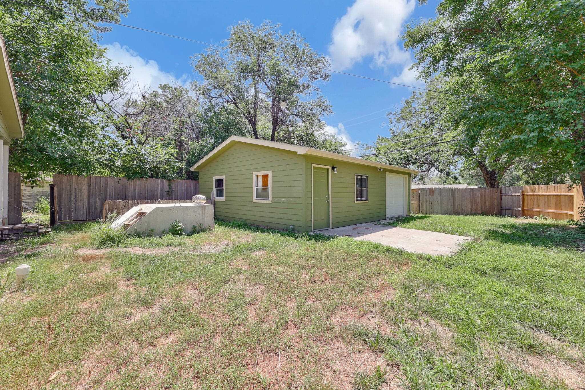- Description: Beautifully remodeled home located in south central Wichita with easy access to highways, schools, shopping, and parks. This is a three bedroom, two bathroom, with one car attached and an extra oversized shop or garage in the back of the house approximate 25 ft by 30 ft. Outside boasts great curb appeal with a front porch for morning coffee. Inside has a spacious open floor plan with living room open to the kitchen. There is new flooring throughout with luxury vinyl plank in the kitchen and bathrooms and new carpet in the living room and bedrooms. There are brand new recessed lights throughout the home. The living room has a beautiful accent wall that is seen right when walking into the home. Kitchen has plenty of cabinet space with white cabinets and comes with an island. There is a guest bathroom that has been all repainted and new bathtub and surround. All of the interior has been repainted. There is a master suite with a large attached bathroom that has plenty of space. The laundry room is huge and perfect for a large family. The backyard is completely fenced in and has a detached shop that would be perfect for the trades or storage. Feel free to set up your private showing today. Show all description