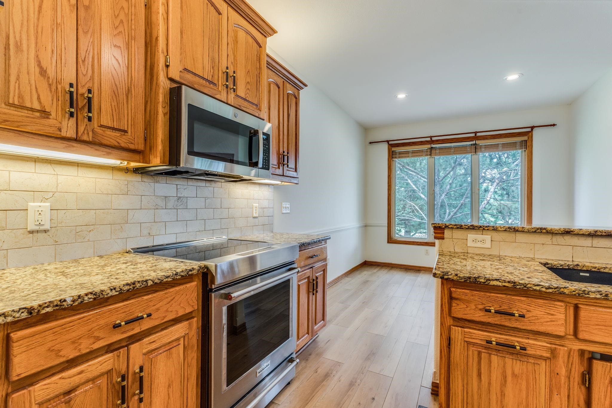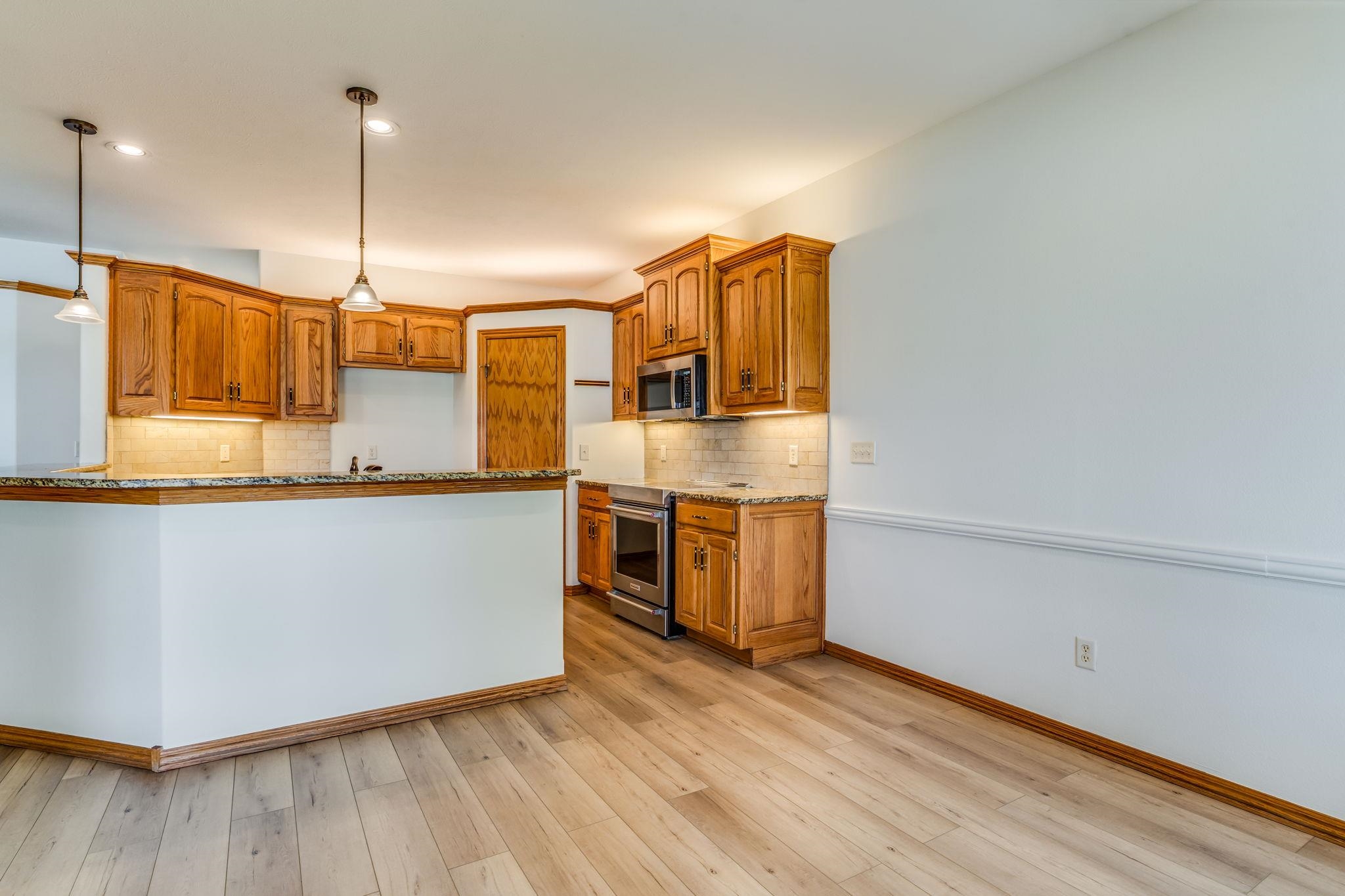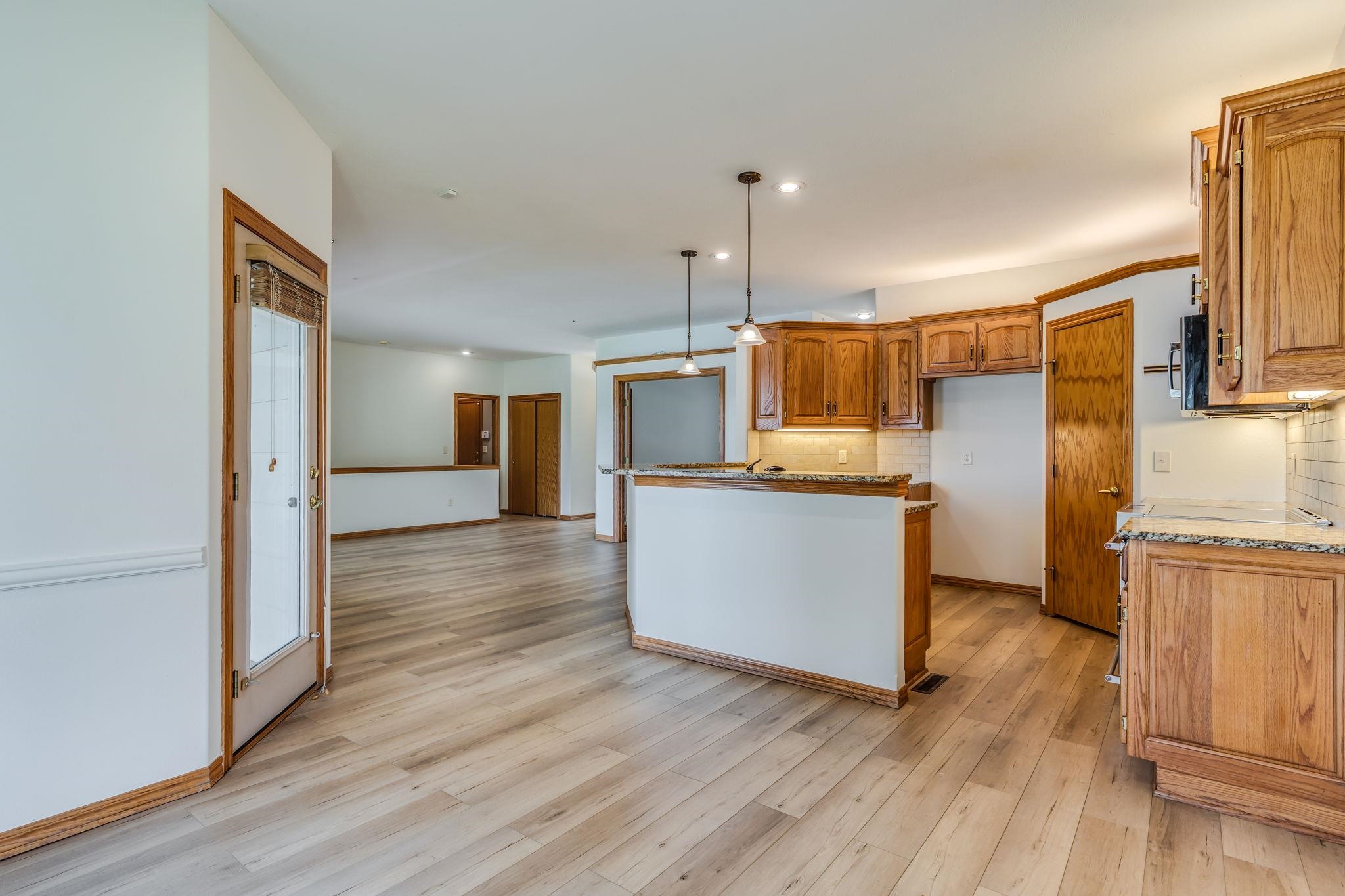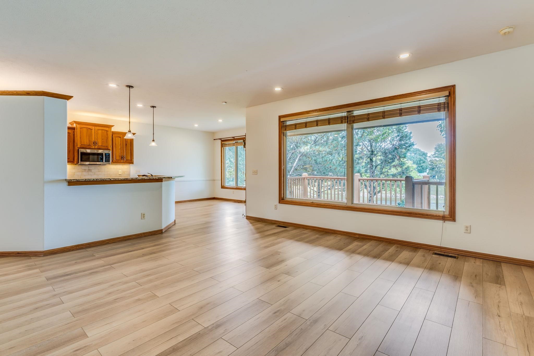 - Description: Waterfront views, shaded outdoor living spaces, the serenity you require to grow your dreams. Enter into the open living, kitchen and dining floor plan and take a moment to appreciate the large display windows overlooking the waterfront. Fresh paint and upgraded luxury flooring showcase the space! Kitchen features built-in slide-out shelving in the pantry and cabinets. Proceed out back to the shaded deck over the waterfront to the east, perfect for a serene morning and shaded evenings. The spacious primary suite includes a jetted tub as well as two walk-in closets, in addition to a second access to the deck and views of the lake. The finished basement comes equipped with a home theater projector and screen as well as a wet bar and plenty of storage space. This is also where you will find the 4rd bedroom, 3rd bath, and walk out access to the patio, and again the stunning lake views! There are options to make this home turnkey to your style, ask an agent for details before you move in to your new home! Don't let this opportunity pass you by! Show all description