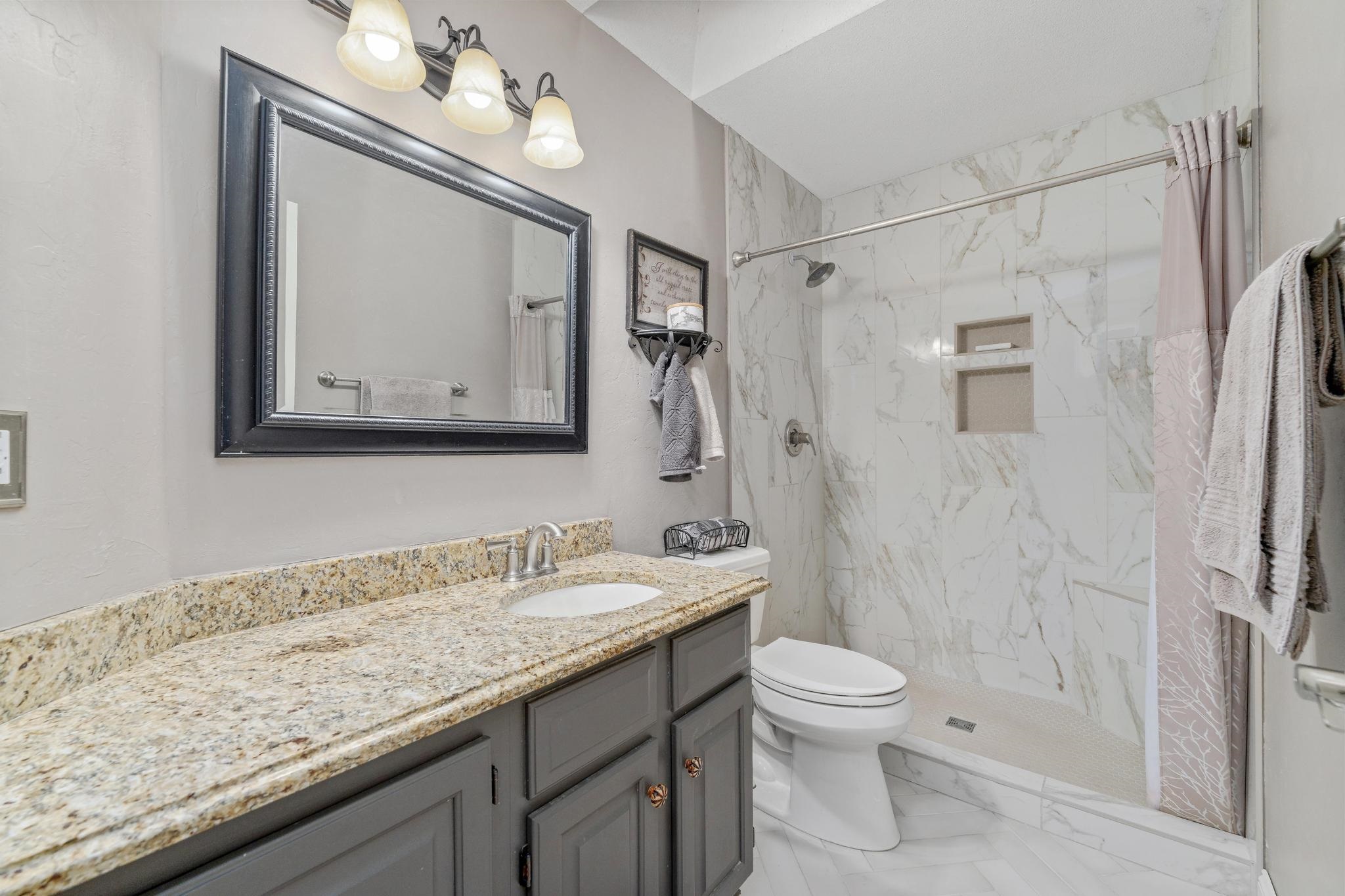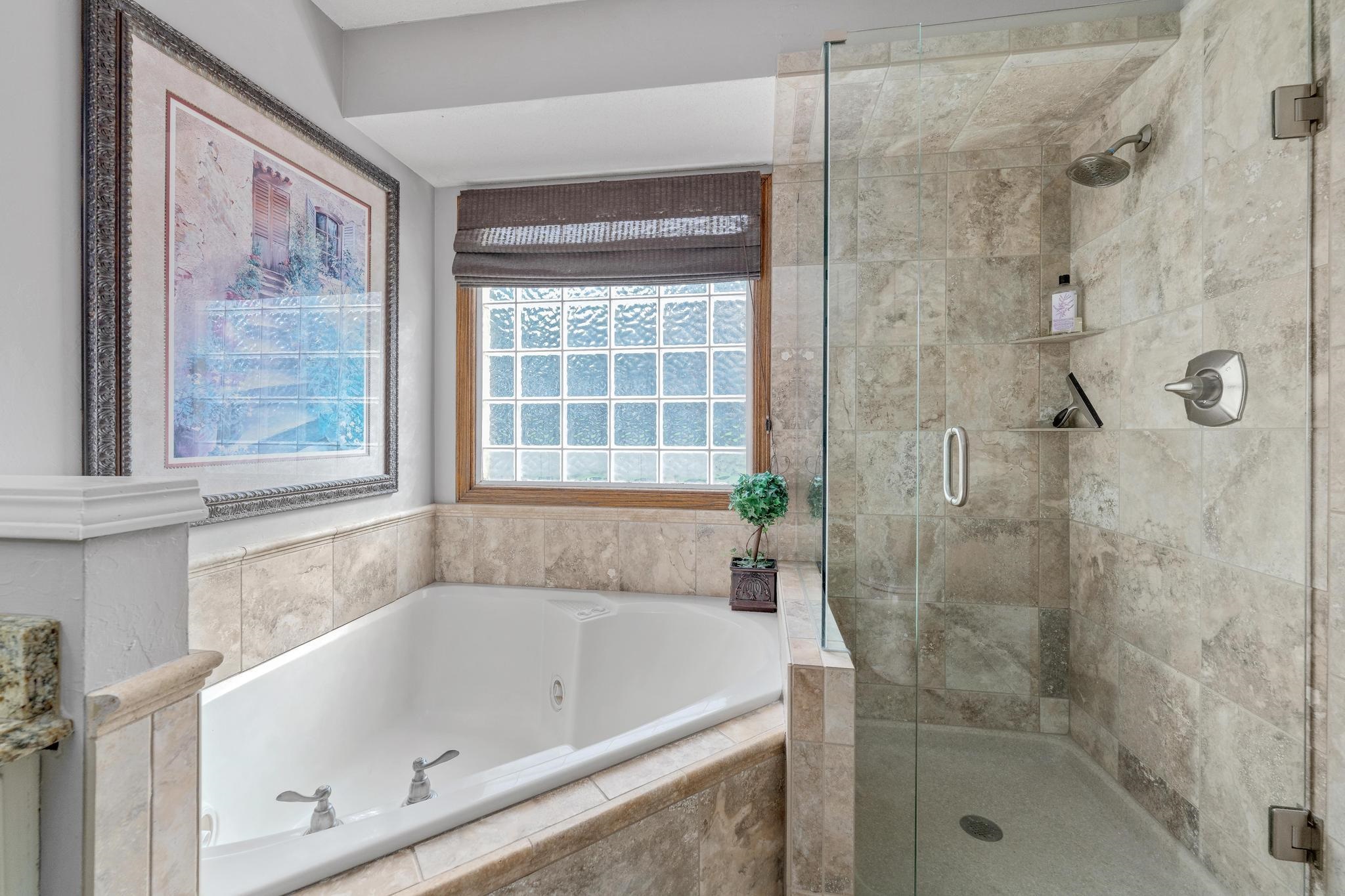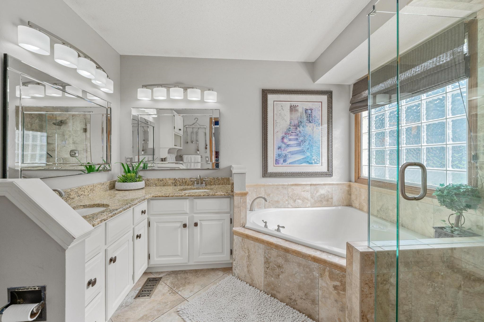 - Master Bedroom: Master Bdrm on Main Level, Sep. Tub/Shower/Mstr Bdrm, Two Sinks, Granite Counters, Jetted Tub
