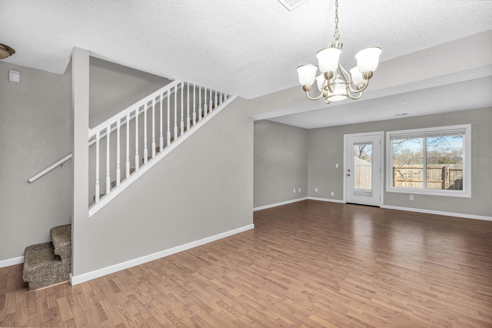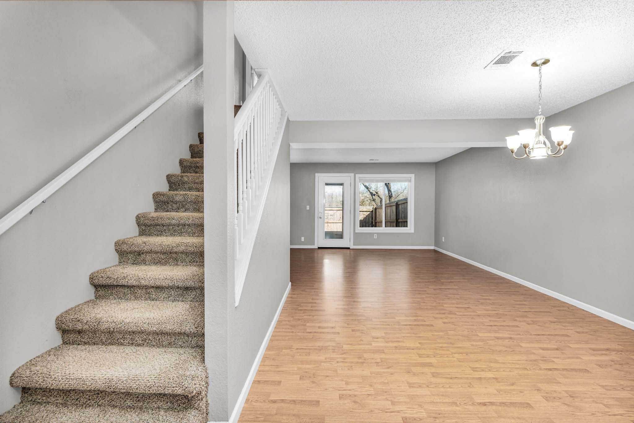 - Description: Updated 2 bedroom 1.5 bath in Chisholm Creek. You will love the light and airy feel as you enter the home. The roomy kitchen has a range, refrigerator, dishwasher, microwave and disposal with a pass thru to the dining/living room. Living room with new patio door & picture window overlooking the fenced patio area. There is also a half bath on the main floor. Upstairs you will find two bedrooms, full bath & separate laundry room. The unit comes with a carport at no additional cost. You won't have to worry about a storm shelter, as there is one in the development. Call today for your private showing. Show all description