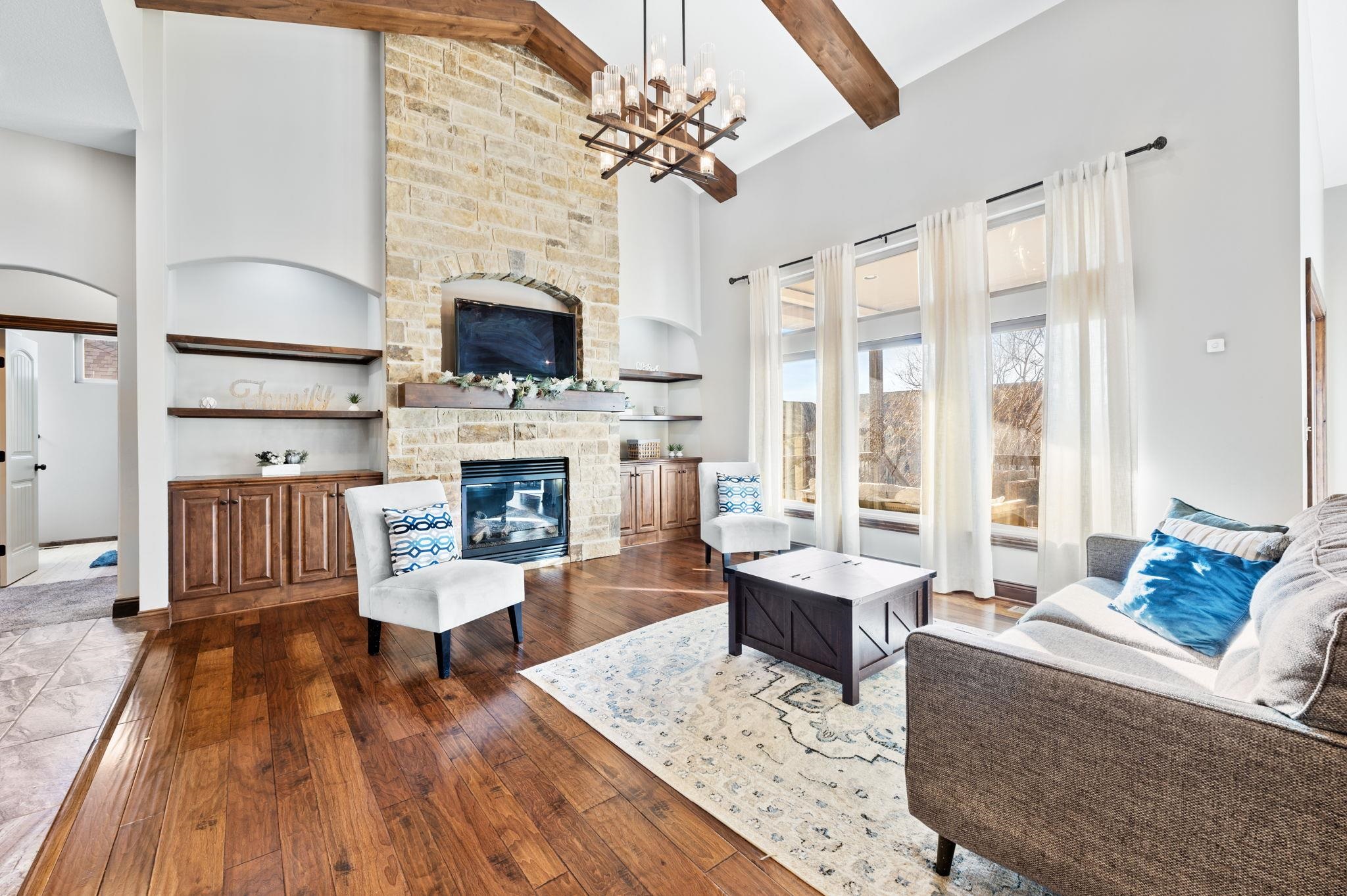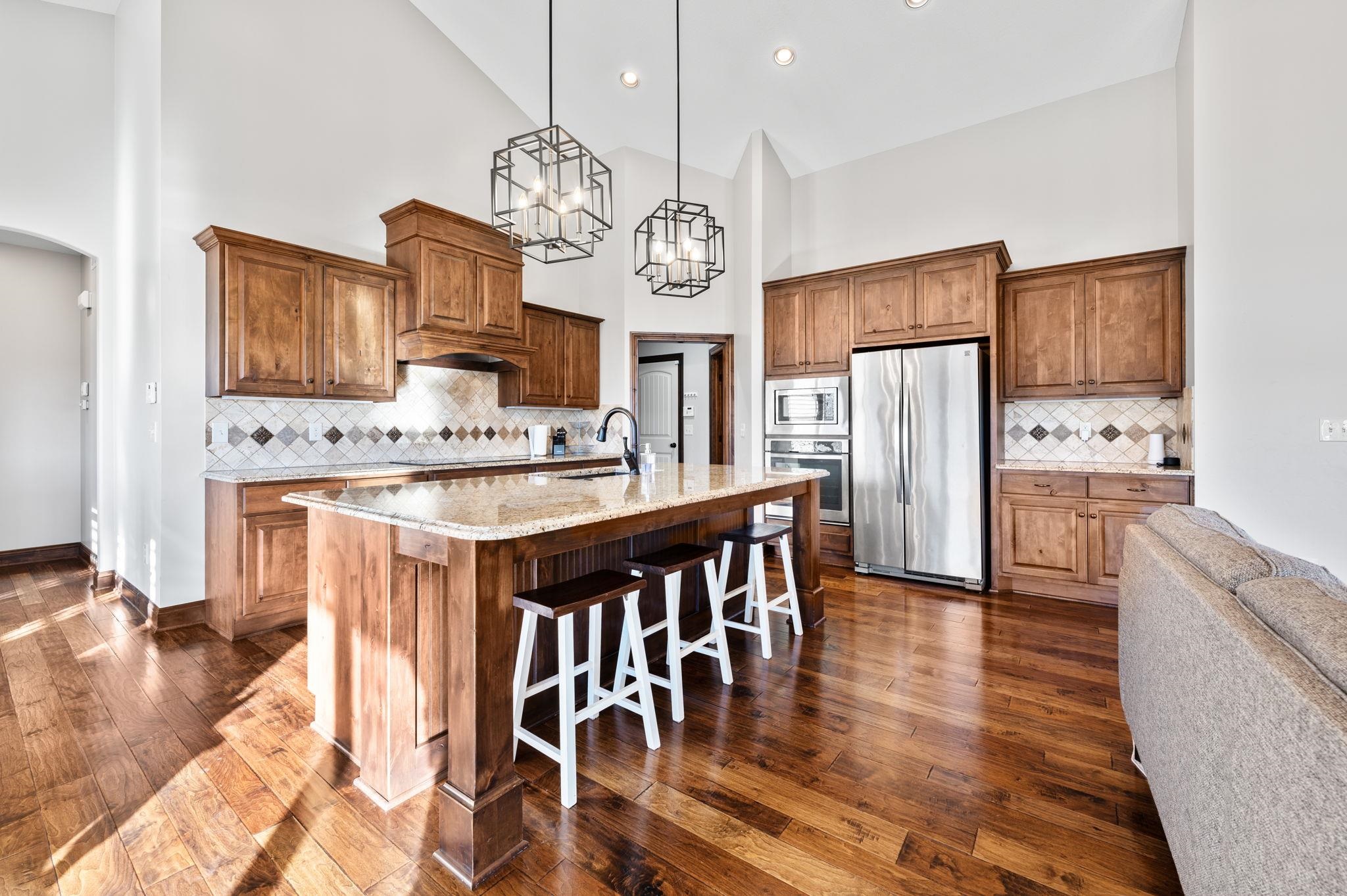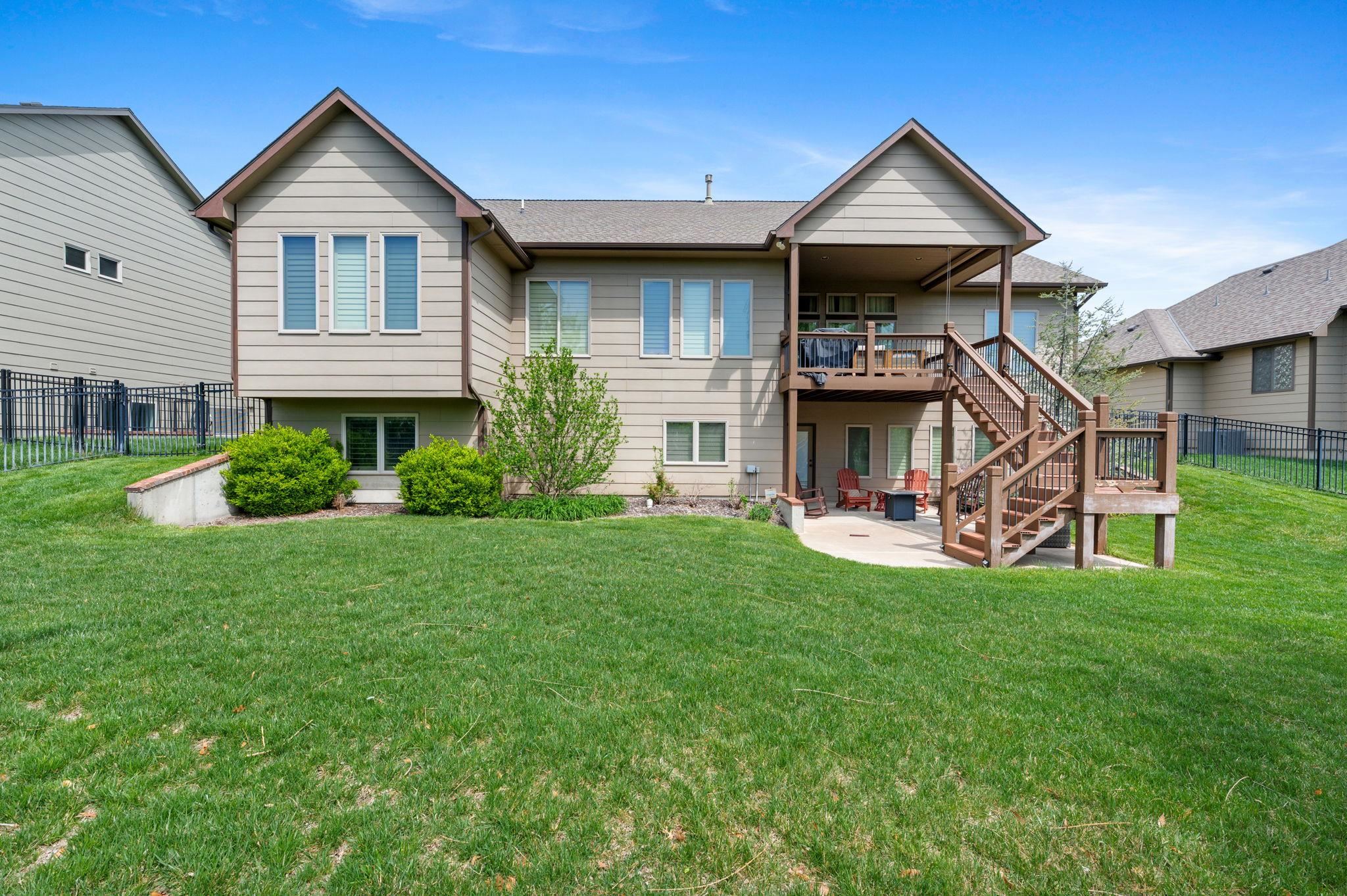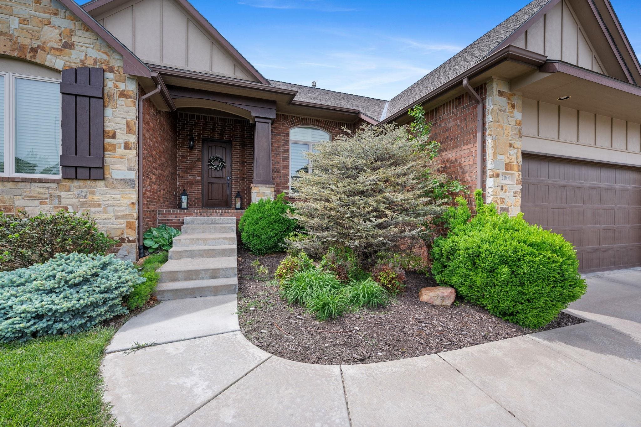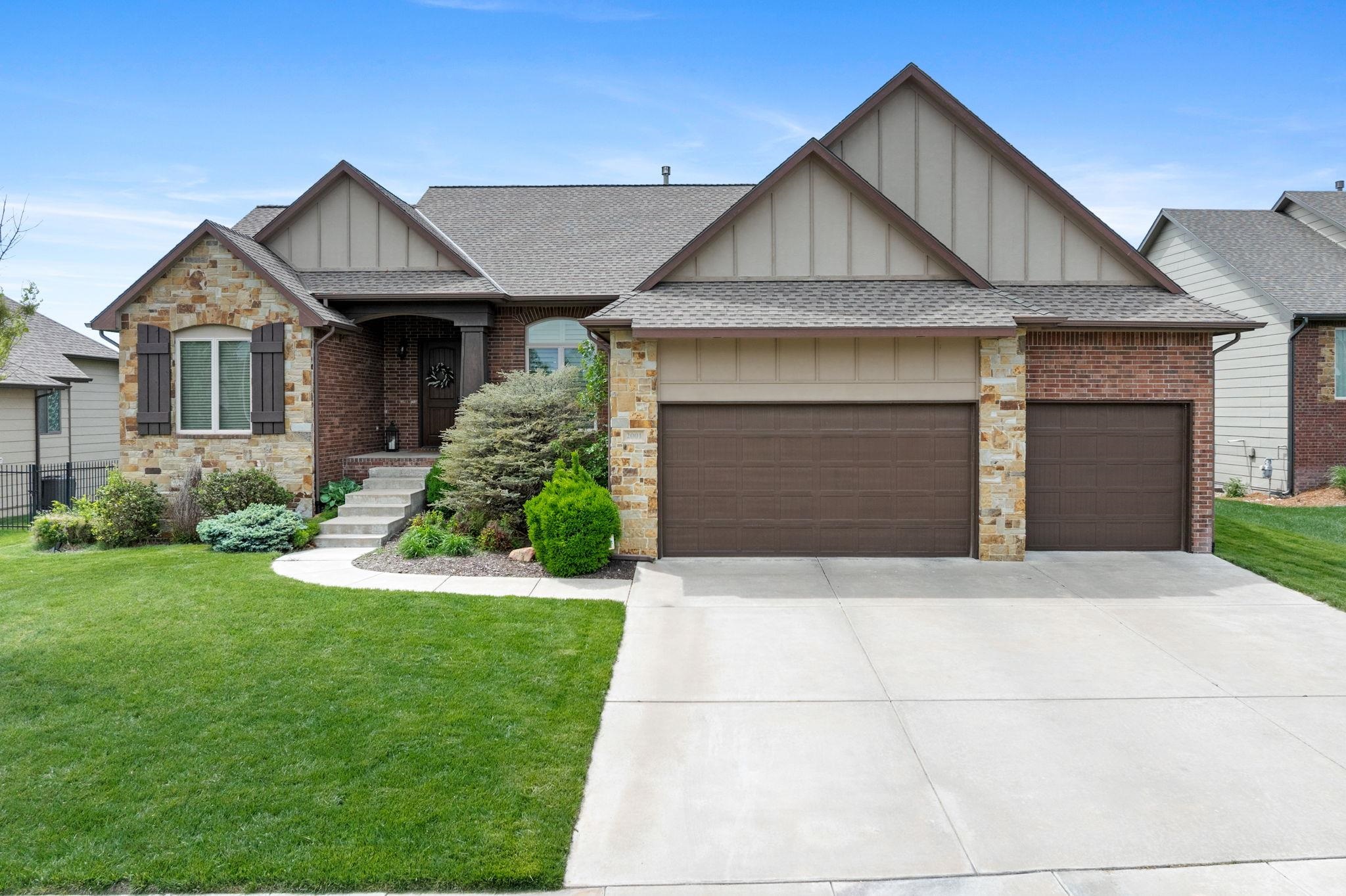 - Description: Welcome to your dream home in the highly sought-after Garden Walk neighborhood LISTED BWLOW TAX APPRAISAL! This beautifully maintained 5-bedroom + bonus room, 3-bathroom residence offers the perfect blend of comfort, style, and functionality—all within the desirable Andover school district, yet with the benefit of Wichita taxes. Step inside and be greeted by an open-concept main living area featuring soaring 15-foot ceilings, rich hand-scraped wood floors, and warm alder wood cabinetry and trim. A stunning stone fireplace anchors the space, adding charm and coziness. The kitchen is a true showstopper, boasting Giallo granite countertops, a deep sink, travertine tile backsplash, custom fluted posts, a one-of-a-kind vent hood, and a generous walk-in pantry. It’s designed for both everyday living and entertaining. Enjoy the privacy of a split-bedroom layout, with the spacious master suite thoughtfully separated from the other two main floor bedrooms. The spa-like en-suite bathroom features a luxurious tiled walk-in shower, separate soaking tub, dual vanities, and an expansive walk-in closet. The fully finished walkout basement is an entertainer’s dream, complete with a wet bar, ample space for a home theater or game area, two additional bedrooms, a full bath, and a bonus room with French doors—perfect for a home gym, craft room, or extra storage. Step outside to a fully fenced backyard equipped with a sprinkler system and irrigation well. The garage includes an extended 23-foot stall—ideal for oversized vehicles or additional storage for bikes and gear. Located just half a block from the community playground and pool, and minutes from the growing Greenwich & Hwy 96 area, you’ll love the convenience of nearby shopping, dining, and entertainment. Don’t miss your chance to make this exceptional home yours—schedule your private showing today! Show all description