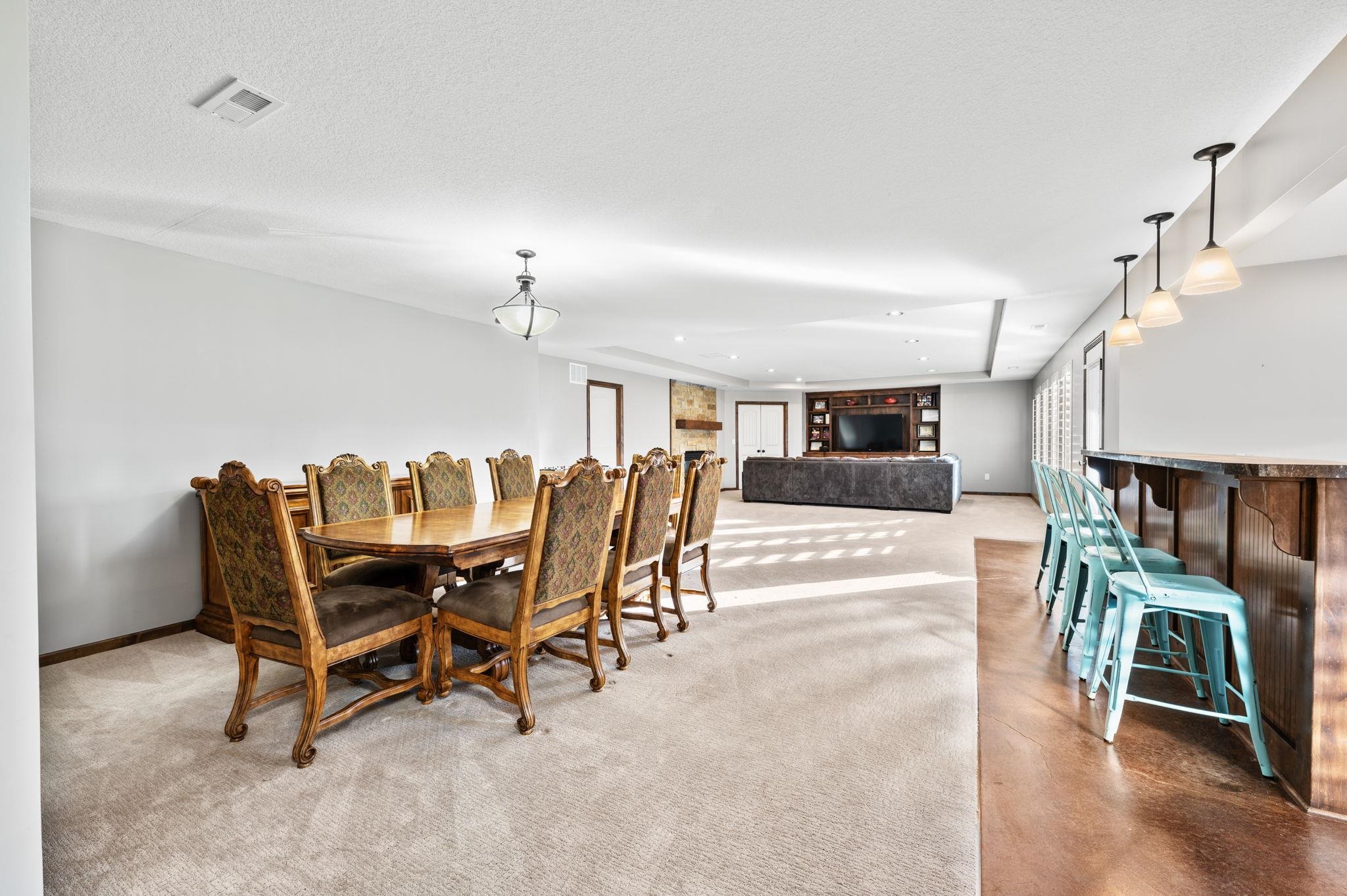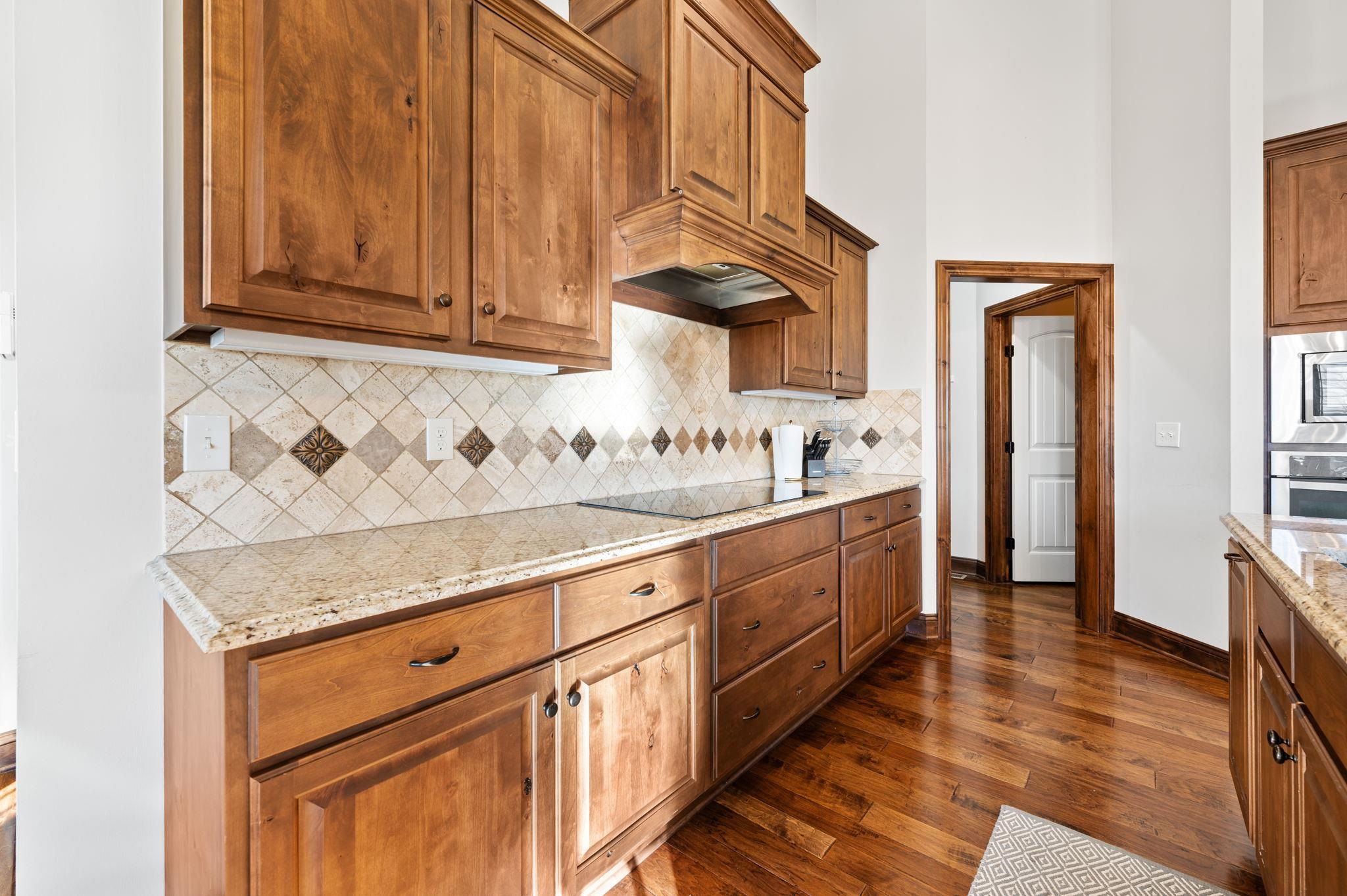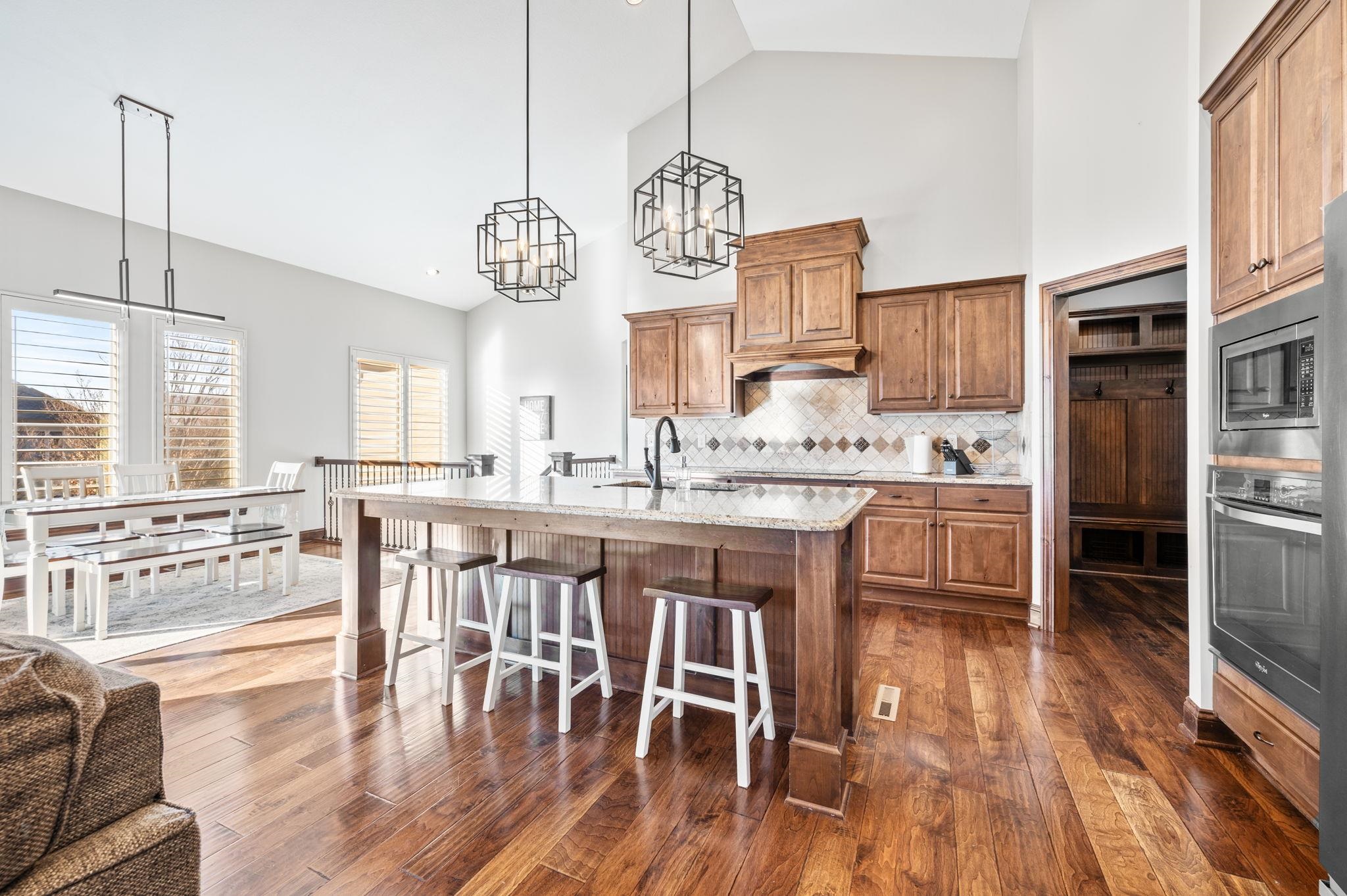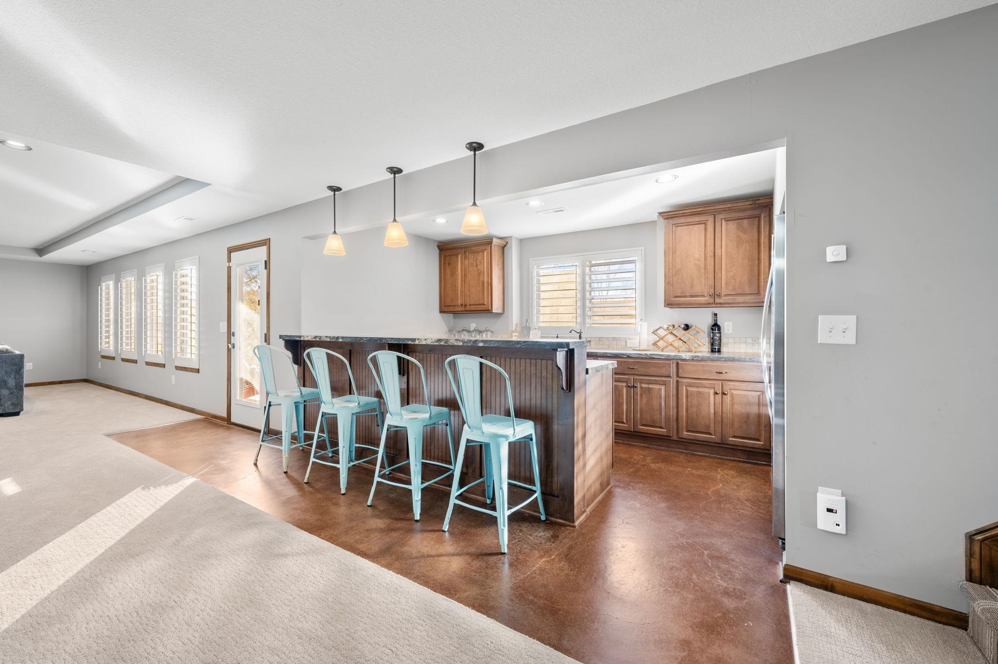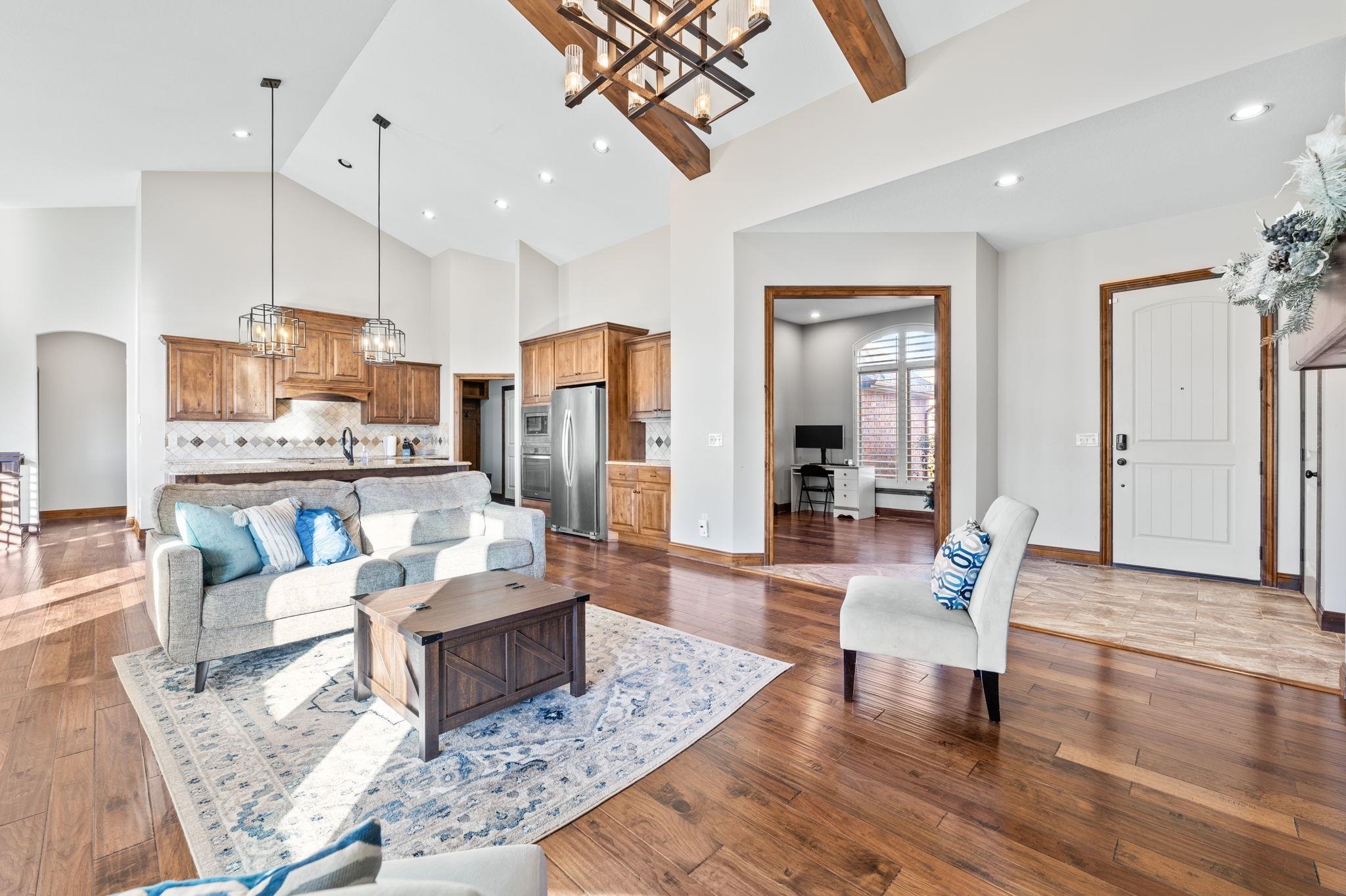 - Description: Welcome to your dream home in the highly sought-after Garden Walk neighborhood LISTED BWLOW TAX APPRAISAL! This beautifully maintained 5-bedroom + bonus room, 3-bathroom residence offers the perfect blend of comfort, style, and functionality—all within the desirable Andover school district, yet with the benefit of Wichita taxes. Step inside and be greeted by an open-concept main living area featuring soaring 15-foot ceilings, rich hand-scraped wood floors, and warm alder wood cabinetry and trim. A stunning stone fireplace anchors the space, adding charm and coziness. The kitchen is a true showstopper, boasting Giallo granite countertops, a deep sink, travertine tile backsplash, custom fluted posts, a one-of-a-kind vent hood, and a generous walk-in pantry. It’s designed for both everyday living and entertaining. Enjoy the privacy of a split-bedroom layout, with the spacious master suite thoughtfully separated from the other two main floor bedrooms. The spa-like en-suite bathroom features a luxurious tiled walk-in shower, separate soaking tub, dual vanities, and an expansive walk-in closet. The fully finished walkout basement is an entertainer’s dream, complete with a wet bar, ample space for a home theater or game area, two additional bedrooms, a full bath, and a bonus room with French doors—perfect for a home gym, craft room, or extra storage. Step outside to a fully fenced backyard equipped with a sprinkler system and irrigation well. The garage includes an extended 23-foot stall—ideal for oversized vehicles or additional storage for bikes and gear. Located just half a block from the community playground and pool, and minutes from the growing Greenwich & Hwy 96 area, you’ll love the convenience of nearby shopping, dining, and entertainment. Don’t miss your chance to make this exceptional home yours—schedule your private showing today! Show all description