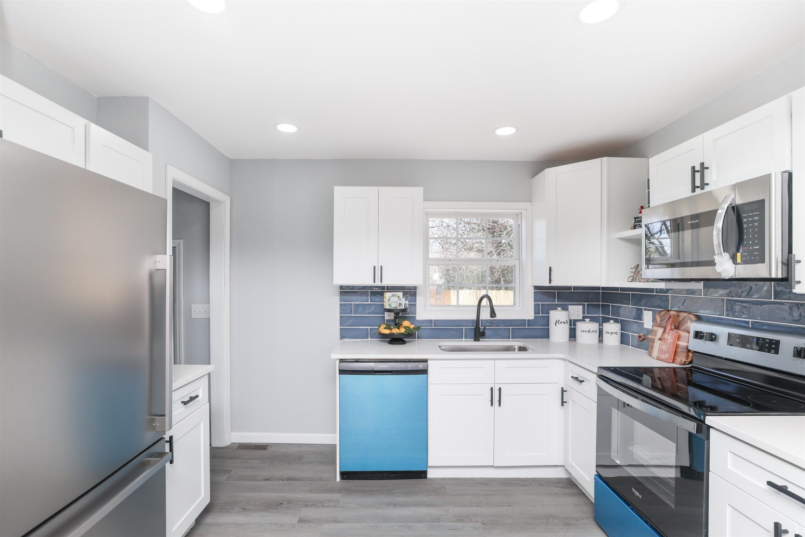 - Description: Back on the market at no fault to sellers. Recent VA appraisal for $165,000. Come see this beautifully remodeled 3-bedroom 2-bathroom home with a finished basement! This home features an open concept kitchen with beautiful quartz countertops and all new appliances. The basement is fully finished featuring the 3rd bedroom, the 2nd bathroom, extra living space, and the laundry room. The bathrooms have stunning tile on the floors and shower walls. The backyard is spacious and ready to make it your own with a new wood fence. The plumbing and electrical throughout the property have been replaced including the sewer line, and the windows are vinyl. Check out this beauty before its gone! De regreso en el mercado sin culpa al vendedor. Tenemos una reciente apreciacion de Veterano de $165,000. Ven a ver esta hermosa casa remodelada de 3 cuartos y 2 banos con sotano terminado! Esta casa cuenta con una cocina de concepto abierto con hermosas encimeras de cuarzo y electrodomesticos nuevos. El sotano esta completamente terminado y tiene el tercer cuarto, el segundo bano, una sala adicional y la lavanderia. Los banos tienen hermosos azulejos en los pisos y las paredes de la regaderas. El patio trasero esta espacioso y listo para personalizarlo, cuenta con una nueva cerca de madera. Se han reemplazado las tuberias y la electricidad en toda la propiedad, incluyendo la linea de drenaje, y las ventanas son de vinilo. Agenda tu cita para esta belleza antes de que se vaya! Show all description