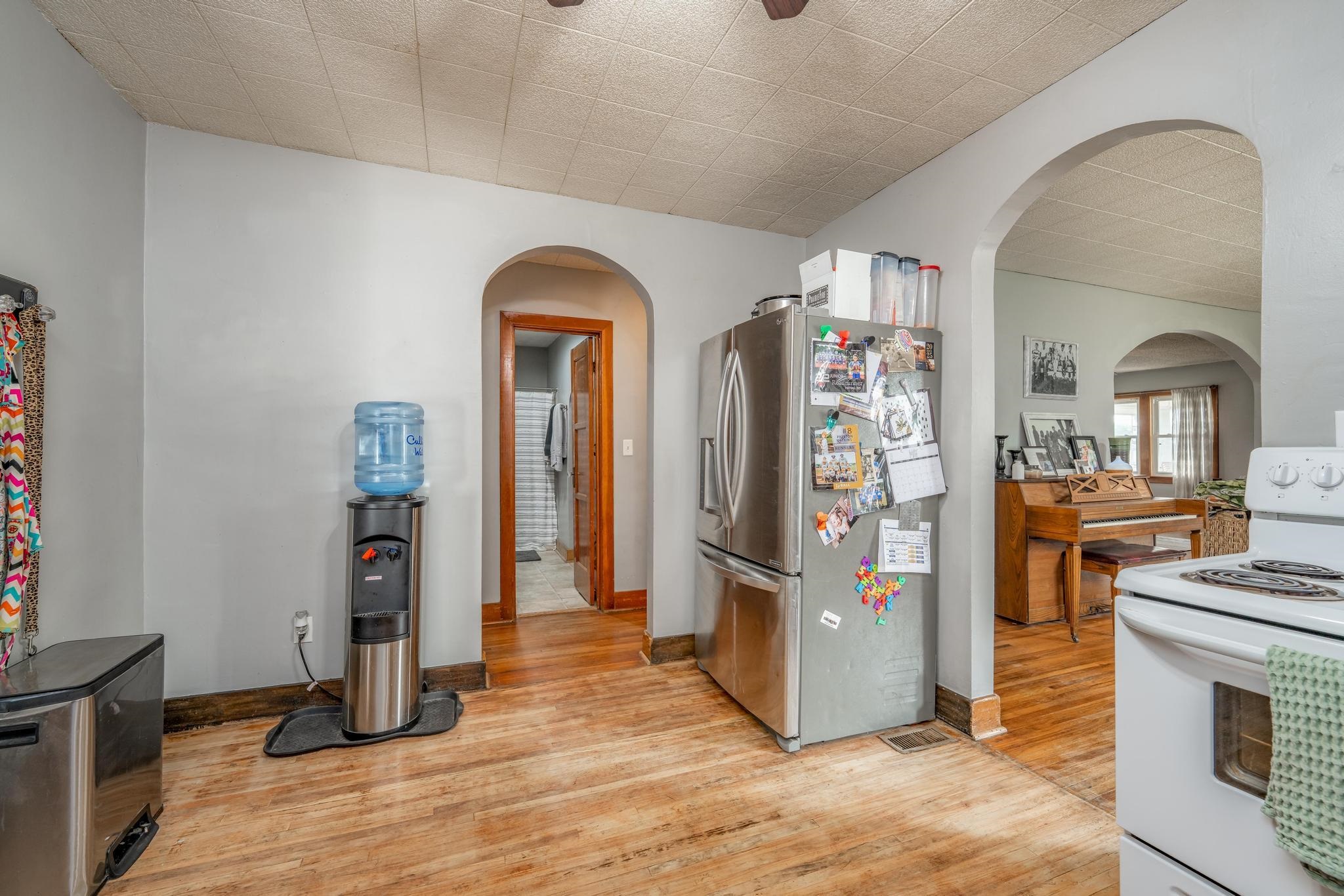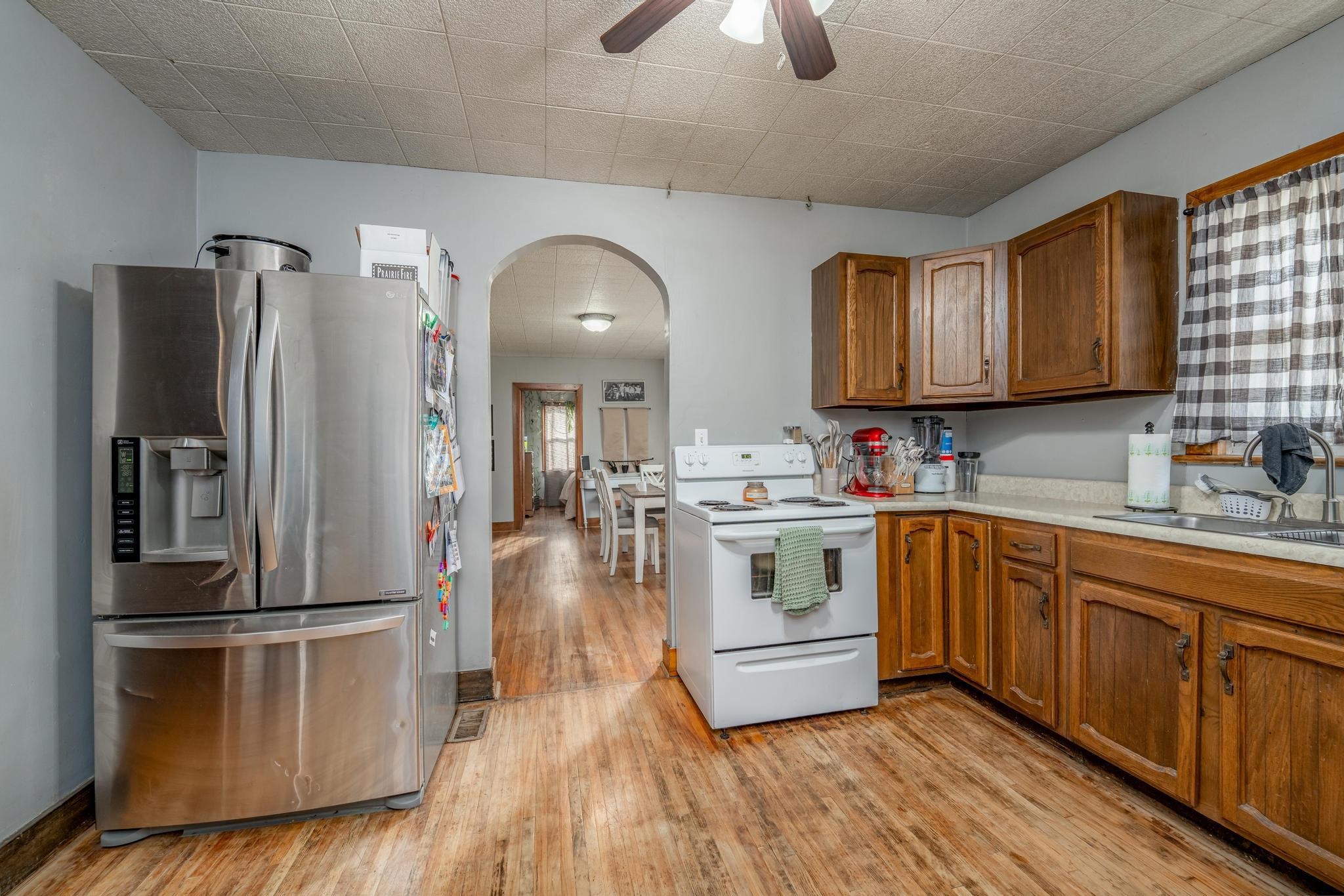 - Description: Welcome home to Harper, Kansas! This charming bungalow comes with an additional lot to the north, giving you a 1/2 acre of land on the edge of town. Enter the home through the antique front door and into the spacious living room. Check out the original wood floors that are GORGEOUS! Through the living room and into the large dining room are the same amazing floors that flow throughout the whole main level. Off the dining room is a bedroom on the front of the house, and the kitchen and other two bedrooms and bathroom on the west side of the house. This home has great storage and amazing original finishes. Off the kitchen is the laundry/mudroom and garage. Downstairs is a large family/game room, two bonus rooms, a 3/4 bath and more storage space in the utility room. Outside has a portion of the yard fenced-in, as well as the extra lot that is ready for your detached garage or shop building (please contact the City of Harper for information on building permits, utilities, etc.). The house has a new roof and siding (2024/25) and newer windows (2018). A new sewer line to the alley in 2024, and new grinder pump and sump pump in 2024. This house is move-in ready with groceries, hardware store, restaurants, amenities and schools are just blocks away. Don't wait to call this charming home YOURS! Schedule a showing today! Show all description
