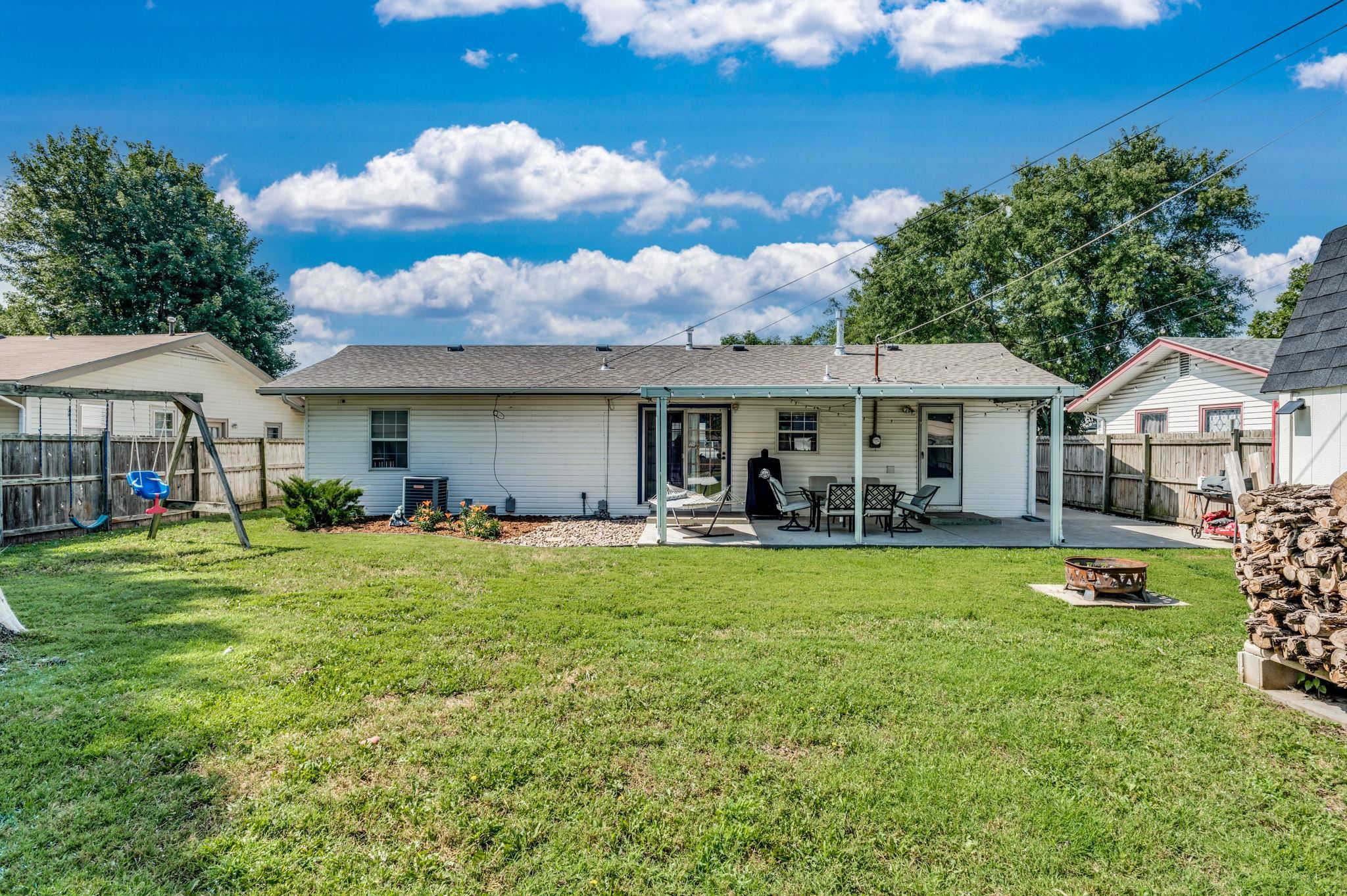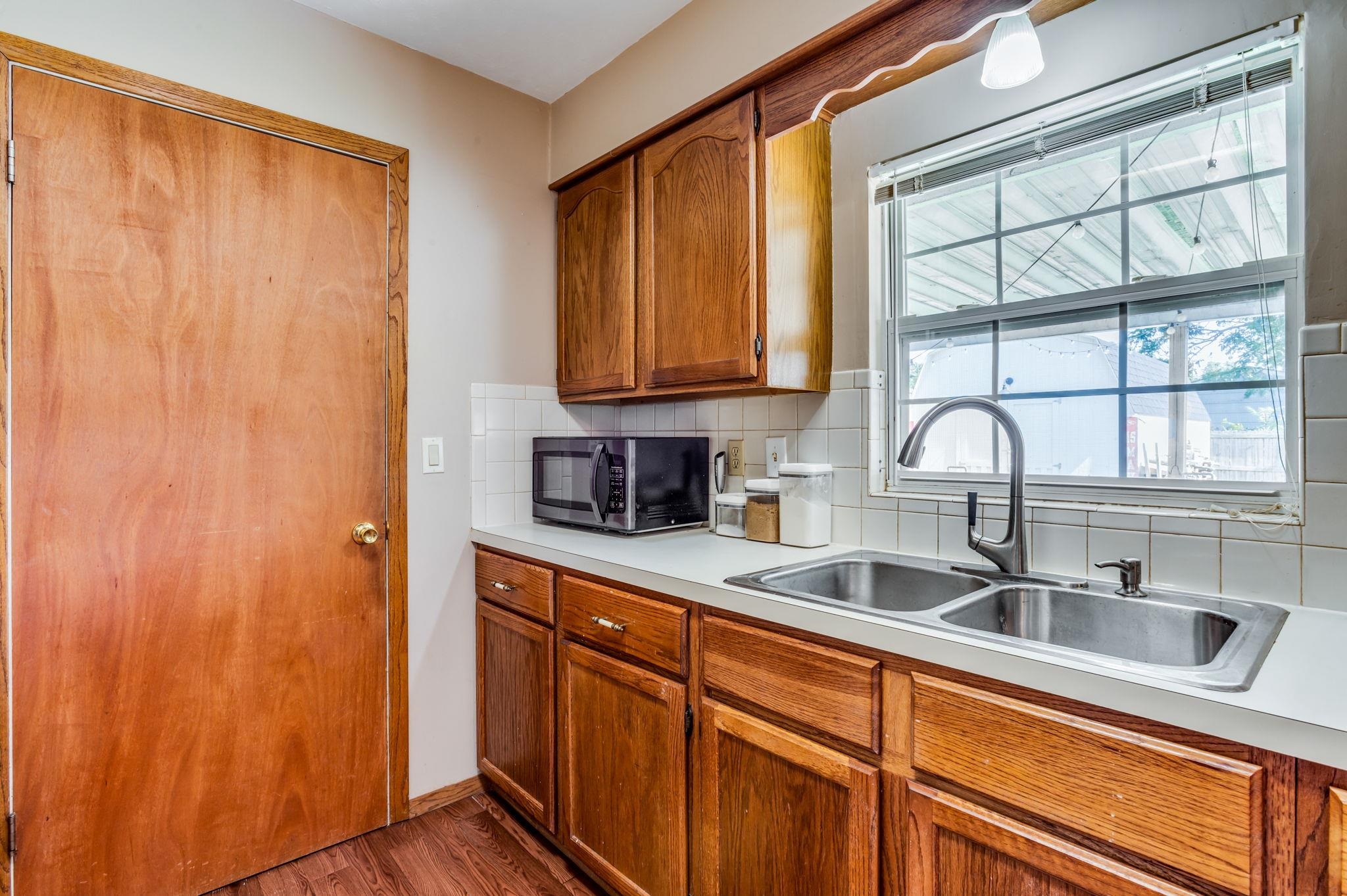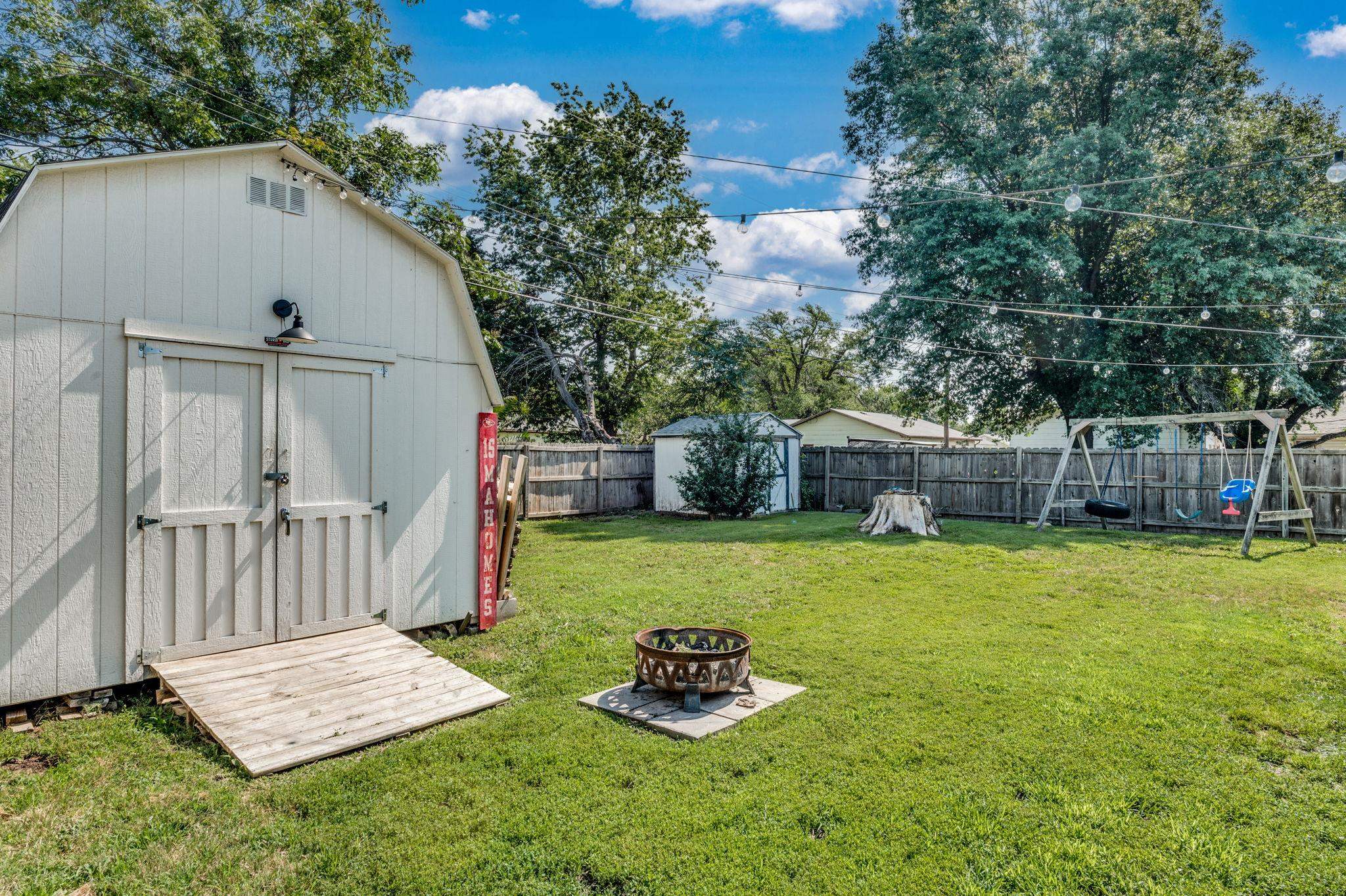 - Description: Take a look at this spacious 3 bed, 1 bath home in south Wichita. It features 1, 226 sq ft of finished living space including an extra den living space and extra large mudroom/laundry room with plenty of extra storage space. The living room opens into the dining and kitchen area that has an eating bar, gas range, and vinyl wood flooring. The roof is only 2 years old so no worries about durability or insurability. Out back is a nice covered patio, privacy fence, and a large 12’x20’ sturdi built shed with electric! Don’t miss your opportunity to make this your own. Show all description