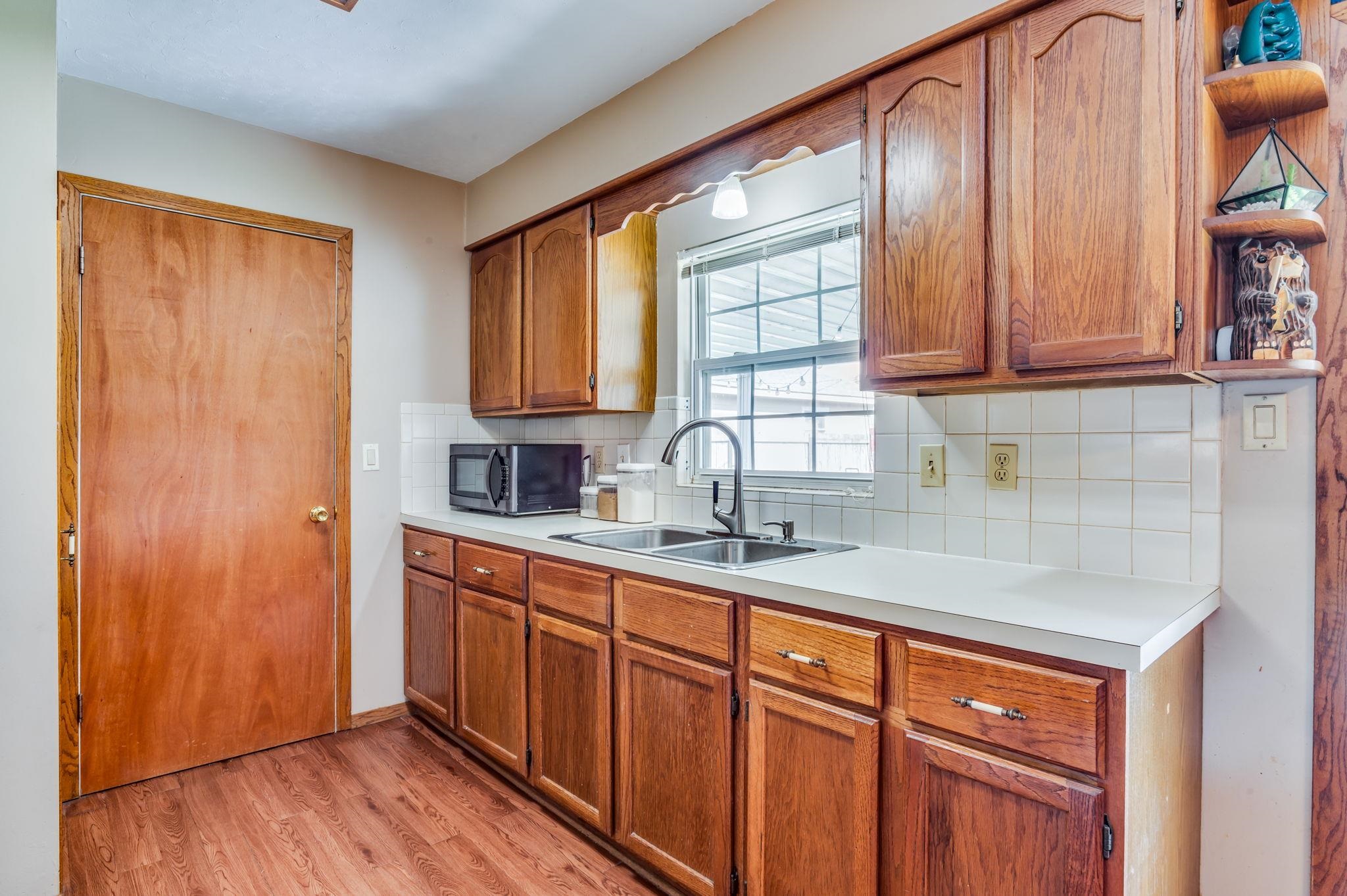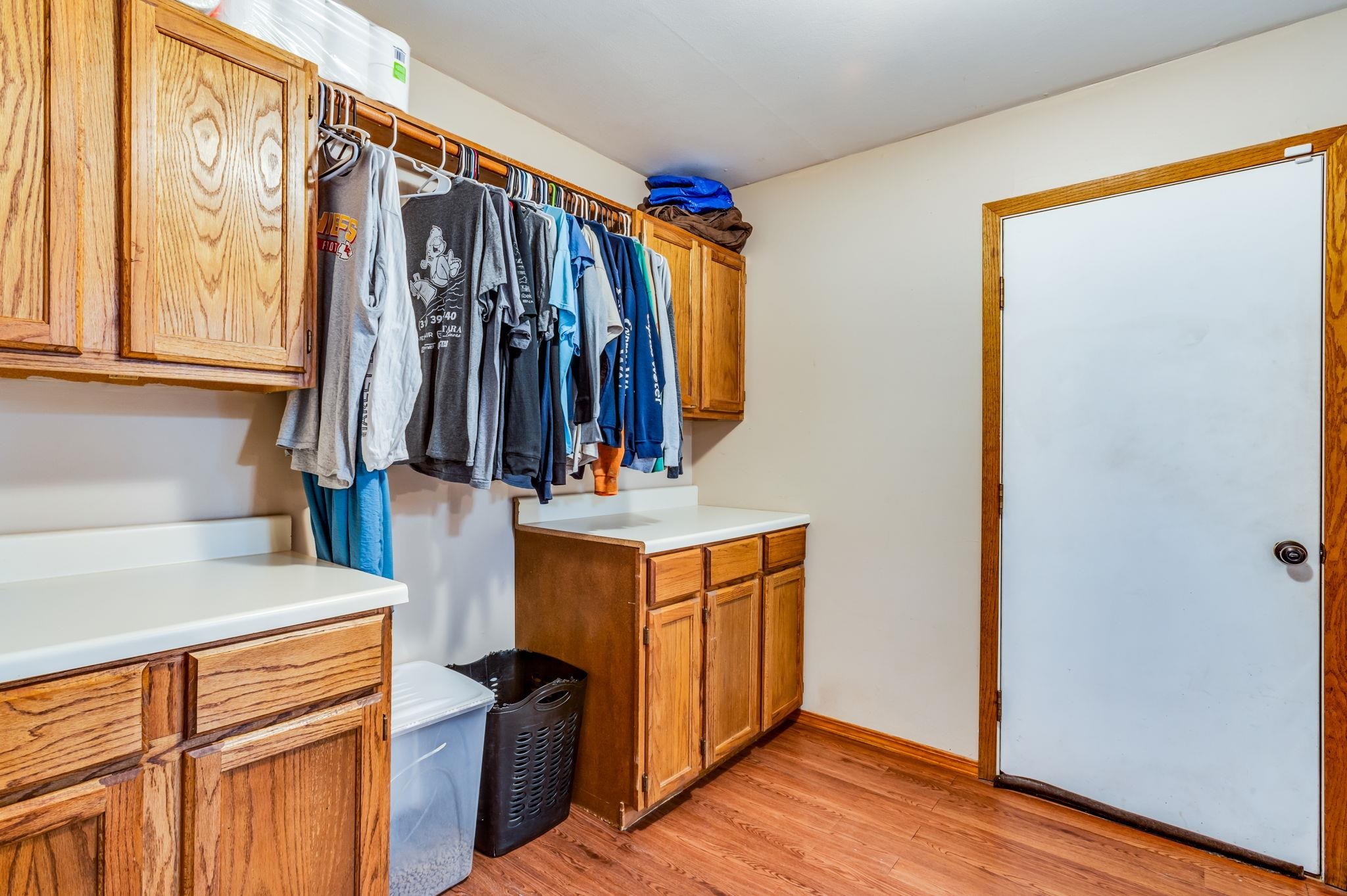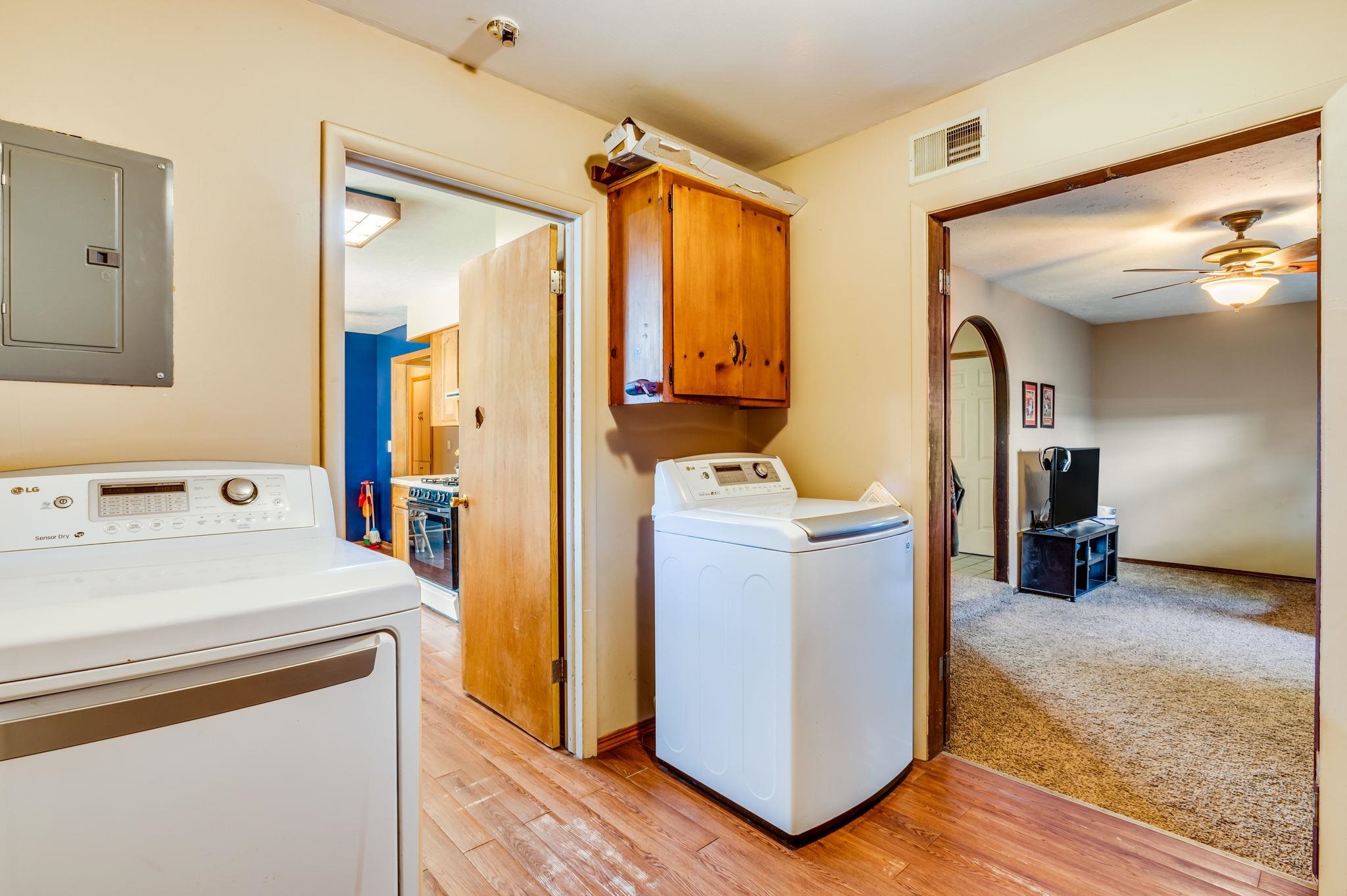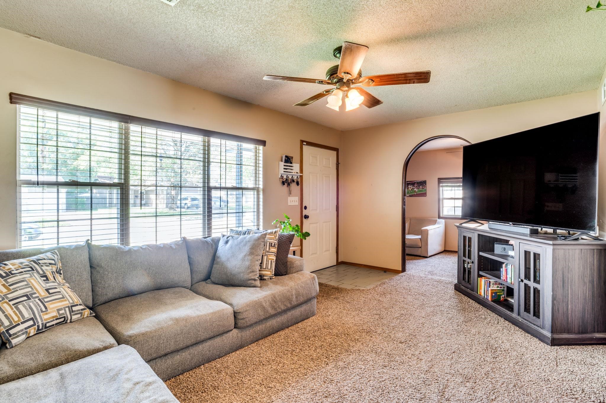 - Description: Take a look at this spacious 3 bed, 1 bath home in south Wichita. It features 1, 226 sq ft of finished living space including an extra den living space and extra large mudroom/laundry room with plenty of extra storage space. The living room opens into the dining and kitchen area that has an eating bar, gas range, and vinyl wood flooring. The roof is only 2 years old so no worries about durability or insurability. Out back is a nice covered patio, privacy fence, and a large 12’x20’ sturdi built shed with electric! Don’t miss your opportunity to make this your own. Show all description