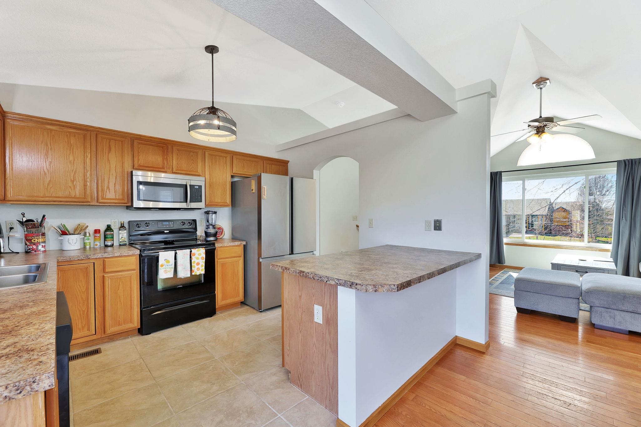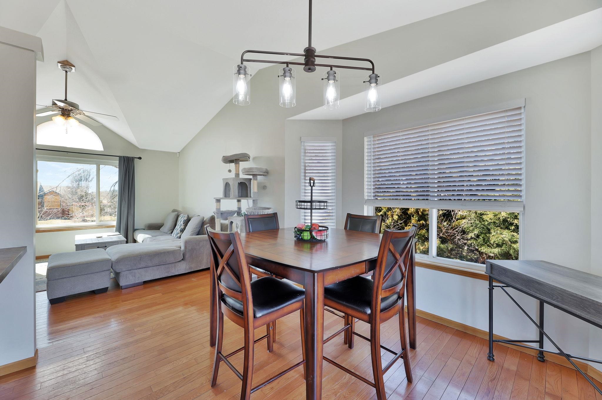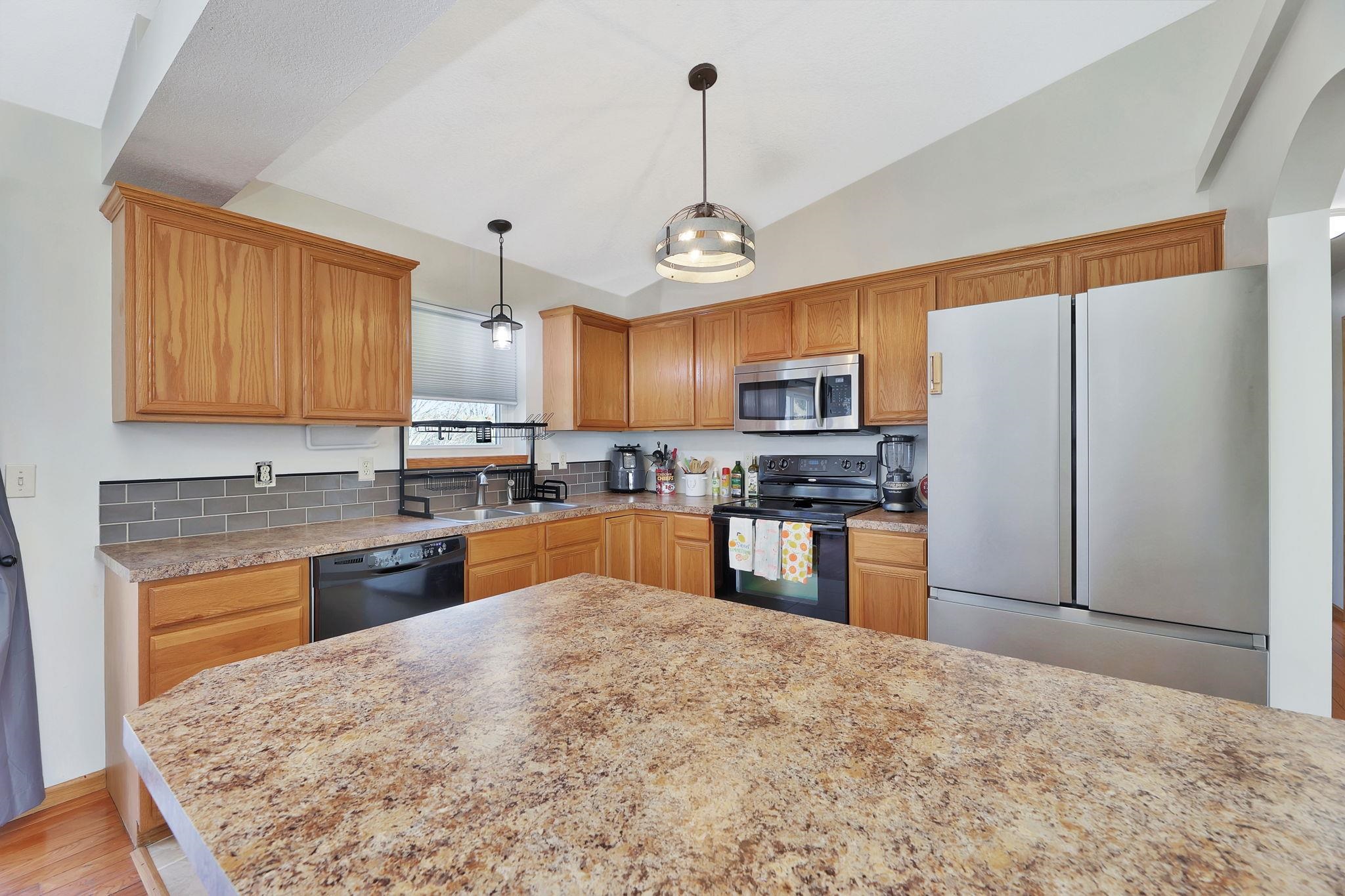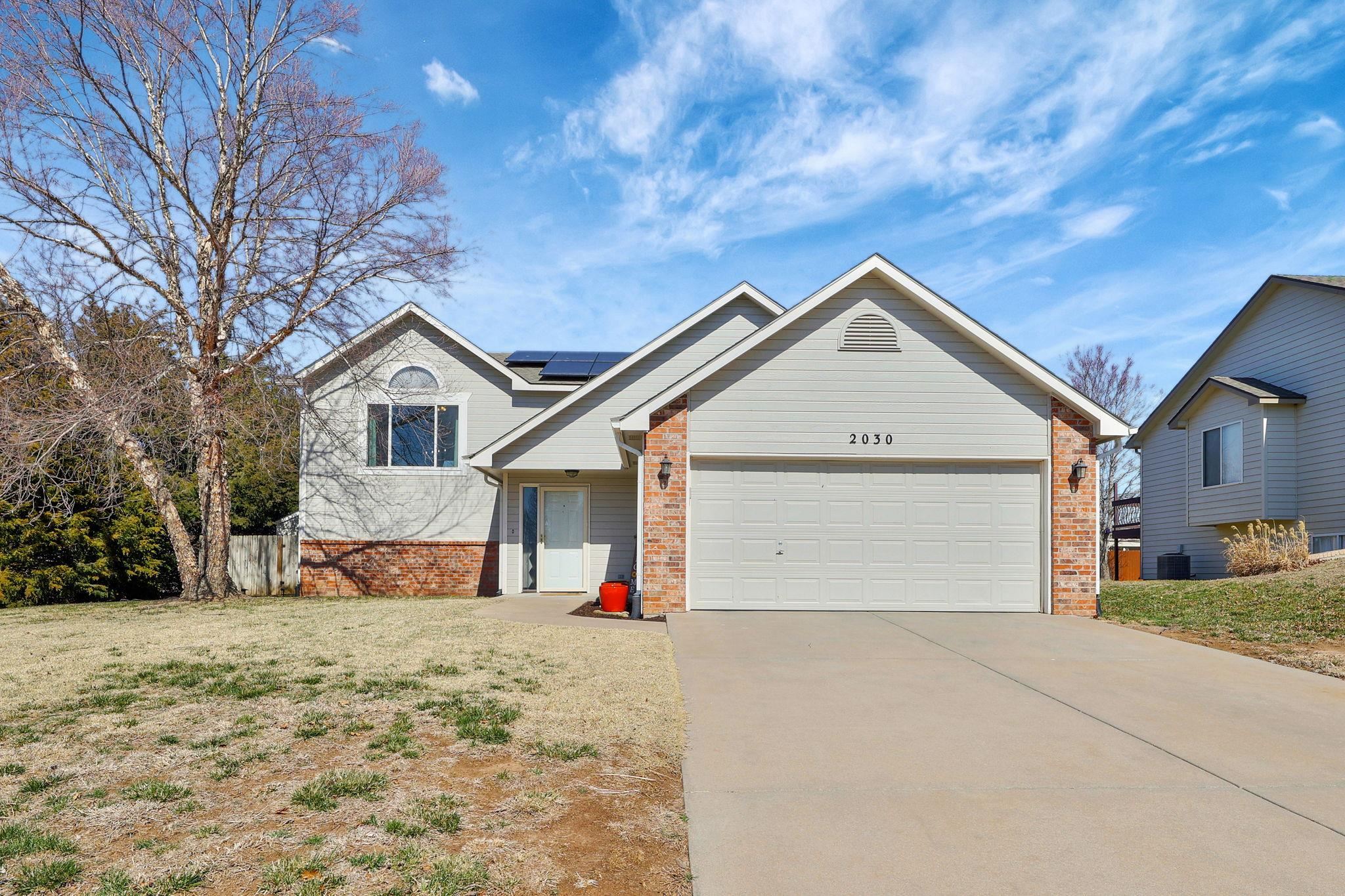 - Description: Welcome to this beautiful 5-bedroom, 3-bathroom home located in Springcreek Addition in Derby. It’s perfect for those looking for space, style, and major energy savings. Oh, and did we mention? It comes with fully paid-off solar panels. That's right—no extra payments and huge savings on your electricity bill from day one! Roof/ gutters replaced 8/2022 along with fresh exterior paint and new light fixtures in dining room and kitchen! Tiled entryway leads to large sized living room with vaulted ceilings. Wonderful open floor plan with kitchen/dining room combo. Kitchen boasts eat-in bar, fresh tile backsplash and tile flooring. Real hardwood floors throughout living, dining room and hallway. Upstairs offers 3 bedrooms with new carpet and a main hall bath. Master offers a tray ceiling, walk-in closet and en-suite bathroom with separate water closet. Viewout basement has a 22x21 family room with fireplace, built-in shelves and dry bar. Two more large sized bedrooms finish off basement with an additional 3rd bathroom and separate laundry room. Backyard offers privacy fenced yard with deck and storage shed. Show all description