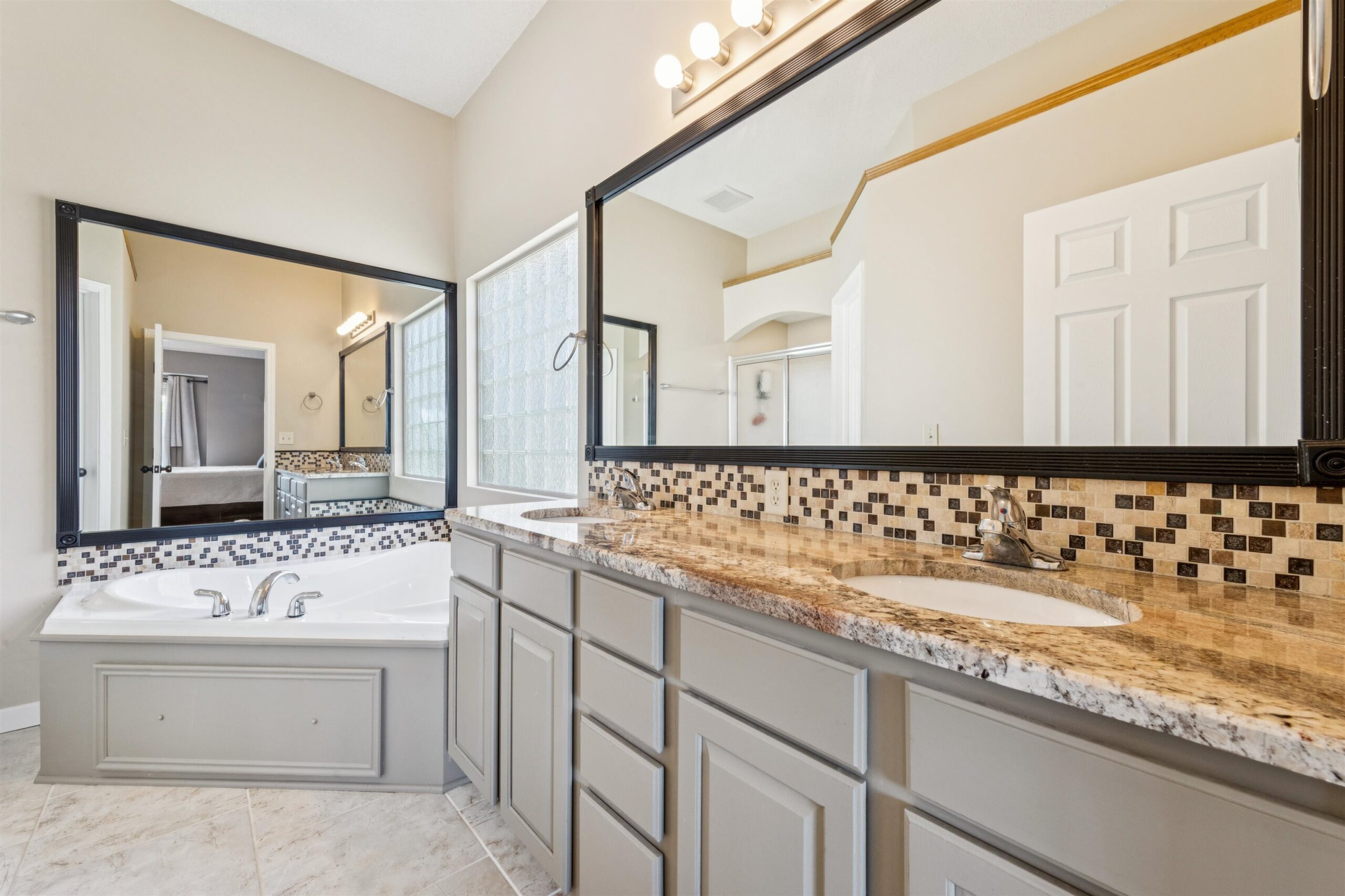 - Master Bedroom: Master Bdrm on Main Level, Master Bedroom Bath, Sep. Tub/Shower/Mstr Bdrm, Two Sinks, Granite Counters